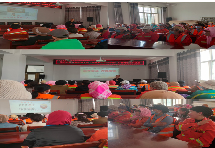 一身橘黄、一把扫帚,冬顶严寒、夏冒酷暑,起早贪黑、日复一日,忙碌的身影勾勒出城市里一道亮丽的文明风景线,他们默默坚守,却忽视了自己的身心健康。在“五一”国际劳动节来临之际,我们礼赞劳动创造、讴歌劳动精神。在此,为有效缓解“城市美容师”的身心压力,4月26日下午,红寺堡区总工会为辖区环卫工人送上一场公益心理健康知识讲座,此次讲座是送健康、送关爱,更是将 “工会服务在身边”的温暖和贴心落到了实处。