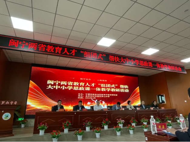 宁夏师范学院、福建省泉州第一中学、红寺堡区罗山中学、红寺堡区第二小学的负责人进行了思政一体化协作校签约。此次签约旨在进一步精准有效地开展闽宁“组团式”人才帮扶工作,搭建校地、校校之间思政一体化教学教研工作协同提质的桥梁。