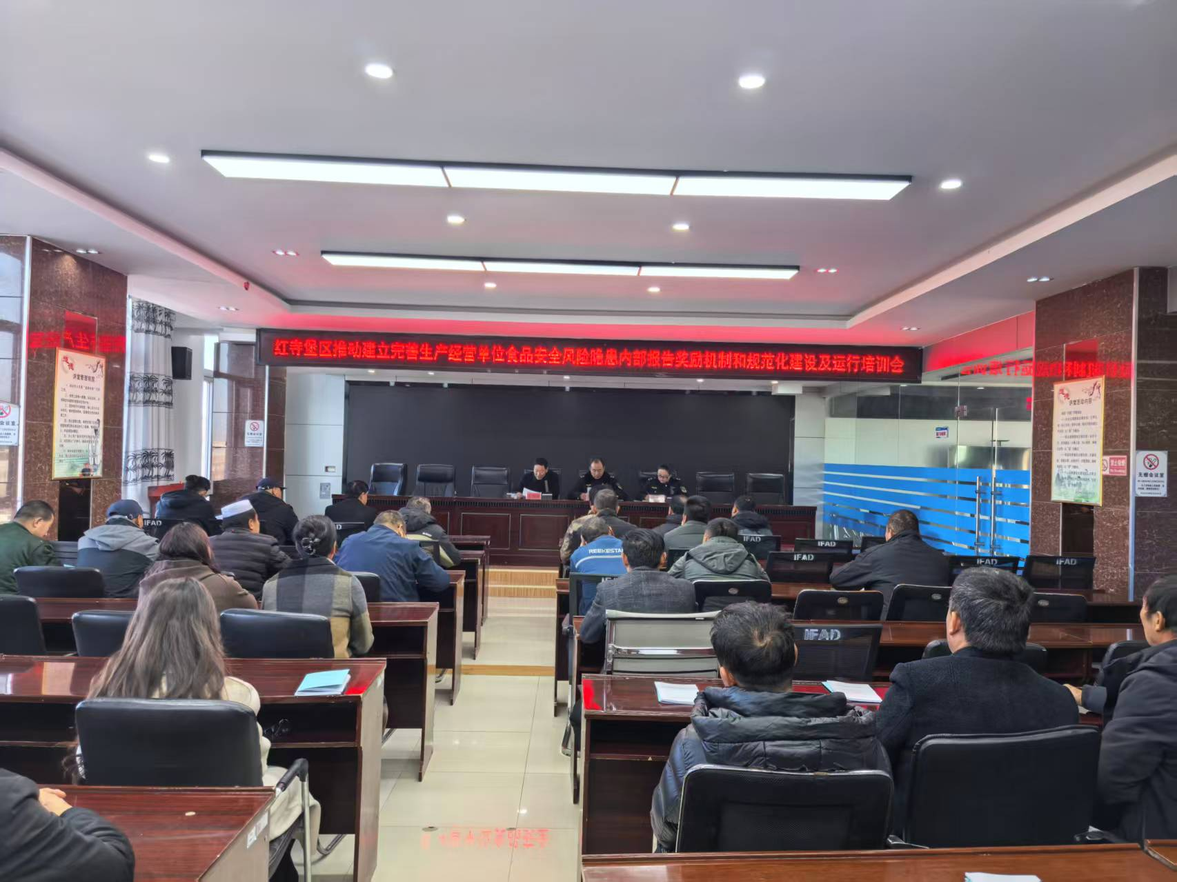 为深入贯彻《自治区食品药品安全委员会办公室关于推动建立完善生产经营单位食品安全风险隐患内部报告奖励机制的通知》,进一步筑牢食品安全防线。2025年11月20日,红寺堡区农业农村局联合市场监督管理局召开“建立完善生产经营单位食品安全风险隐患内部报告奖励机制工作推进暨业务培训会”。全区农业经营主体负责人共计50余人参加培训。