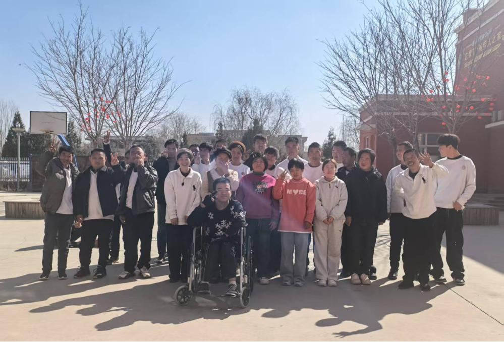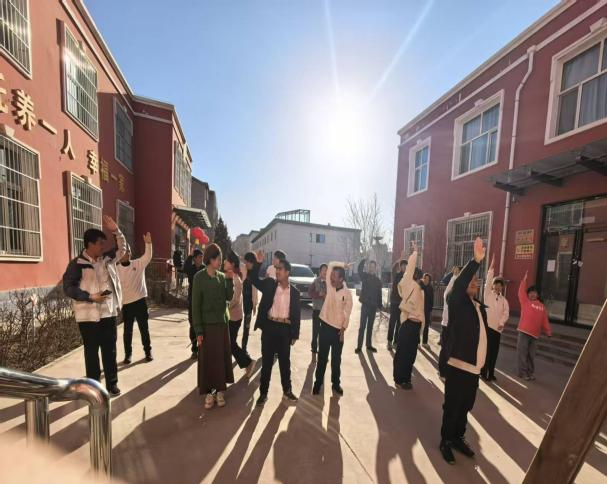 晴日当空,澄澈的蓝天没有一丝云絮,暖融融的阳光倾洒在托养中心的院落里,将红墙建筑镀上一层温柔的金边。光秃秃的枝桠在地面投下细碎的影子,风里带着冬日特有的清冽,却吹不散满场的暖意。