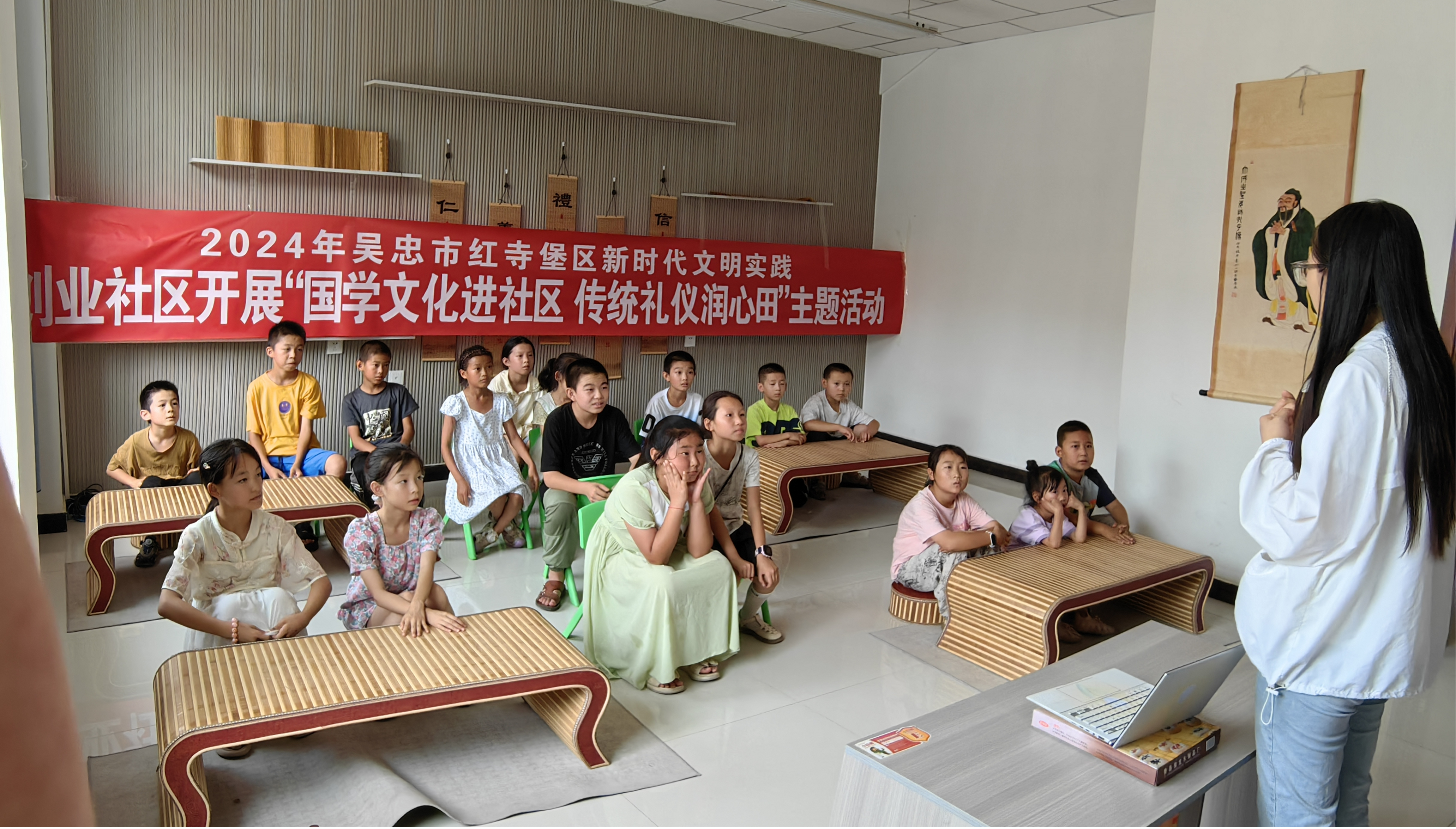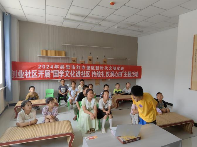 国学文化是中华文化的瑰宝,是古人智慧和思想的结晶。为继承和弘扬中华优秀传统文化,激发辖区青少年学生学习国学礼仪的热情,2024年7月22日,创业社区开展“国学文化进社区,传统礼仪润心田”活动,通过学习传统礼仪、诵读国学经典,让孩子们感受国学文化的魅力,培养他们热爱祖国、传承文化的责任感。