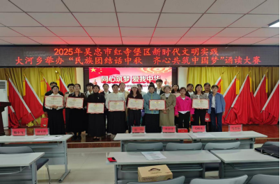 金秋送爽,秋高气和。值此国庆与中秋美好时节,为深入推进铸牢中华民族共同体意识示范区创建工作,大力营造“铸牢共同体中华一家亲”的浓厚社会氛围,9月29日,大河乡举办了“民族团结话中秋 齐心共筑中国梦”主题诵读大赛。乡领导班子成员、全体干部及来自各村的12支参赛队伍齐聚一堂,共同参与了这场融汇家国情怀与文化传承的盛宴。