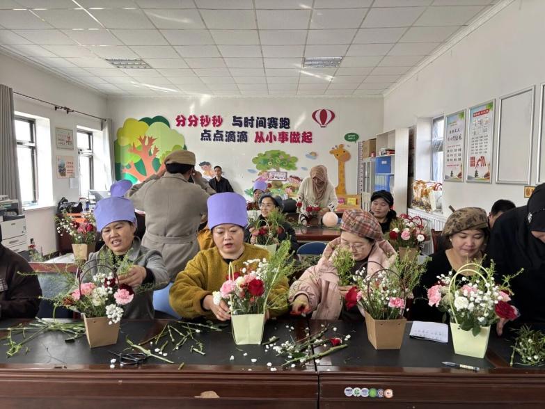 活动现场还特别设置了温馨雅致的插花环节。在花艺老师的耐心指导下,姐妹们手持花枝,精心搭配、细心修剪,将一朵朵鲜花错落有致地插入花器。大家边学边练、相互交流,从枝叶修剪到造型设计,一步步将零散的花草变成了一盆盆错落有致、生机盎然的花艺作品。花香四溢、笑语盈盈,大家在指尖感受花艺之美,在创作中放松身心、陶冶情操,用鲜花装点生活,用芬芳喜迎节日,充分展现了新时代女性热爱生活、追求美好的优雅气质。