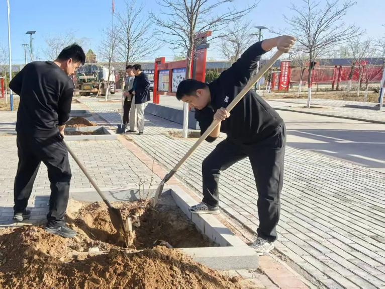党员干部率先垂范,挥锹铲土、挖坑扶苗、培土踩实,每道工序细致认真;保洁员边植树边清理杂草、碎石、生活垃圾,及时维护现场整洁 ,为巩固植树成效、建立长效机制,通过村民小组微信群、大喇叭广泛宣传爱绿护绿知识,发动村民共同参与,形成“党员带头、全员护绿、长效保洁”的良好氛围。