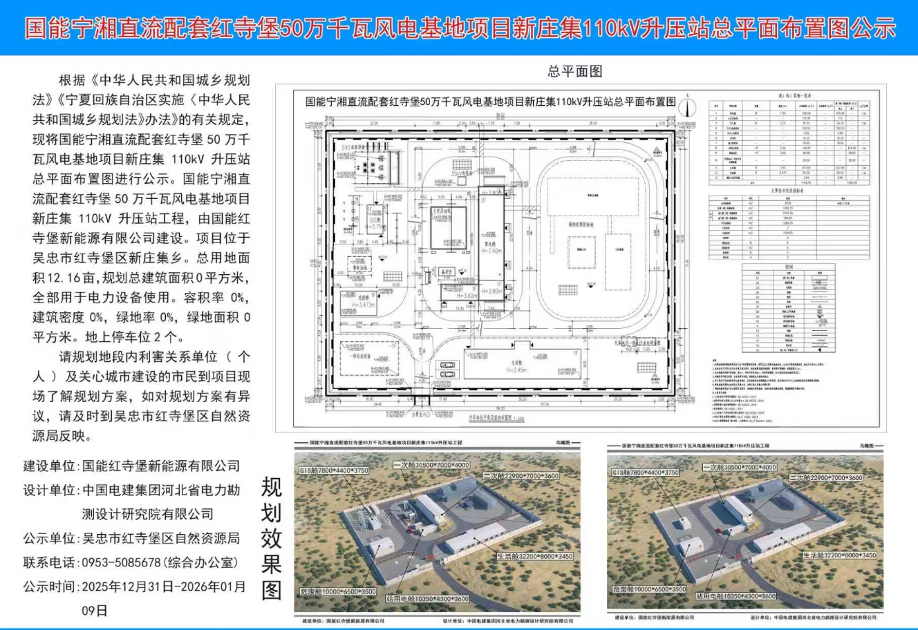 国能宁湘直流配套50万千瓦风电基地项目新庄集110kV升压站总平面布置图公示