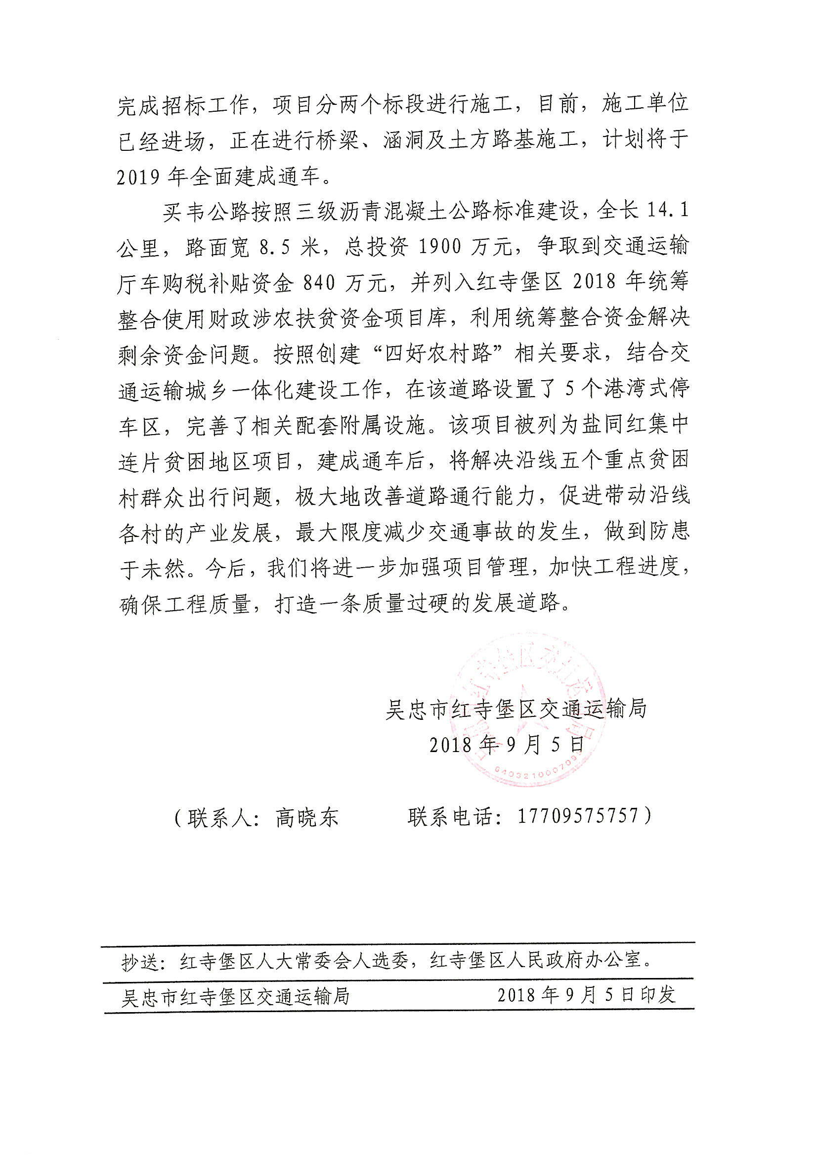 吴忠市红寺堡区交通运输局关于红寺堡区三届人大二次会议第19号建议答复的函(A类)
