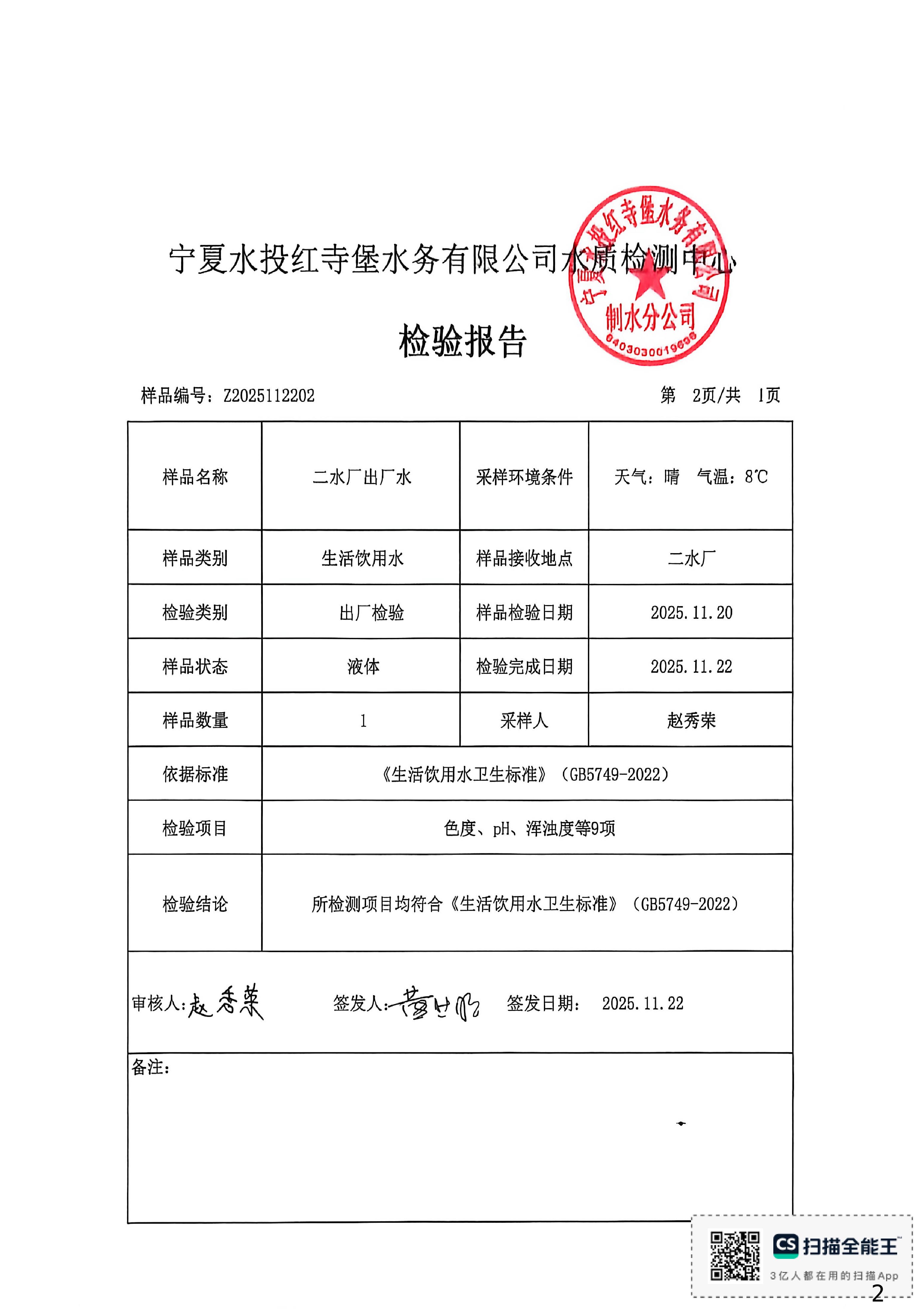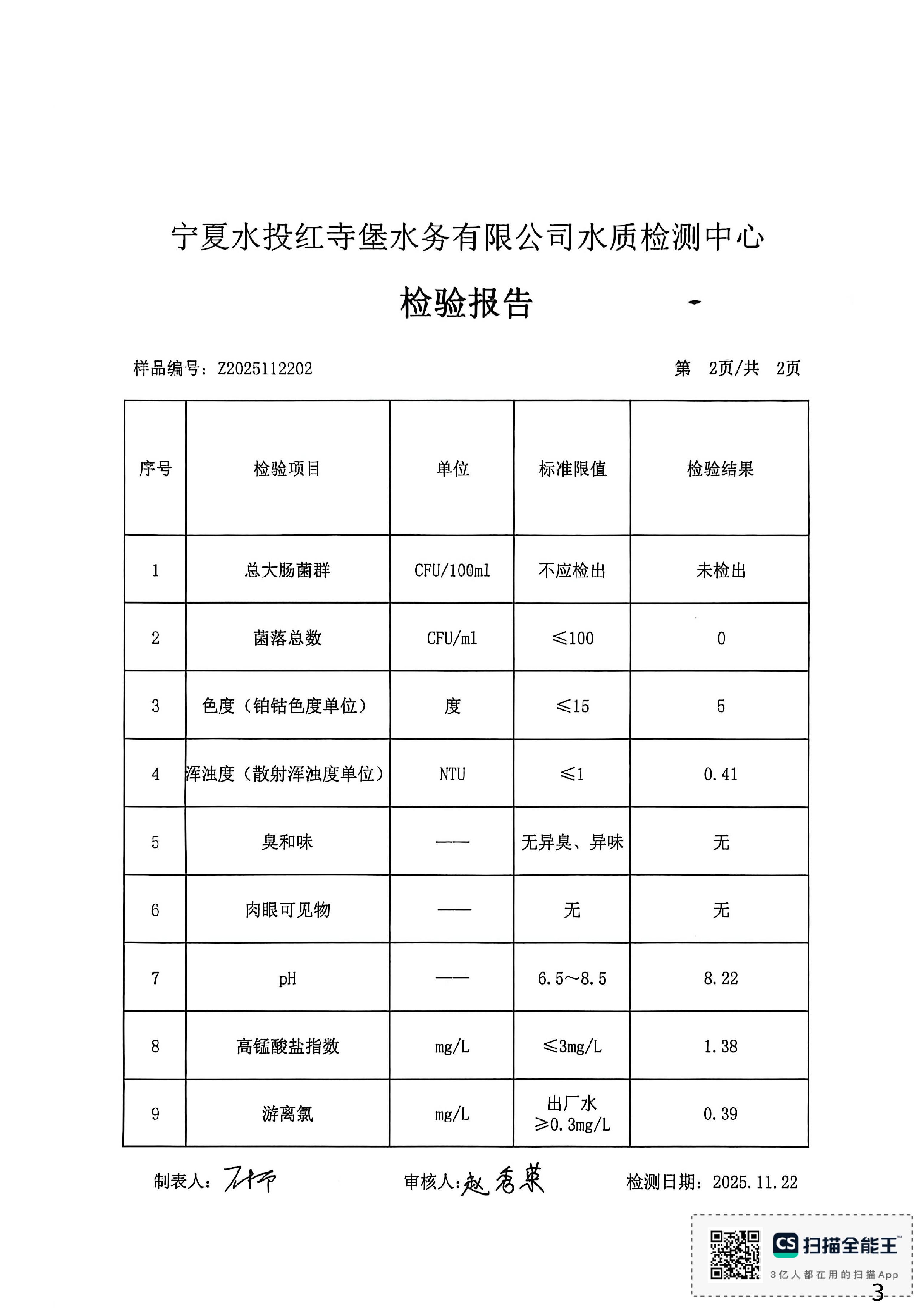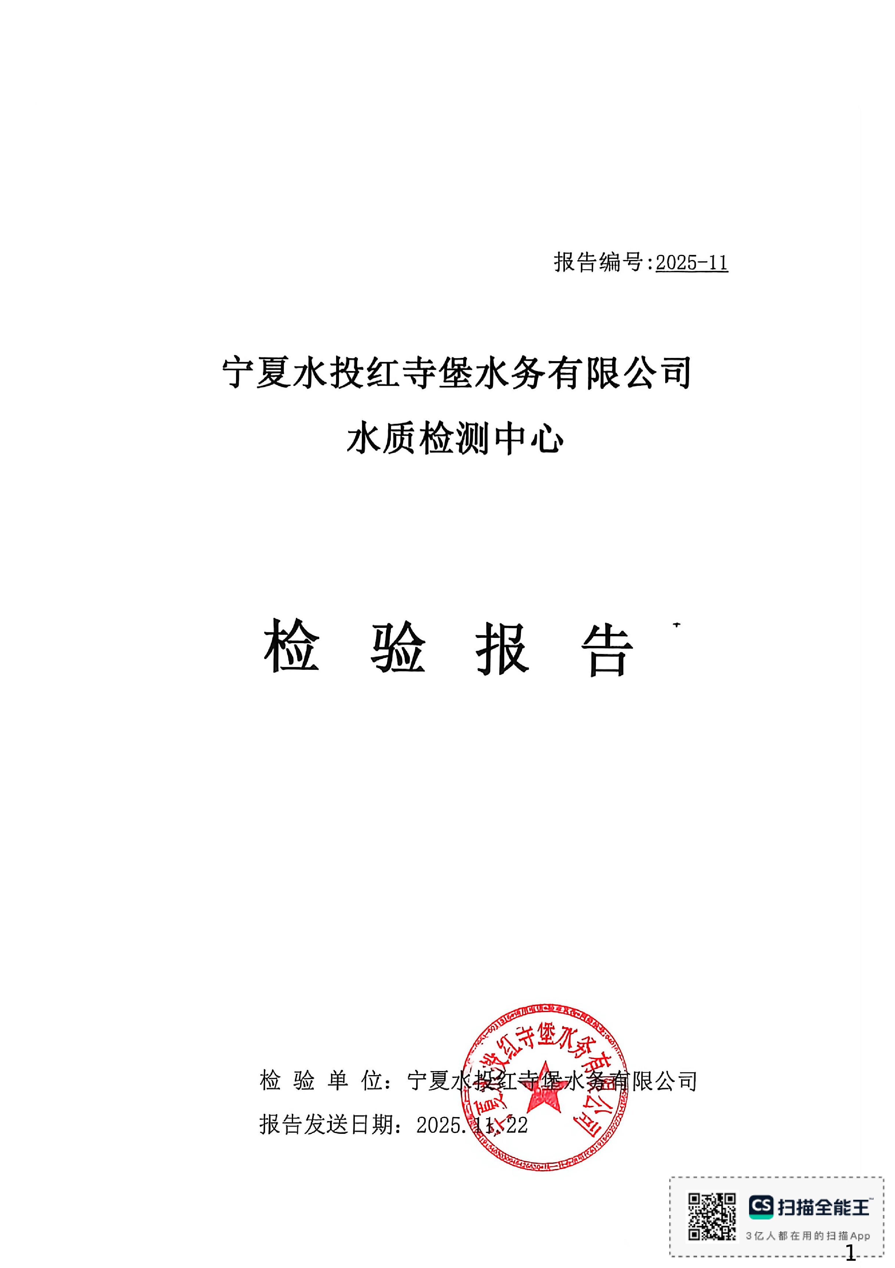 红寺堡区2025年11月份水质检测报告