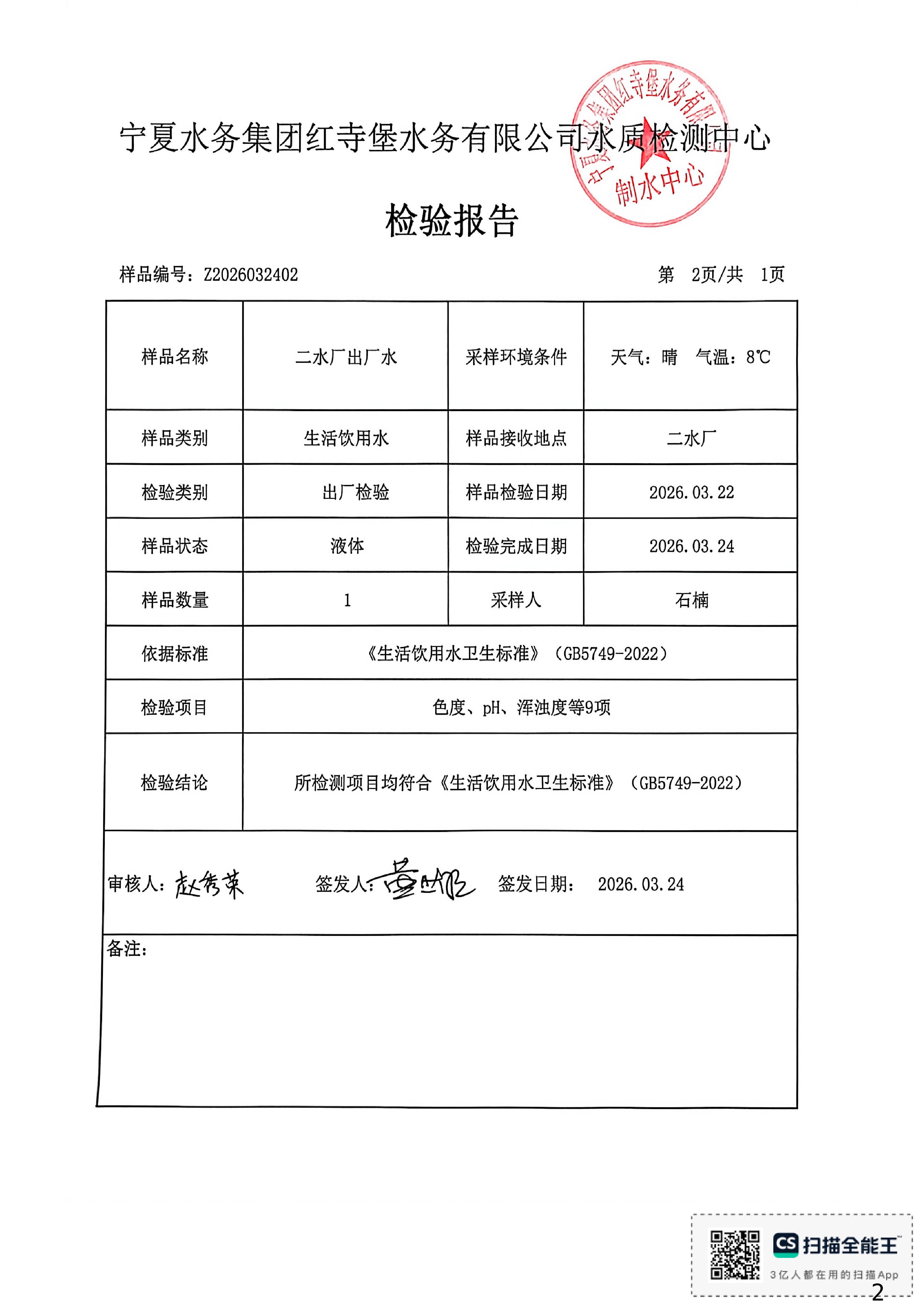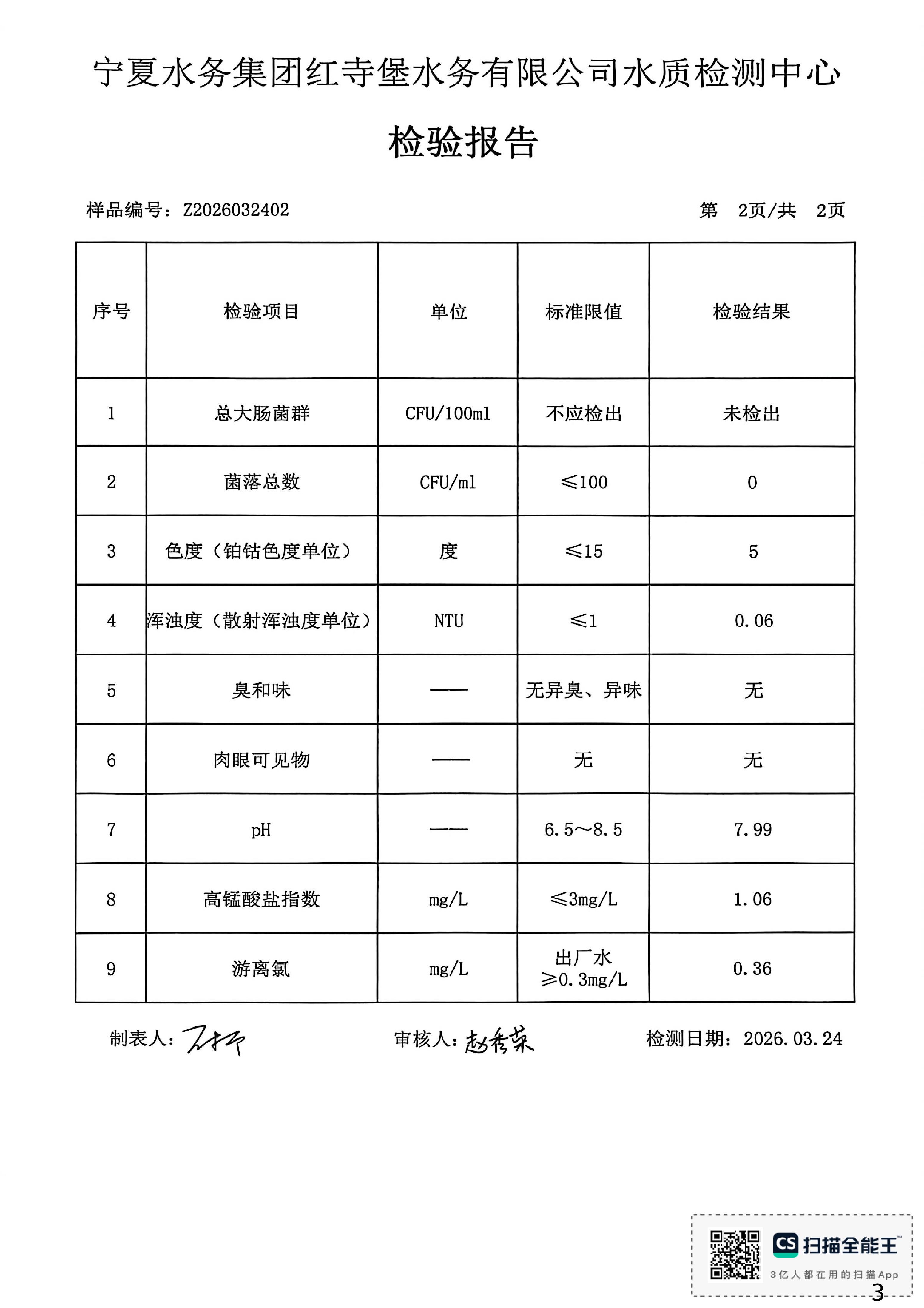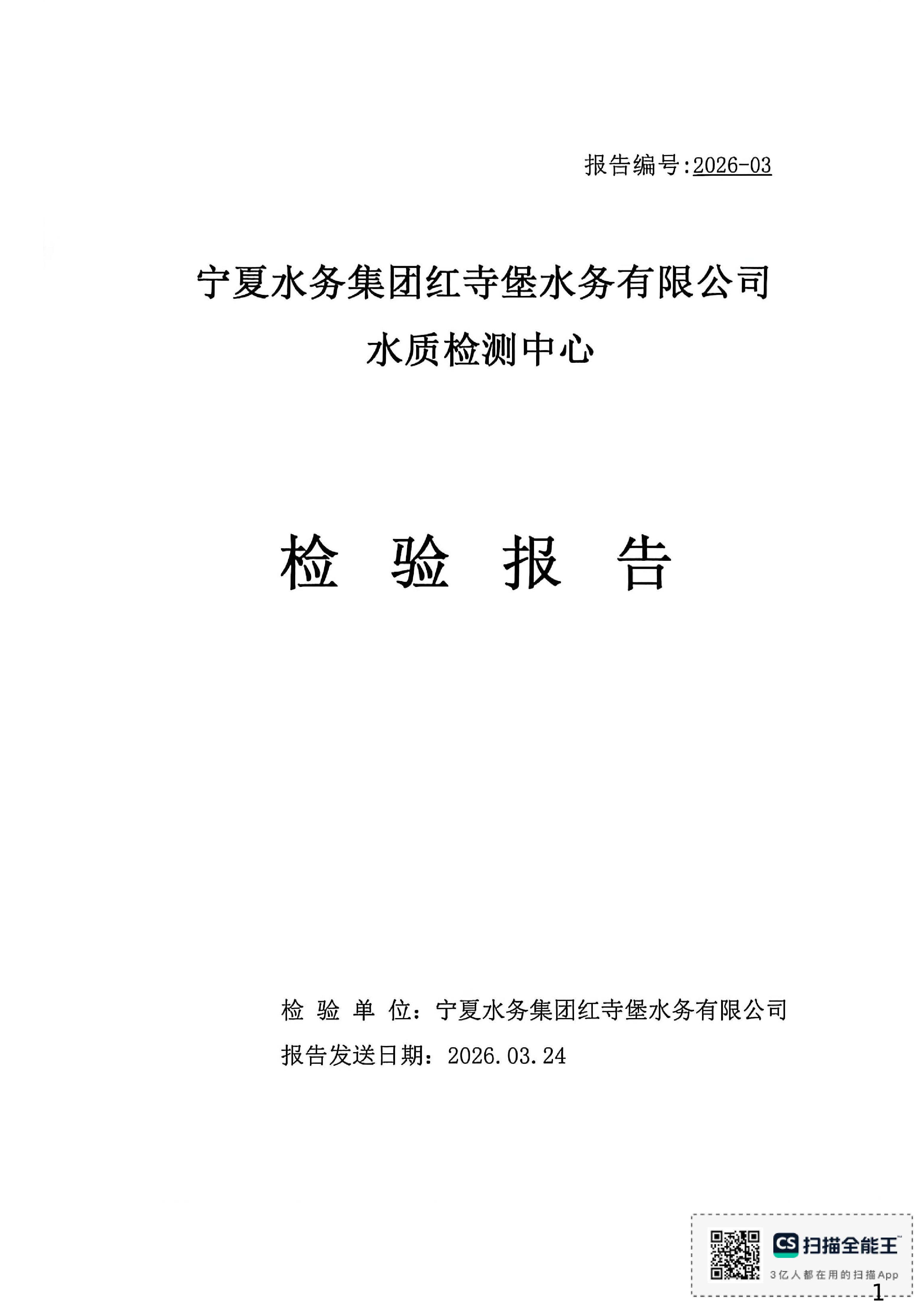 红寺堡区2026年3月份水质检测报告