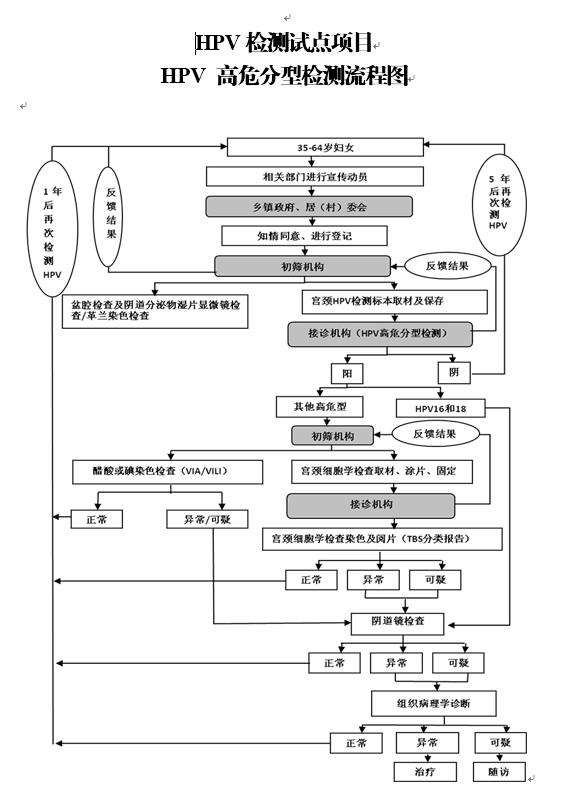 延续宫颈癌检查项目和HPV检测试点项目HPV高危分型检测流程图