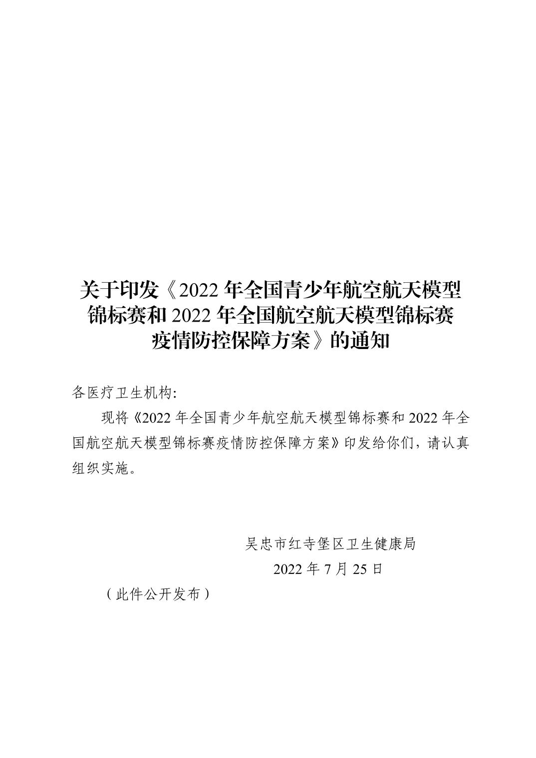 关于印发《2022年全国青少年航空航天模型锦标赛和2022年全国航空航天模型锦标赛疫情防控保障方案》的通知