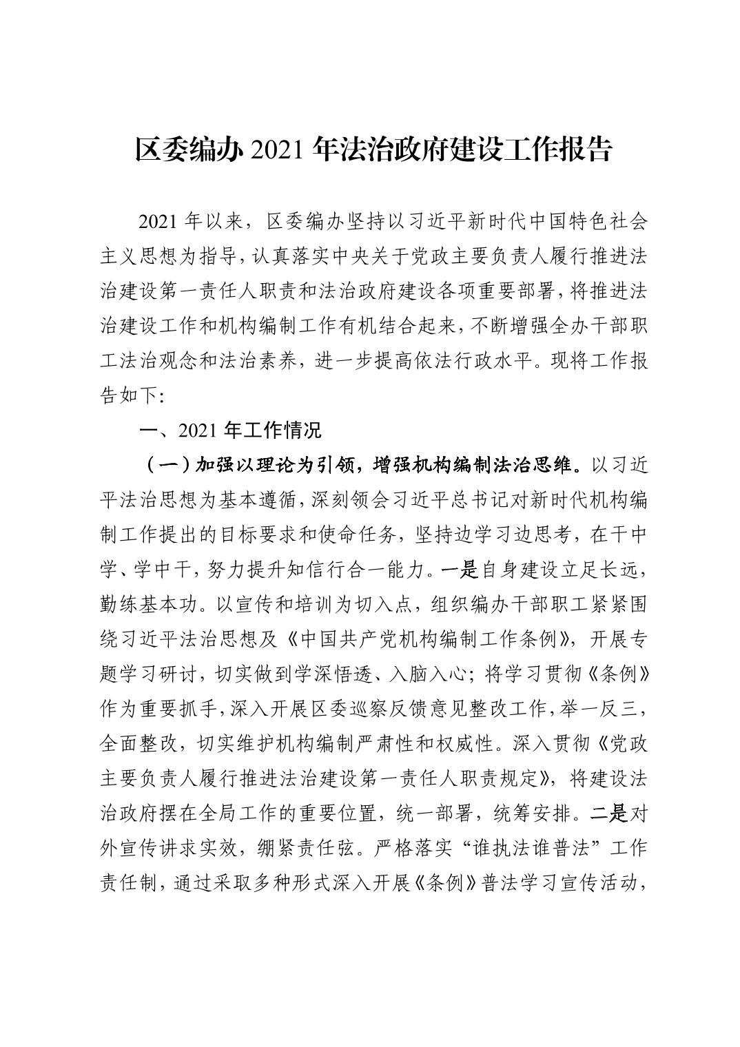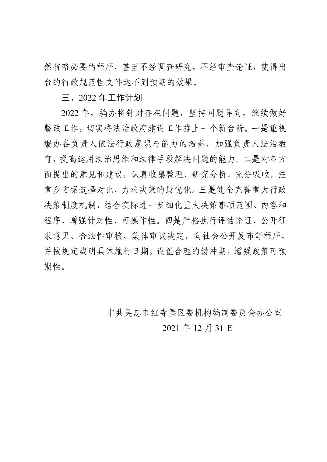 吴忠市红寺堡区委编办2021年法治政府建设工作报告