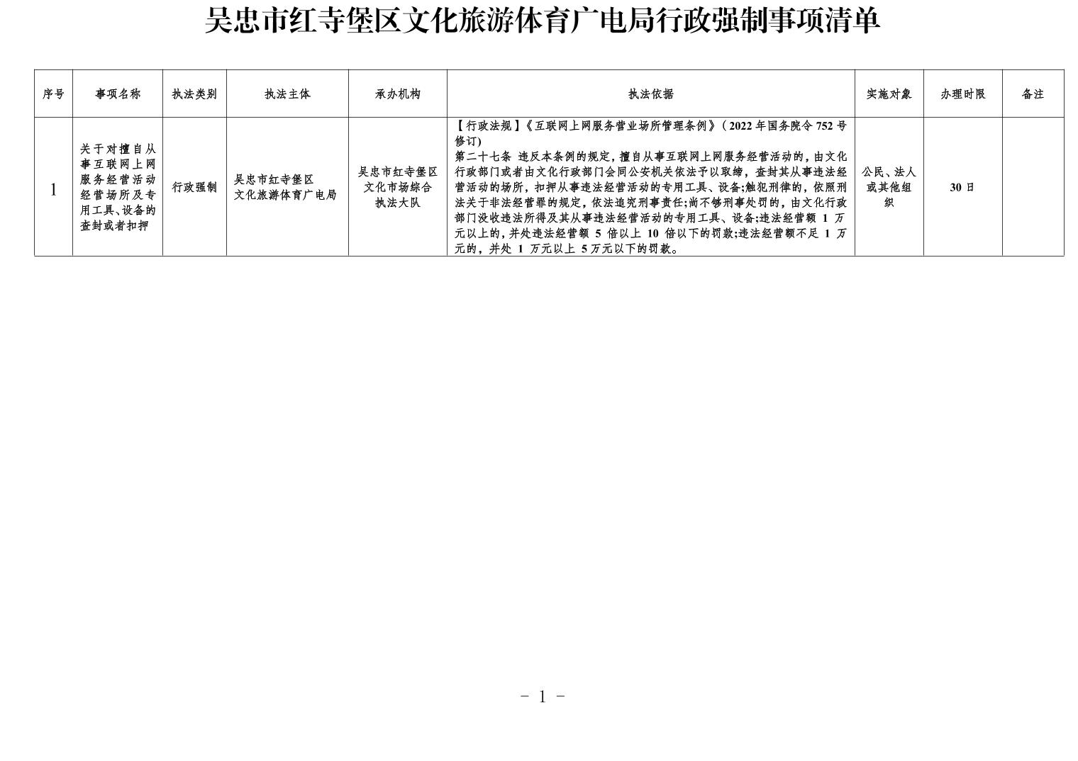 吴忠市红寺堡区文化旅游体育广电局行政强制事项清单