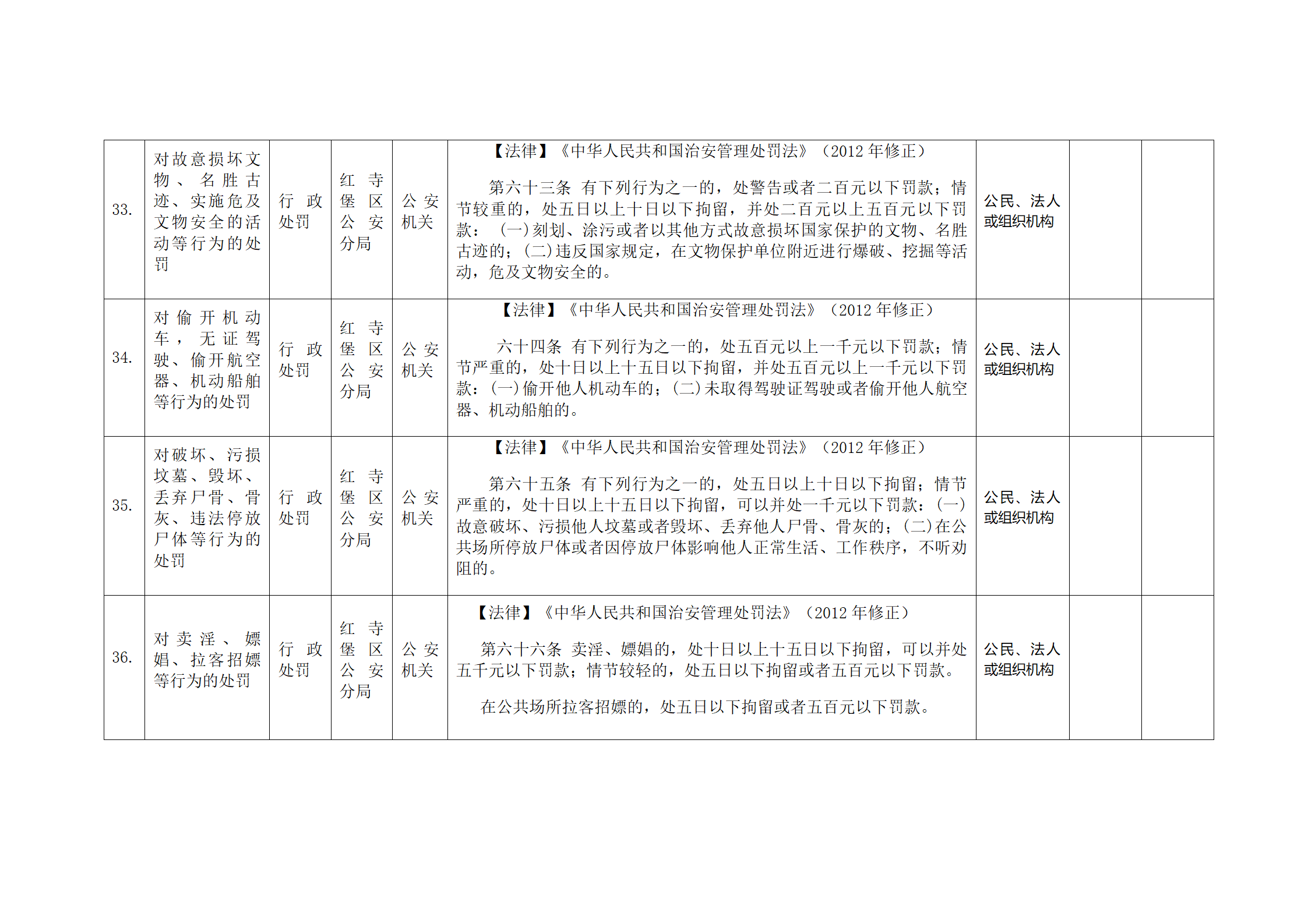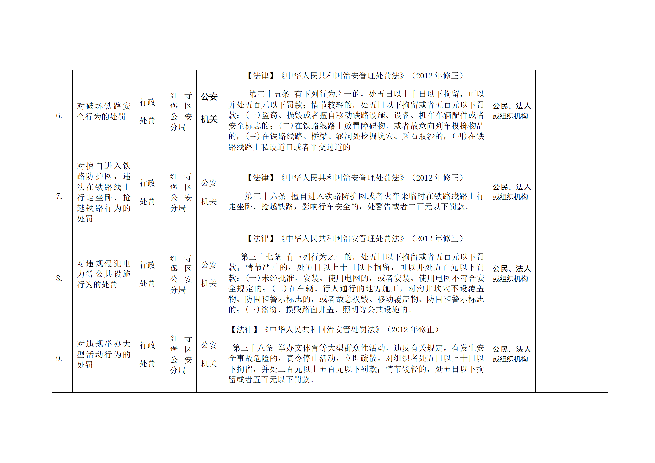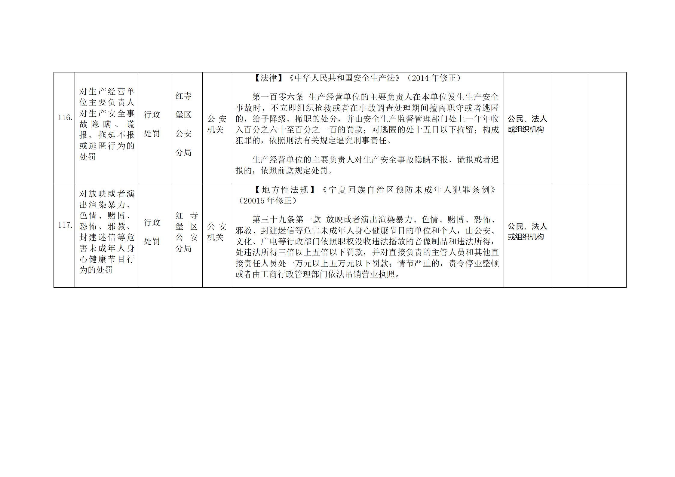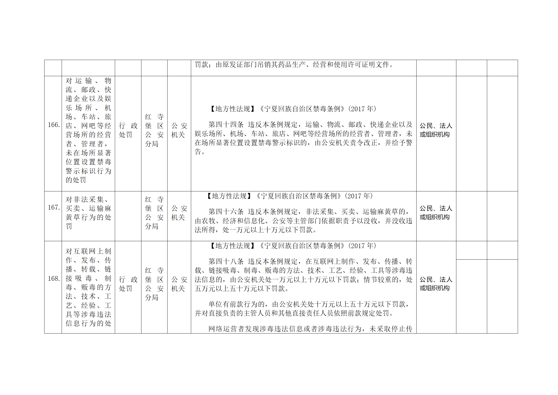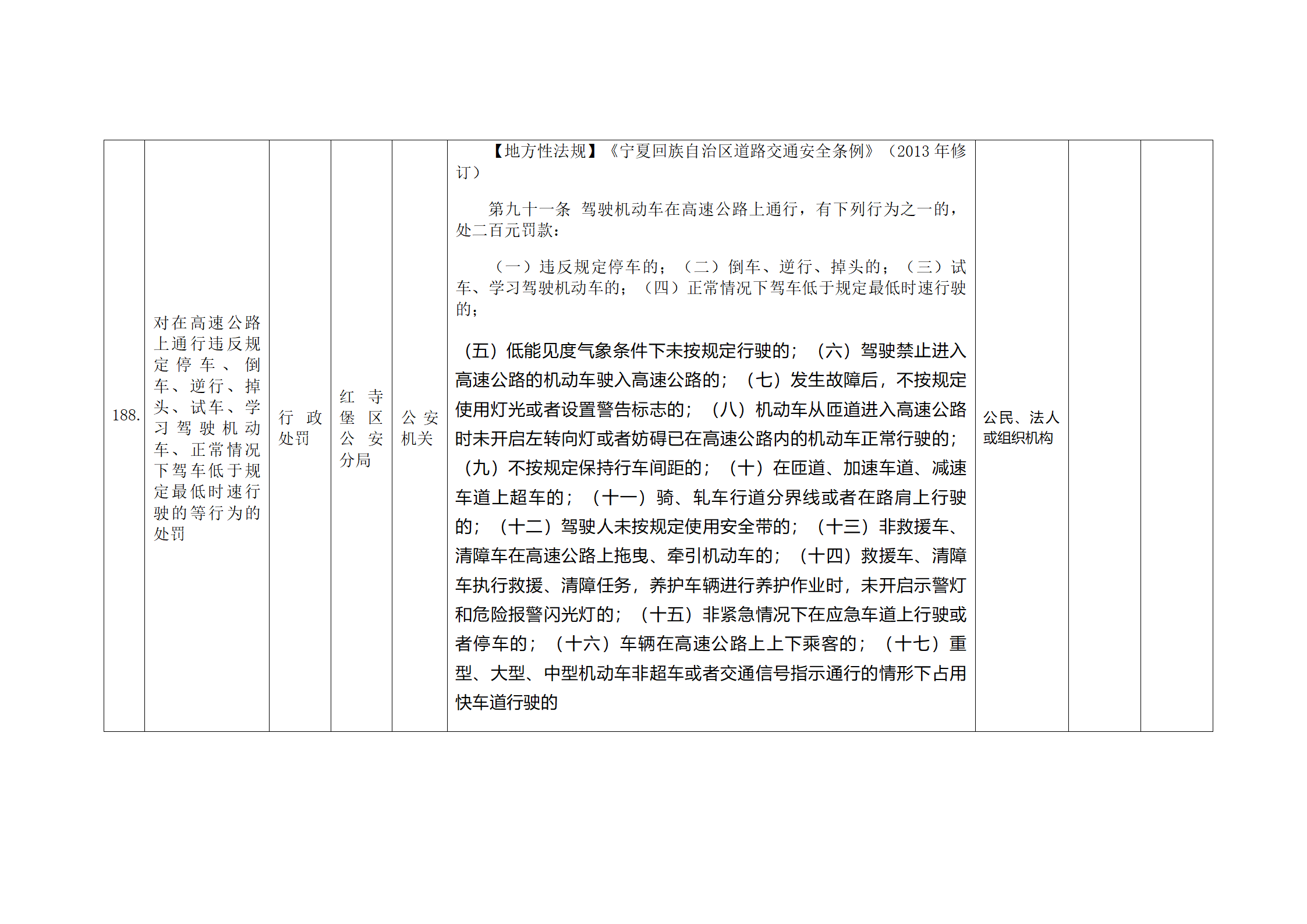 红寺堡区公安分局行政处罚事项清单