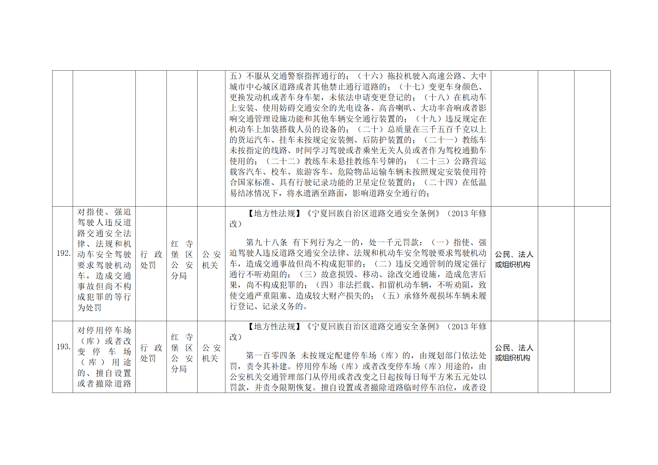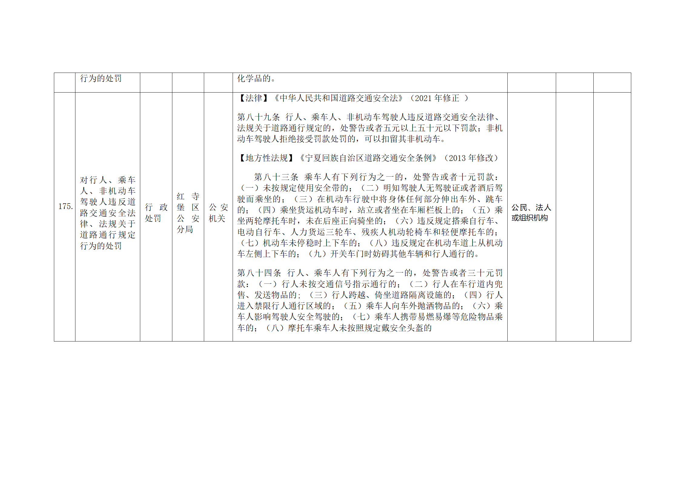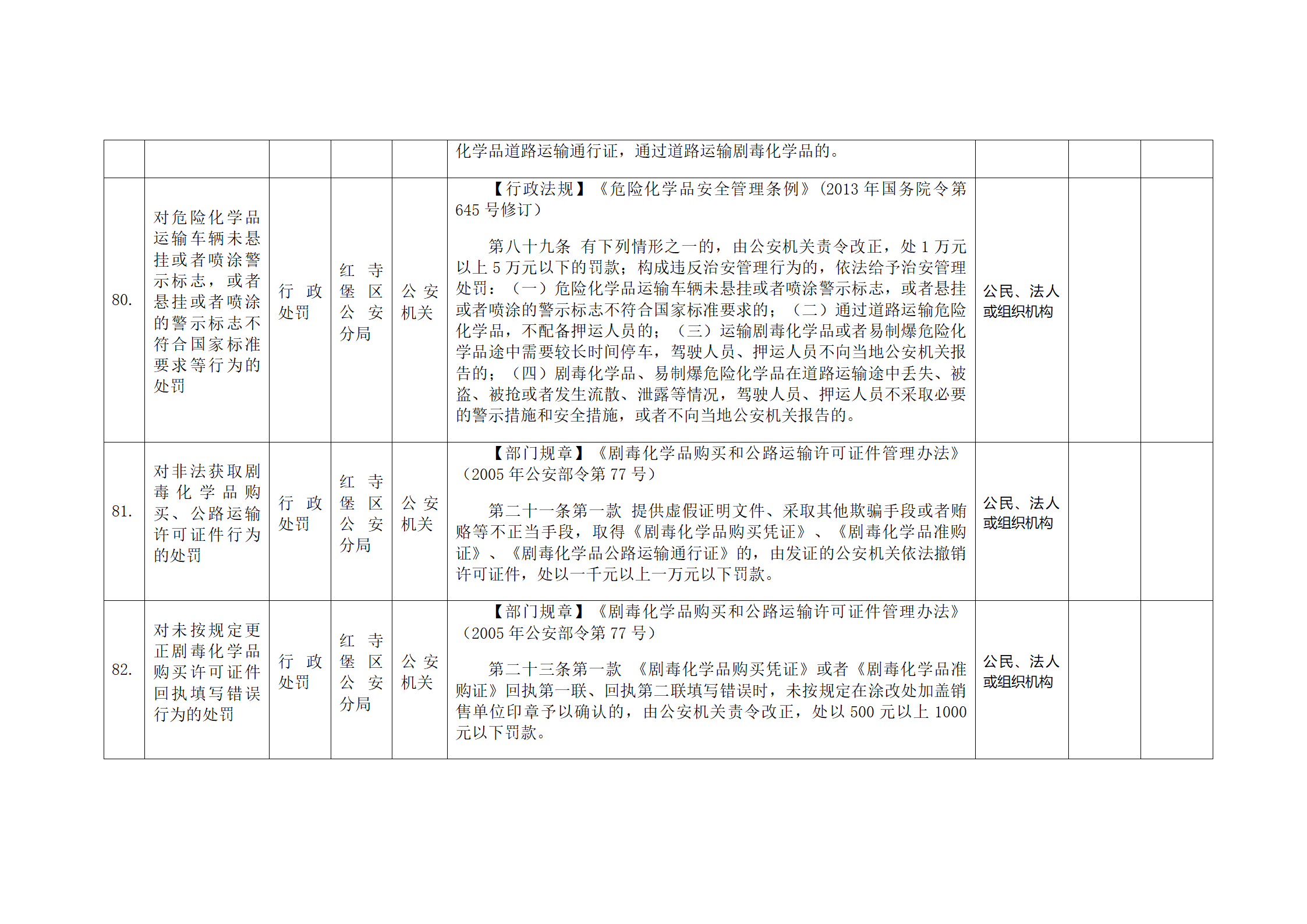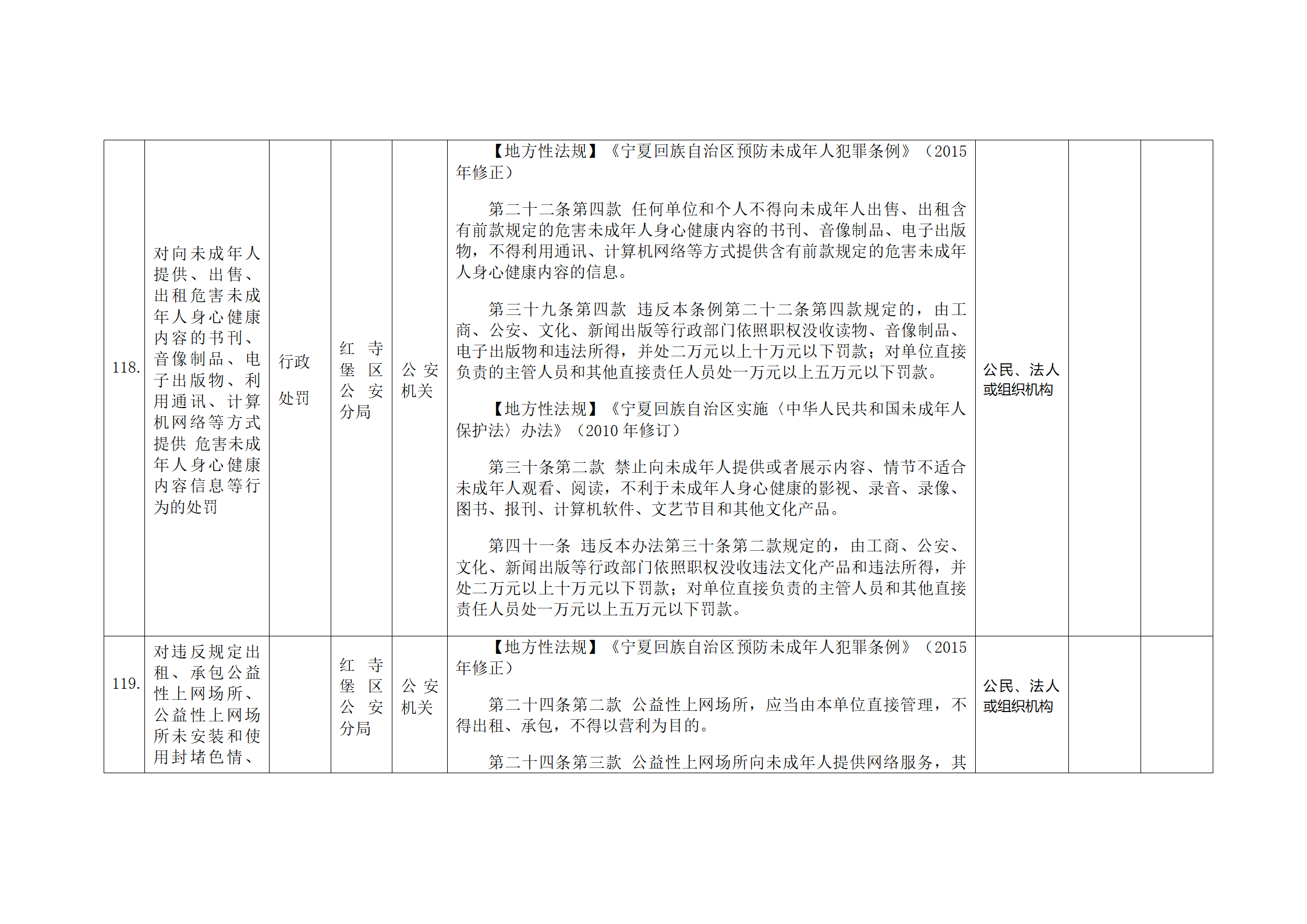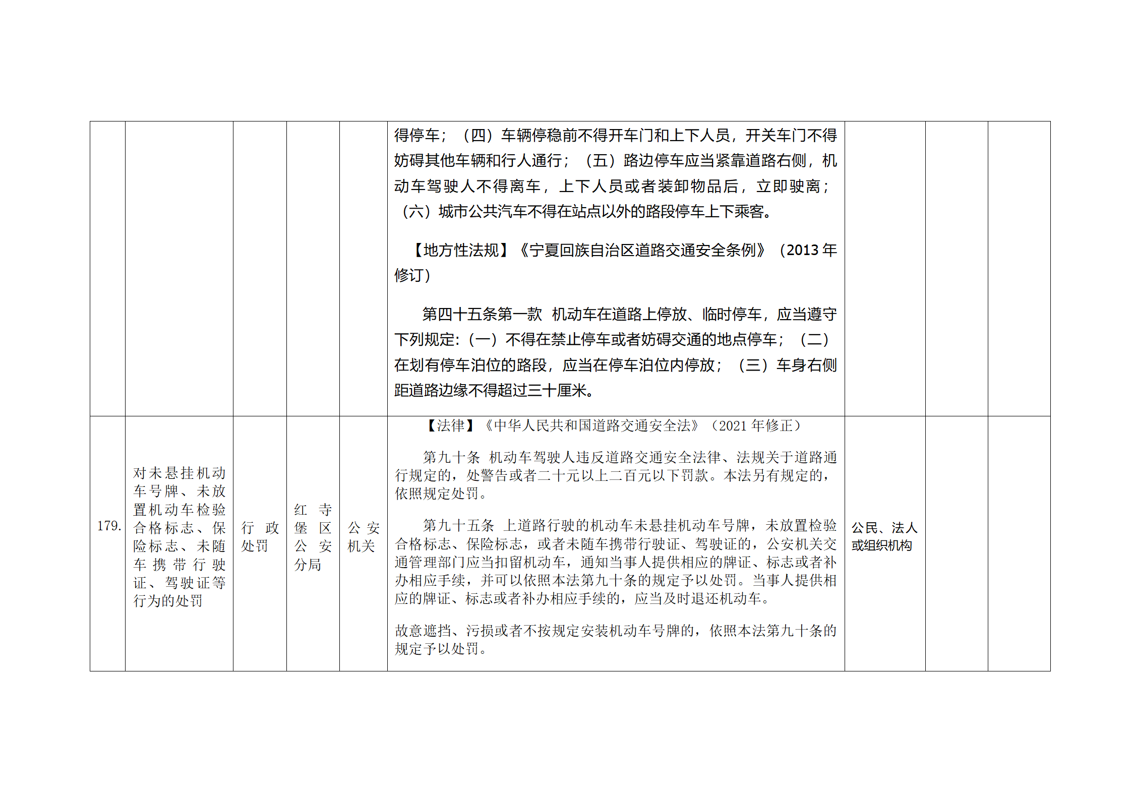 红寺堡区公安分局行政处罚事项清单
