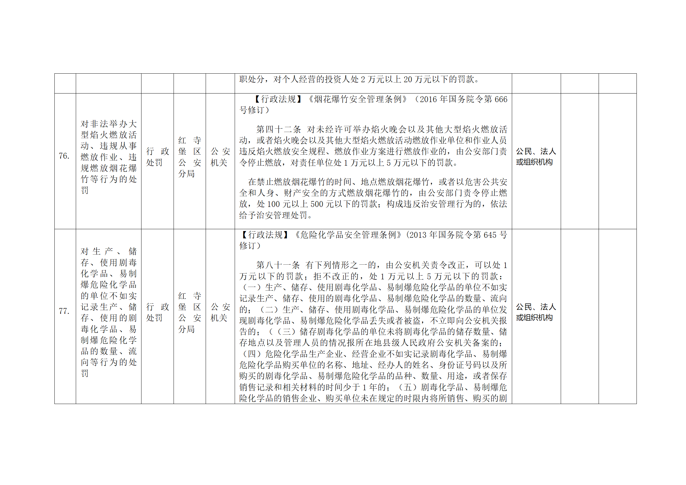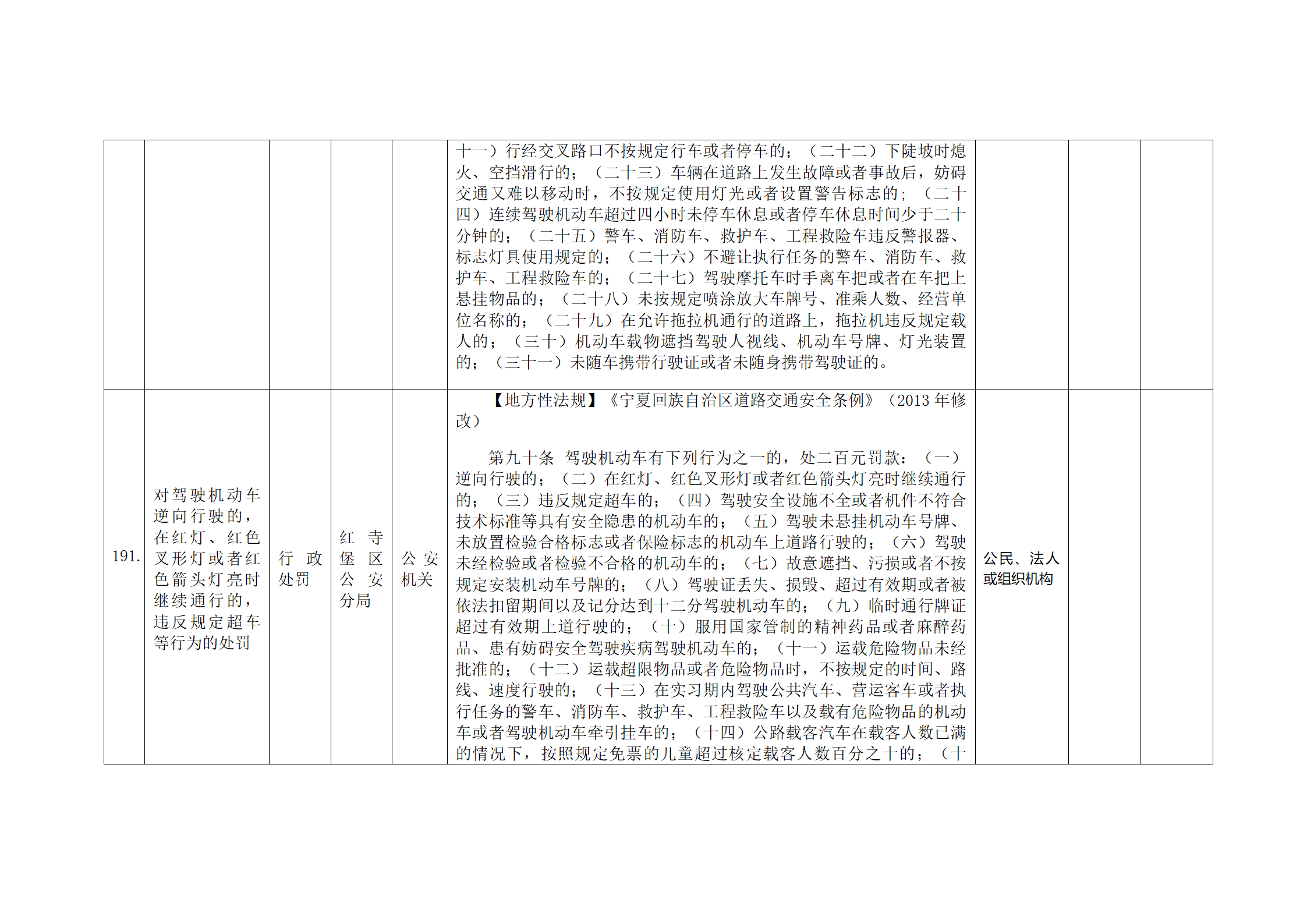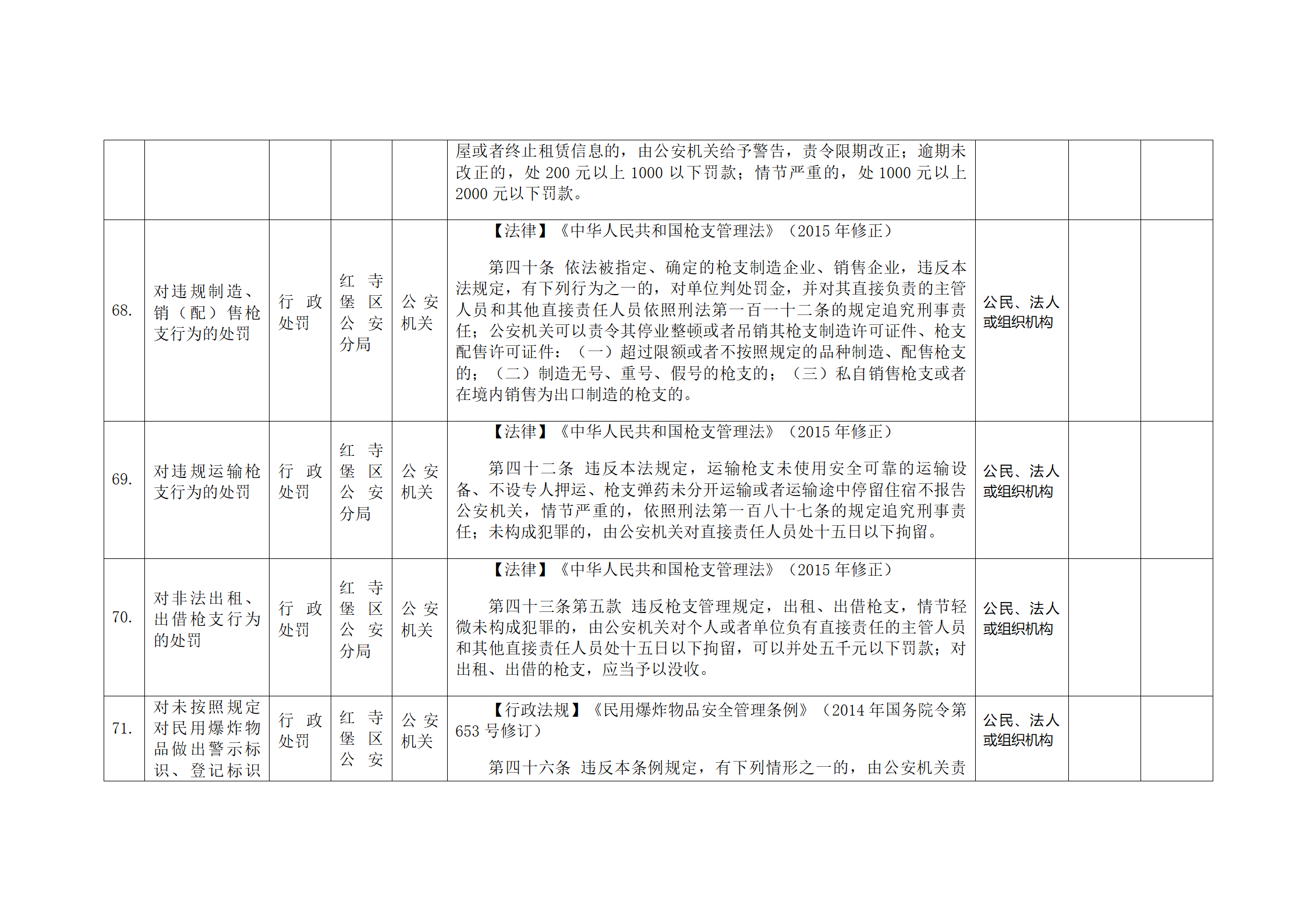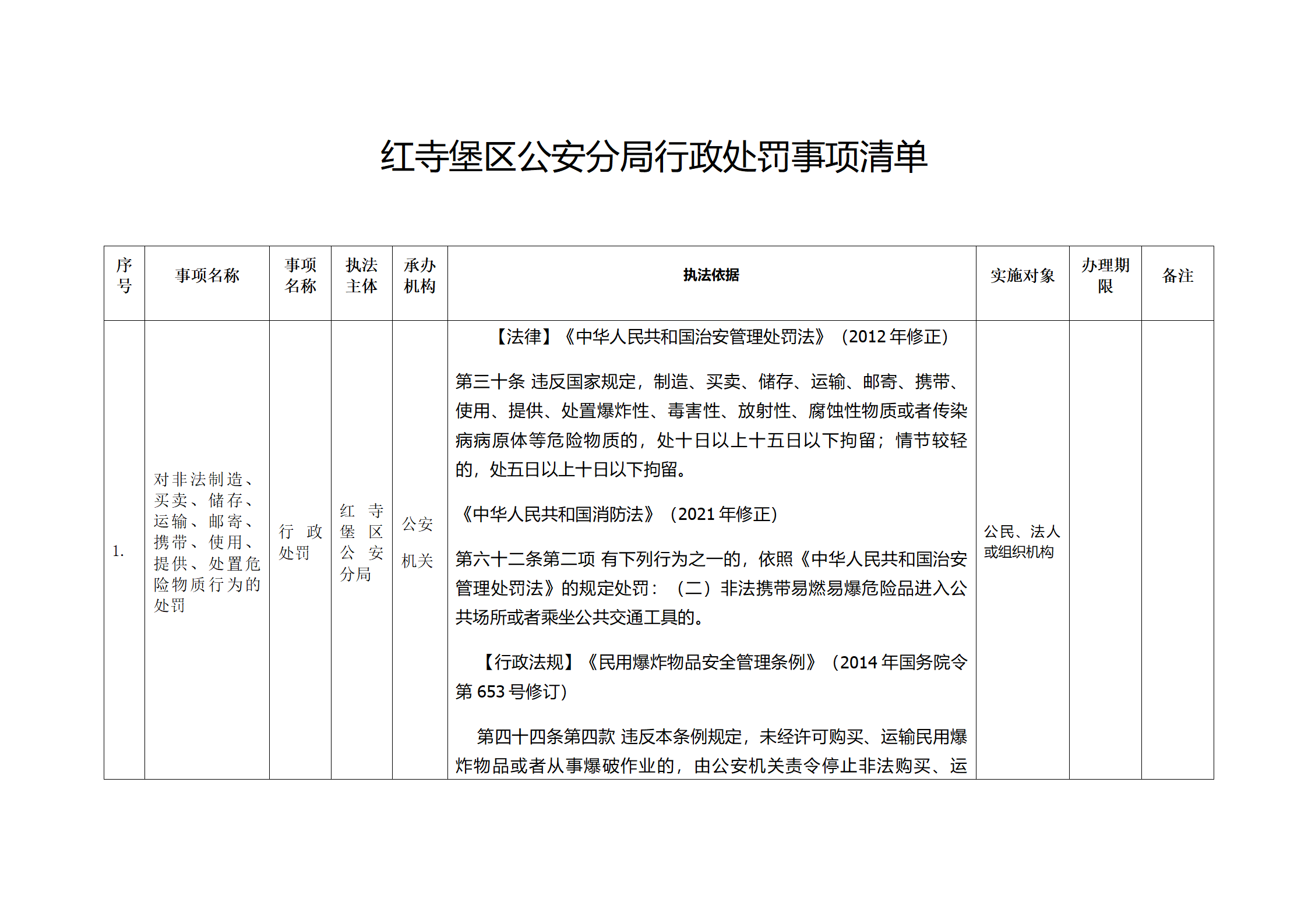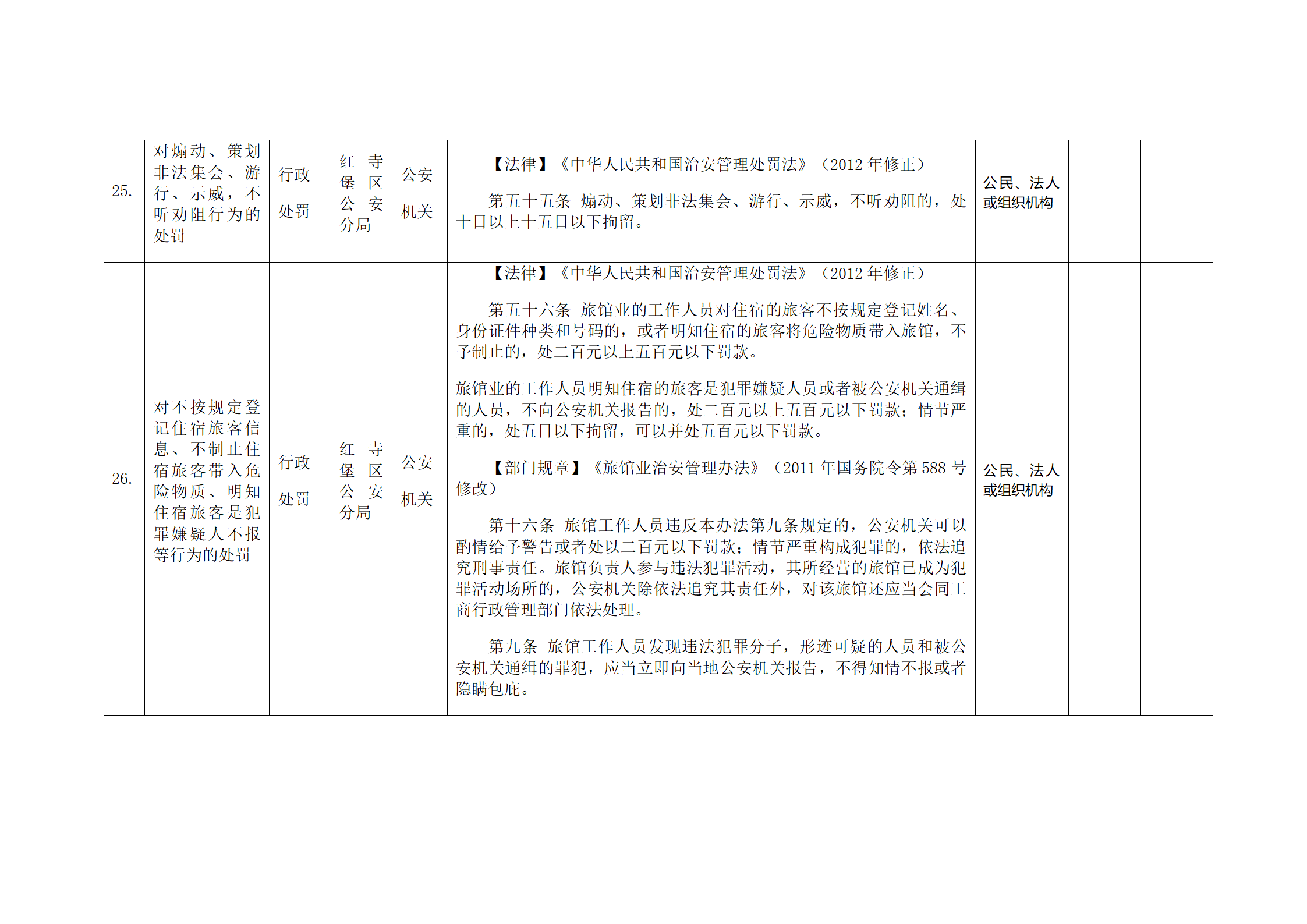 红寺堡区公安分局行政处罚事项清单