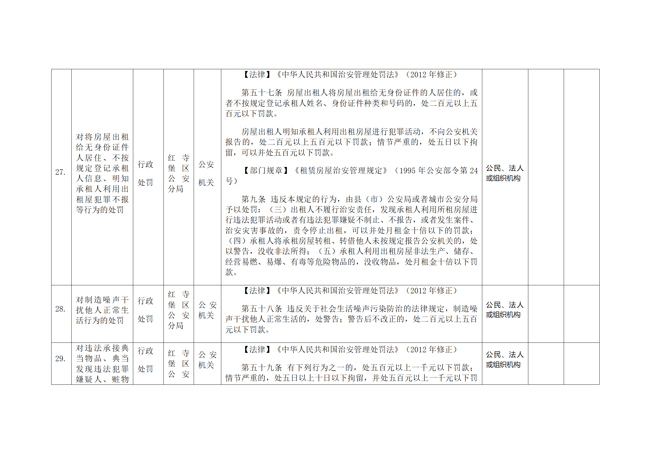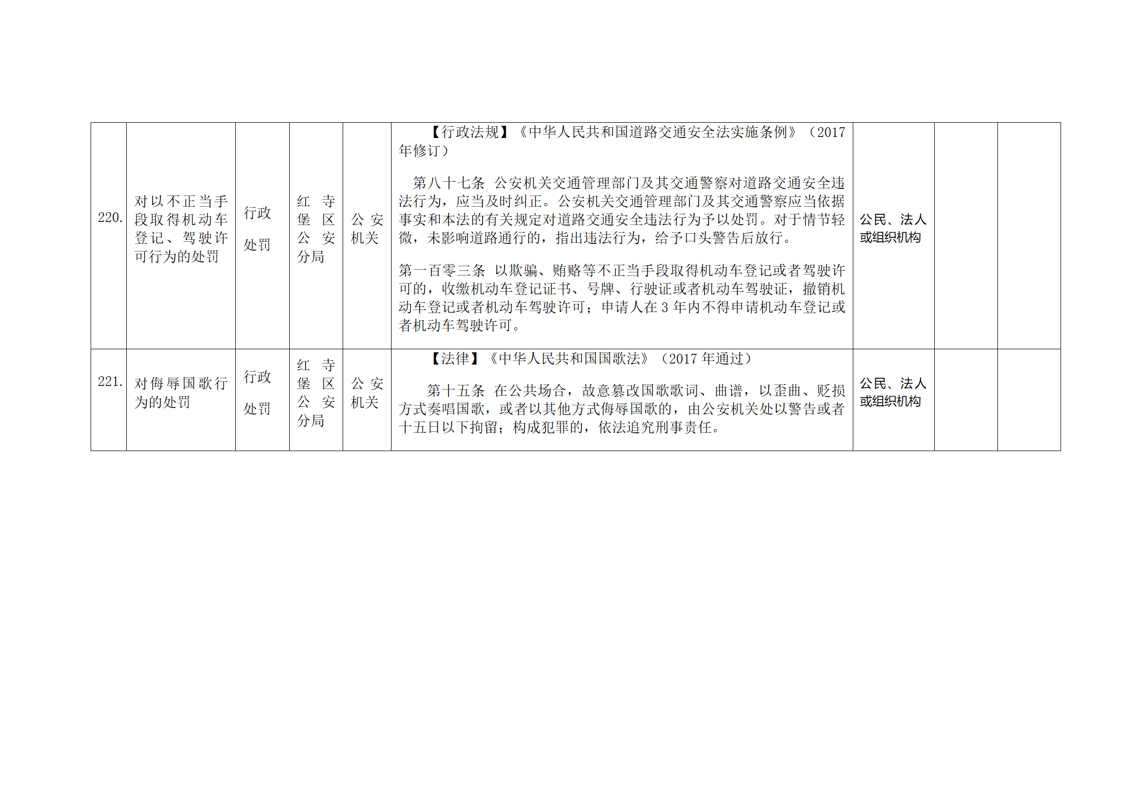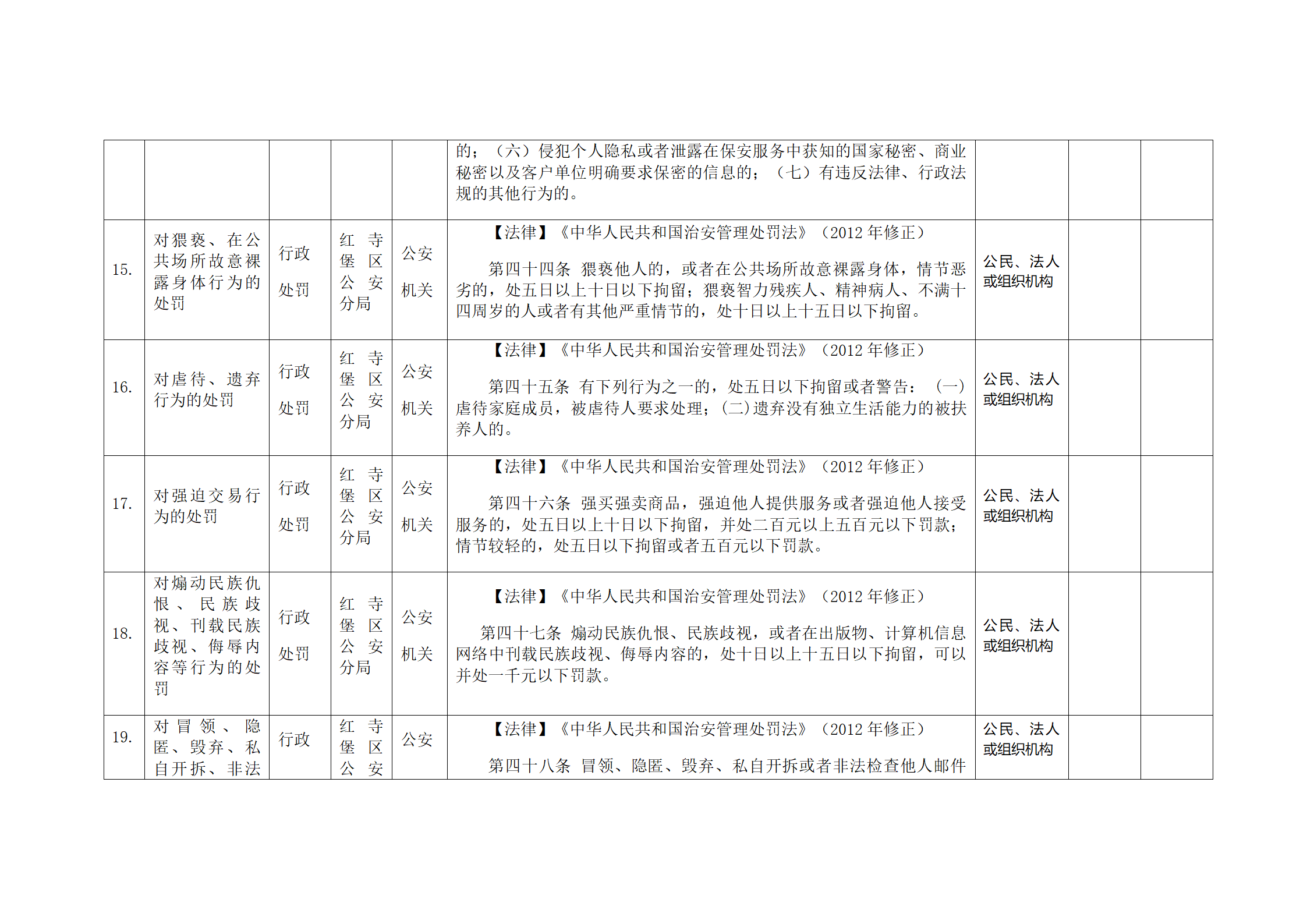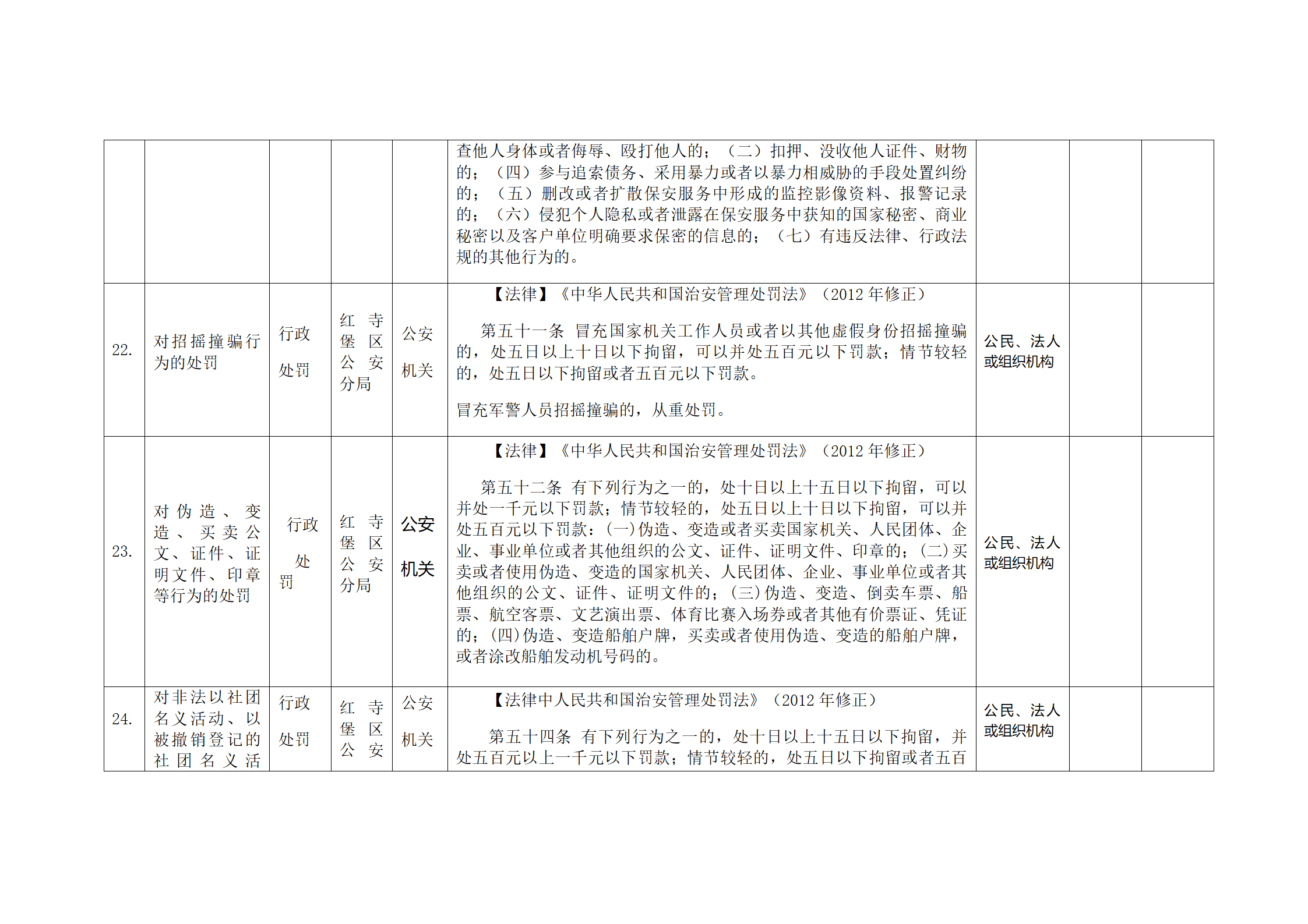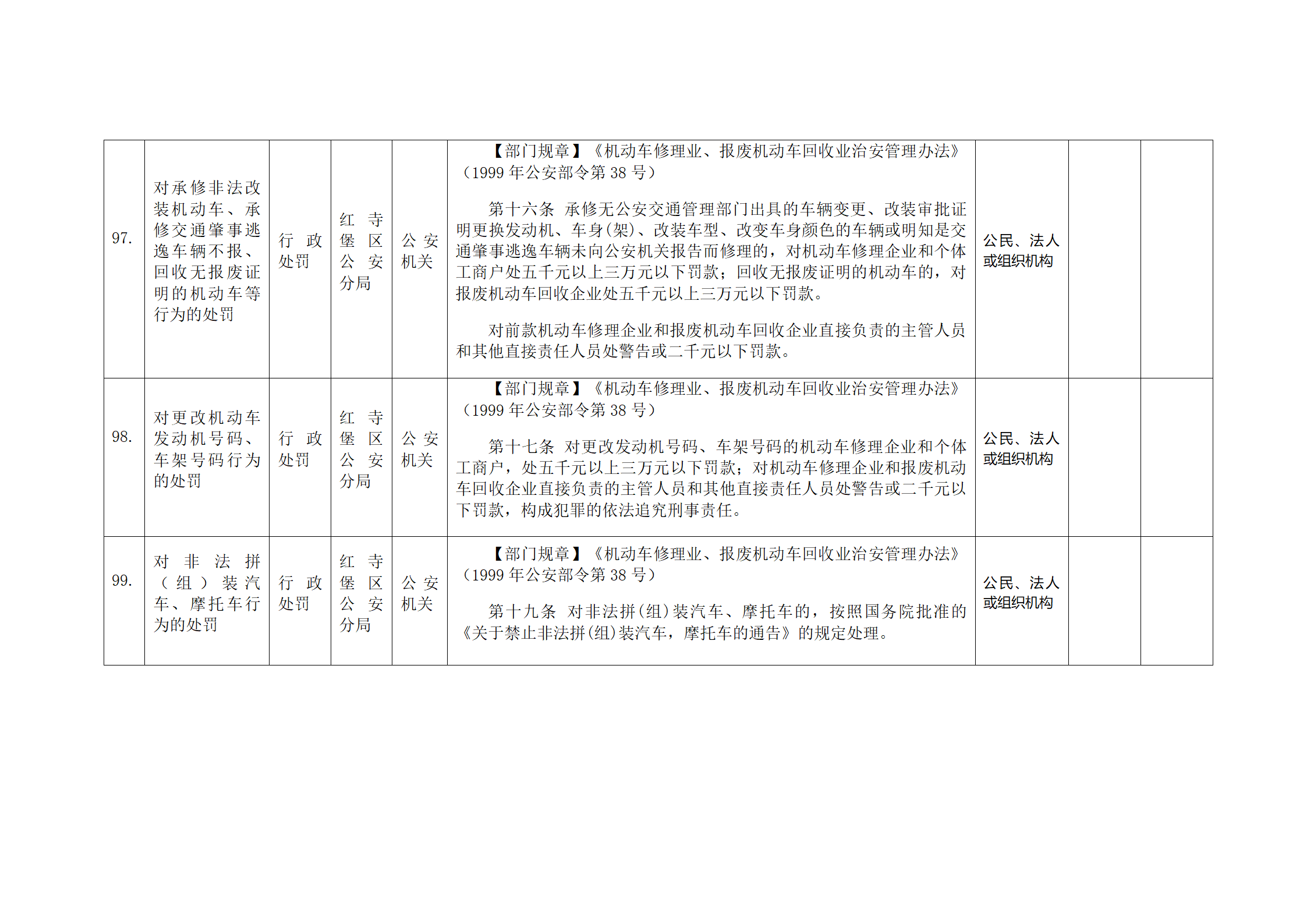 红寺堡区公安分局行政处罚事项清单