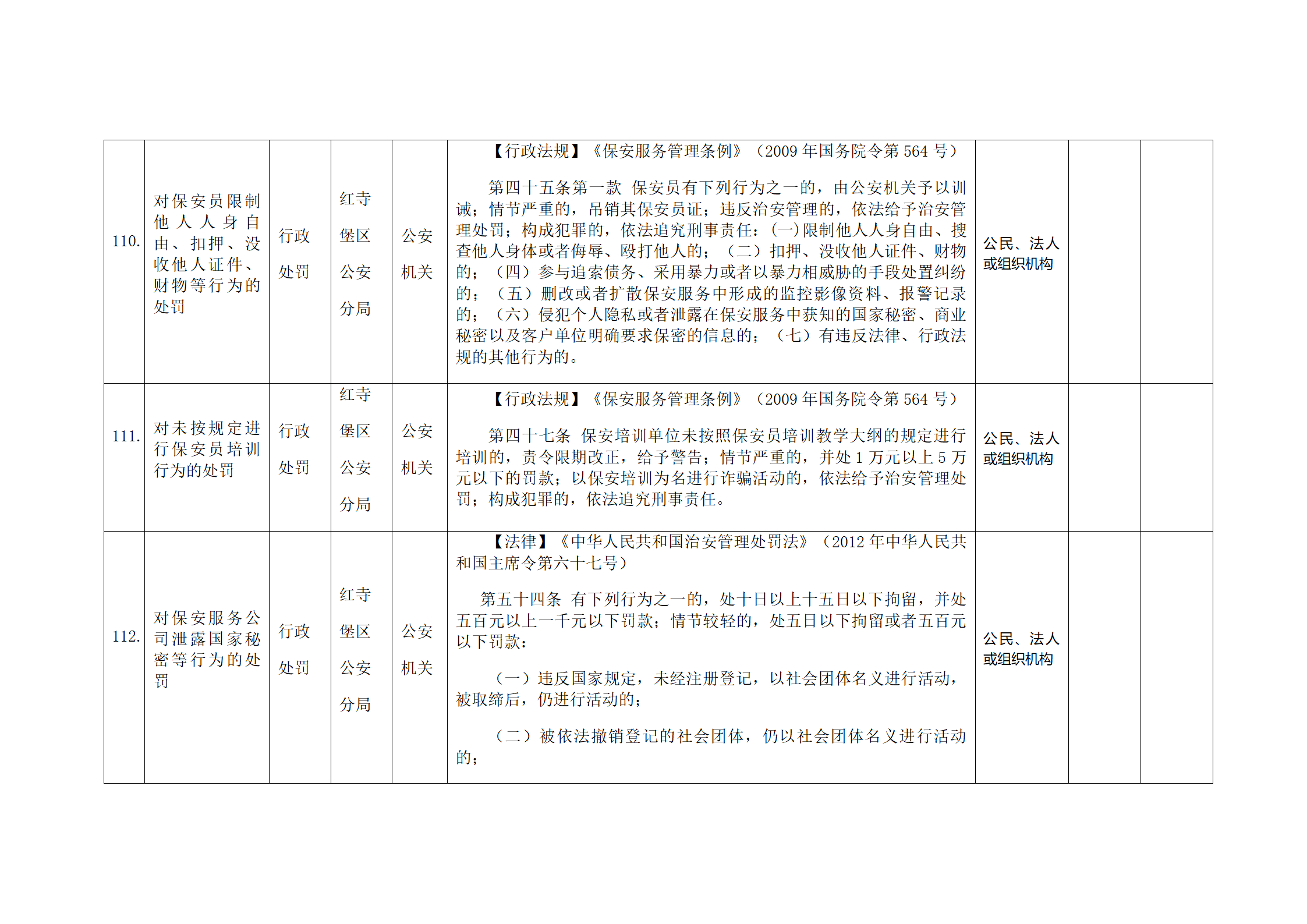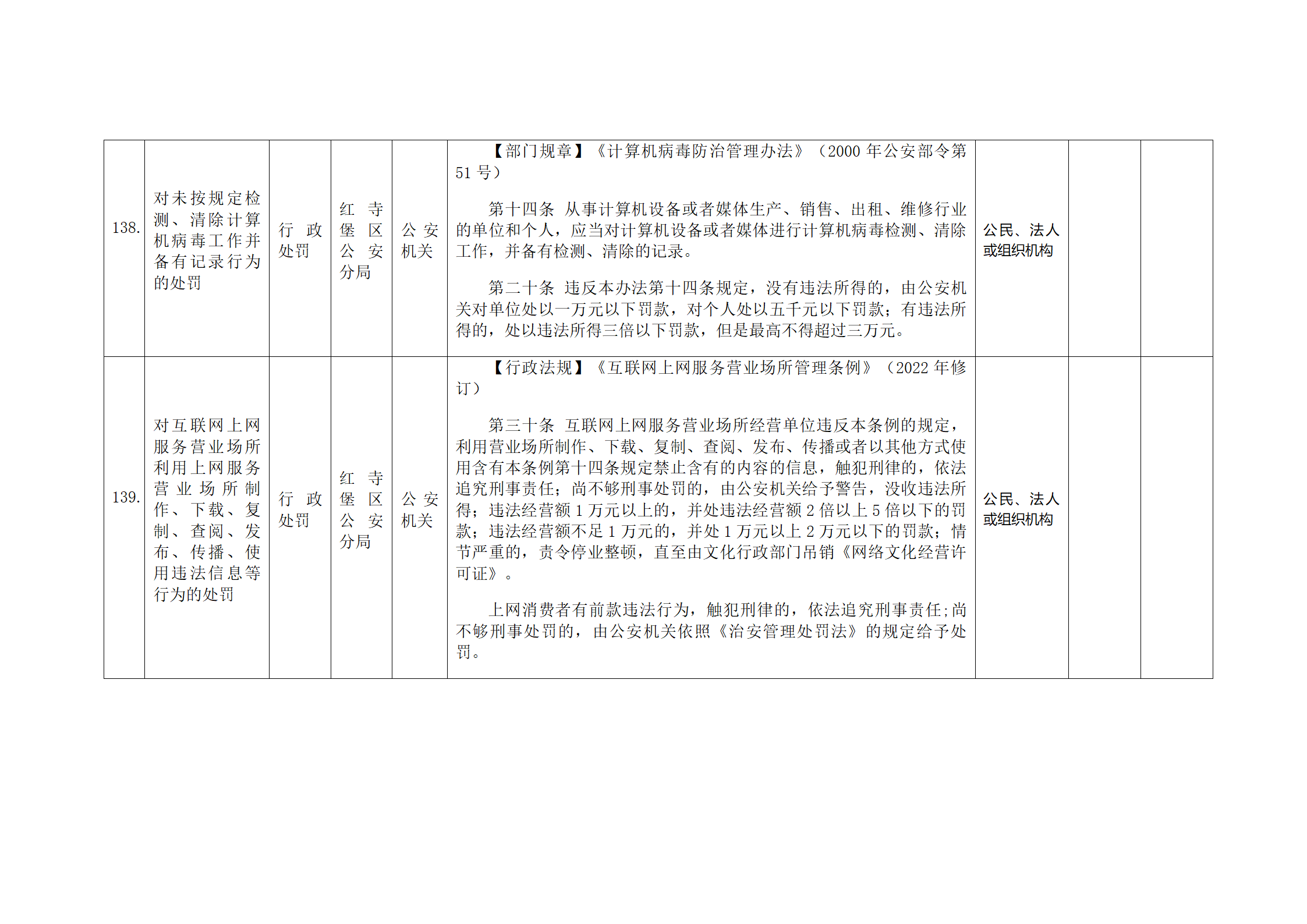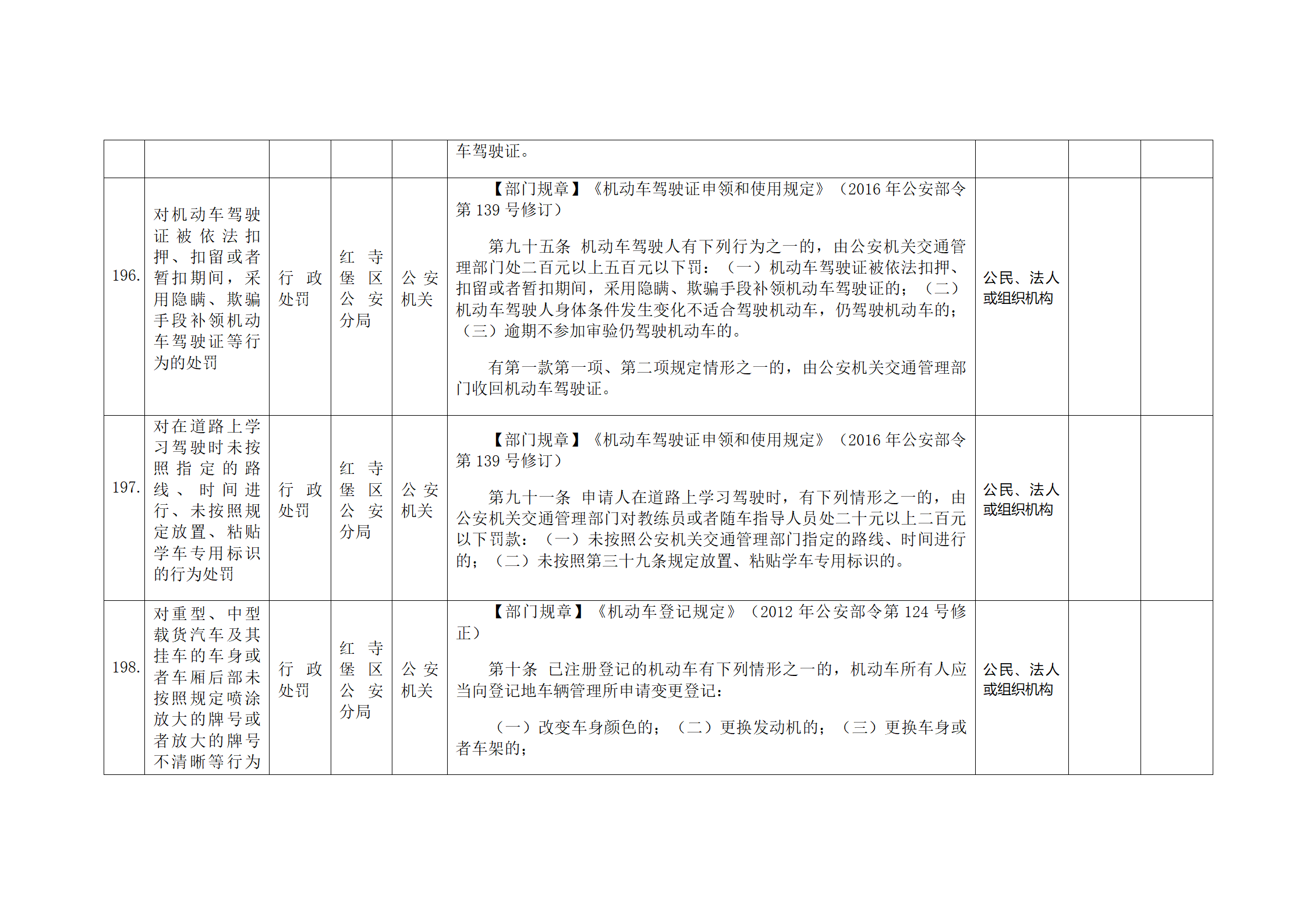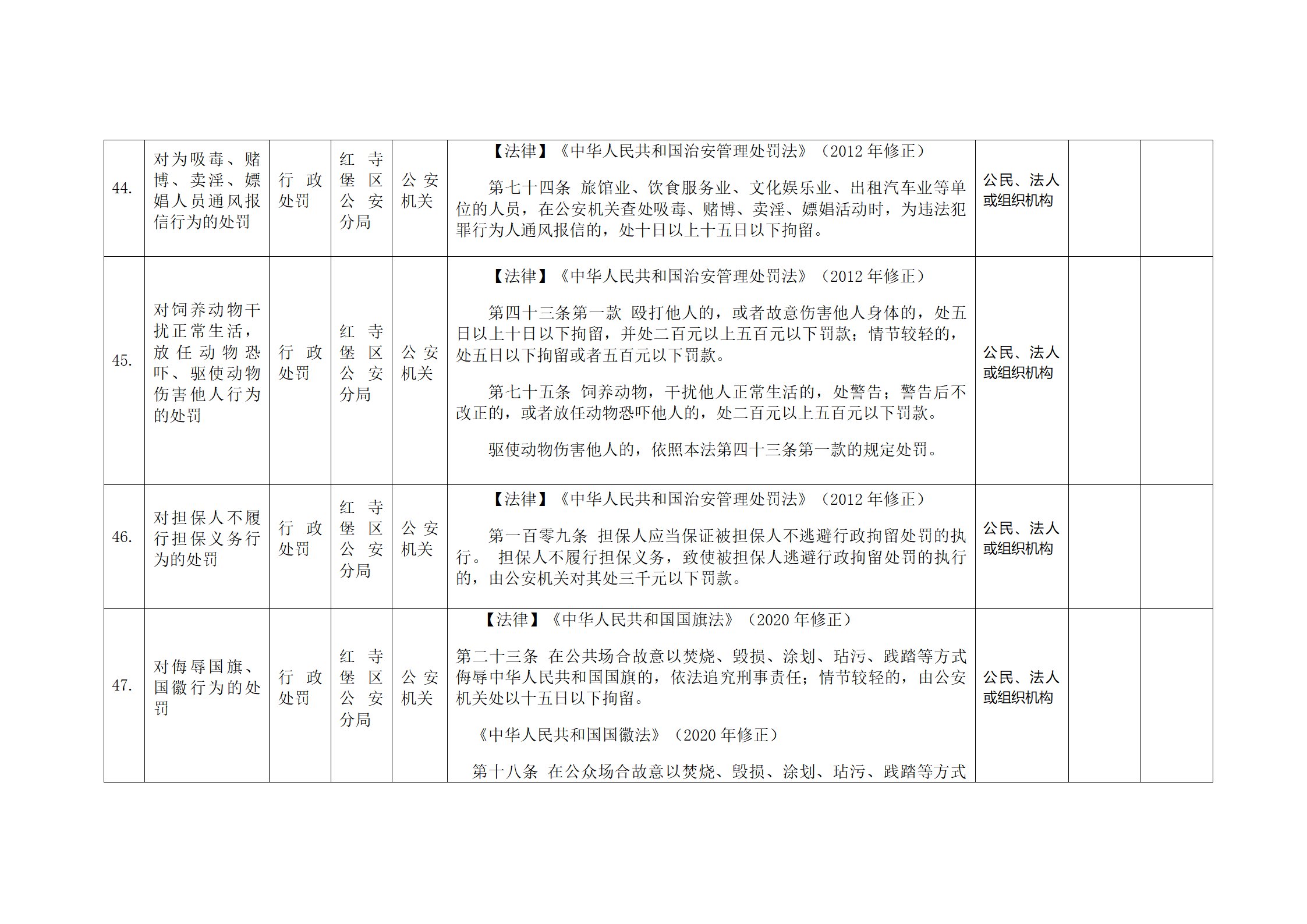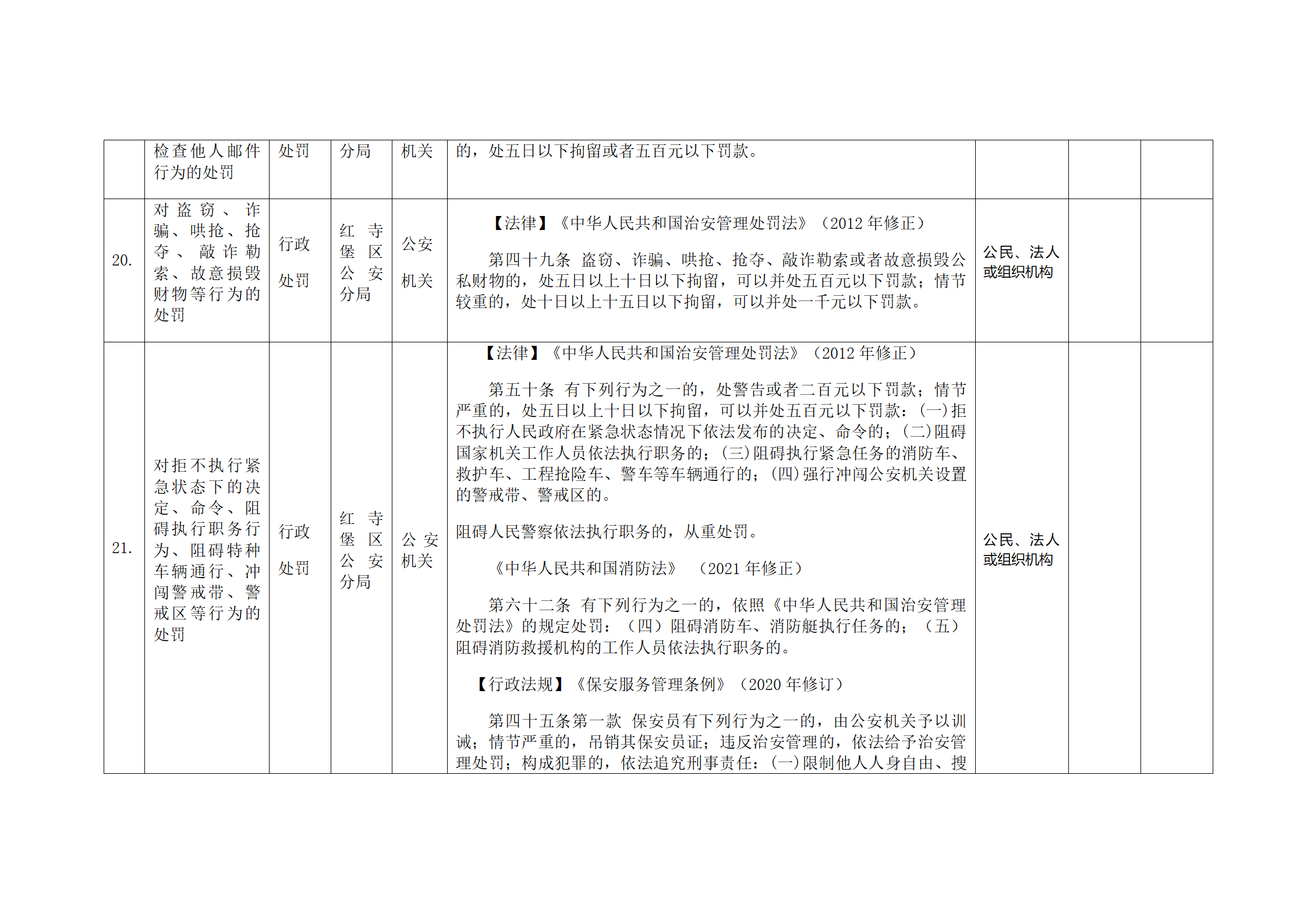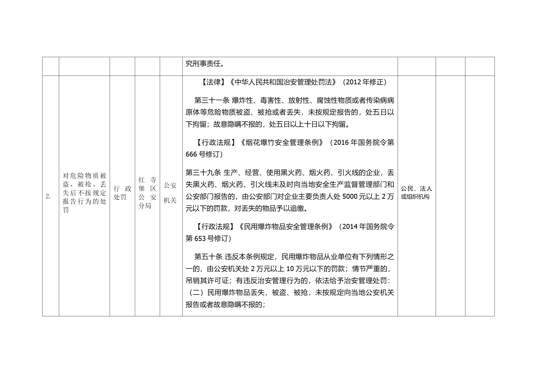 红寺堡区公安分局行政处罚事项清单