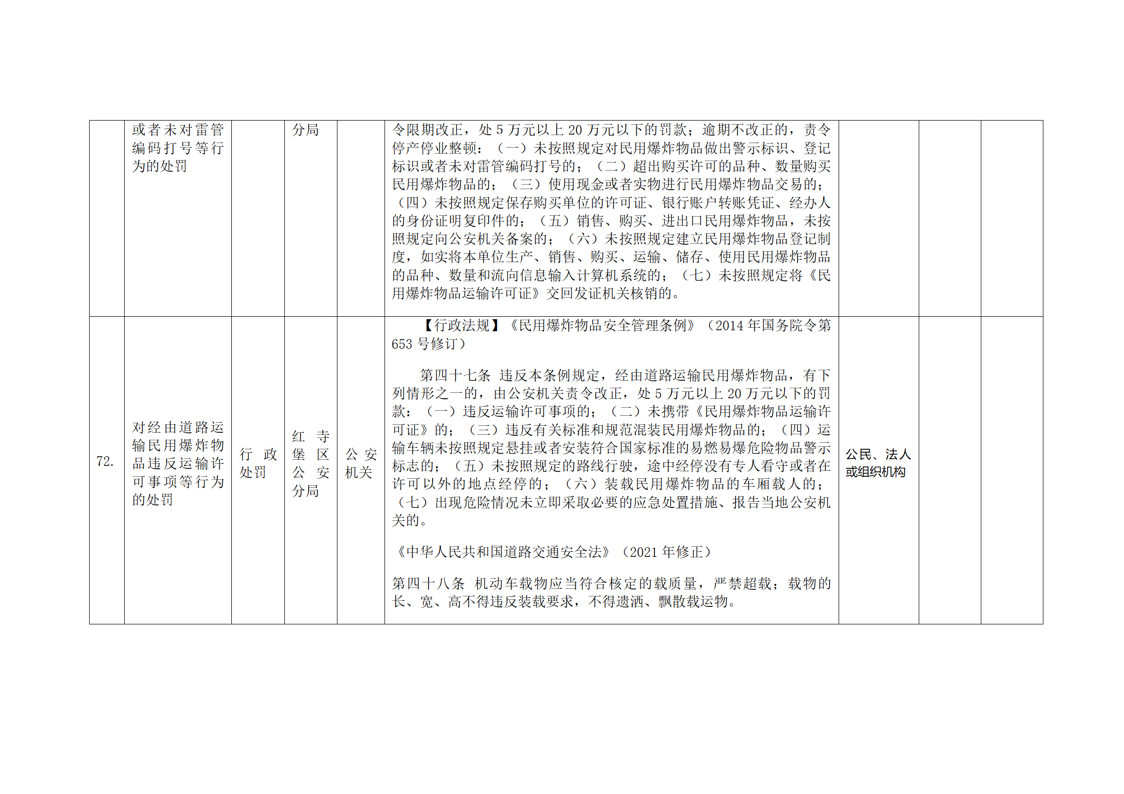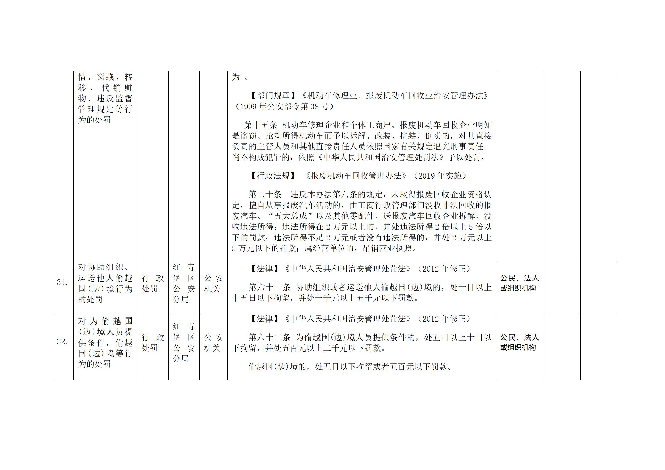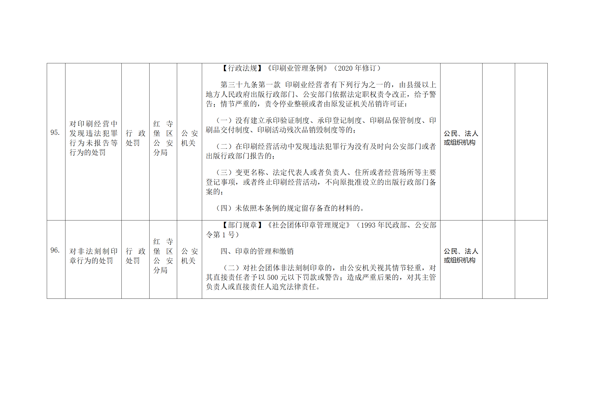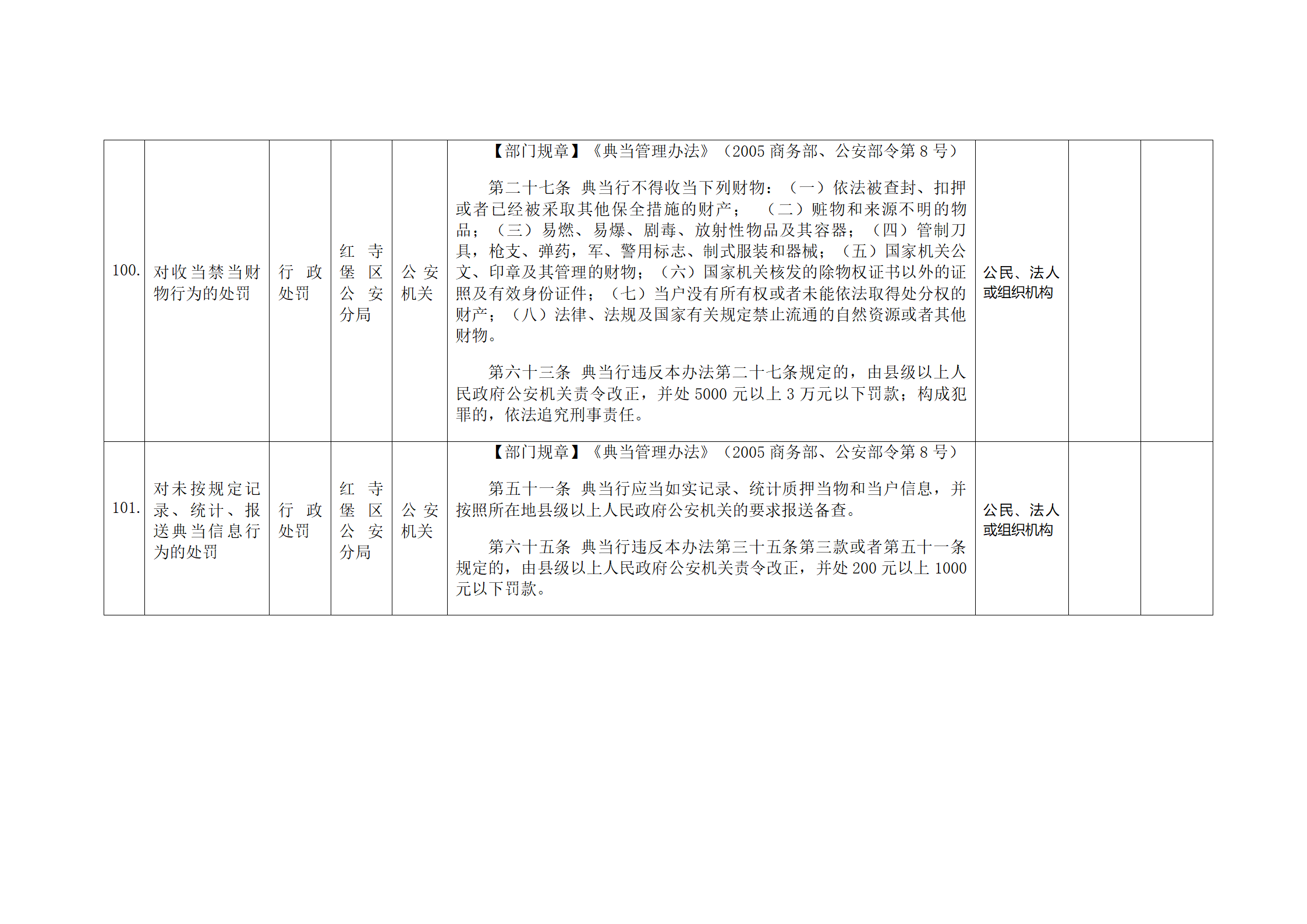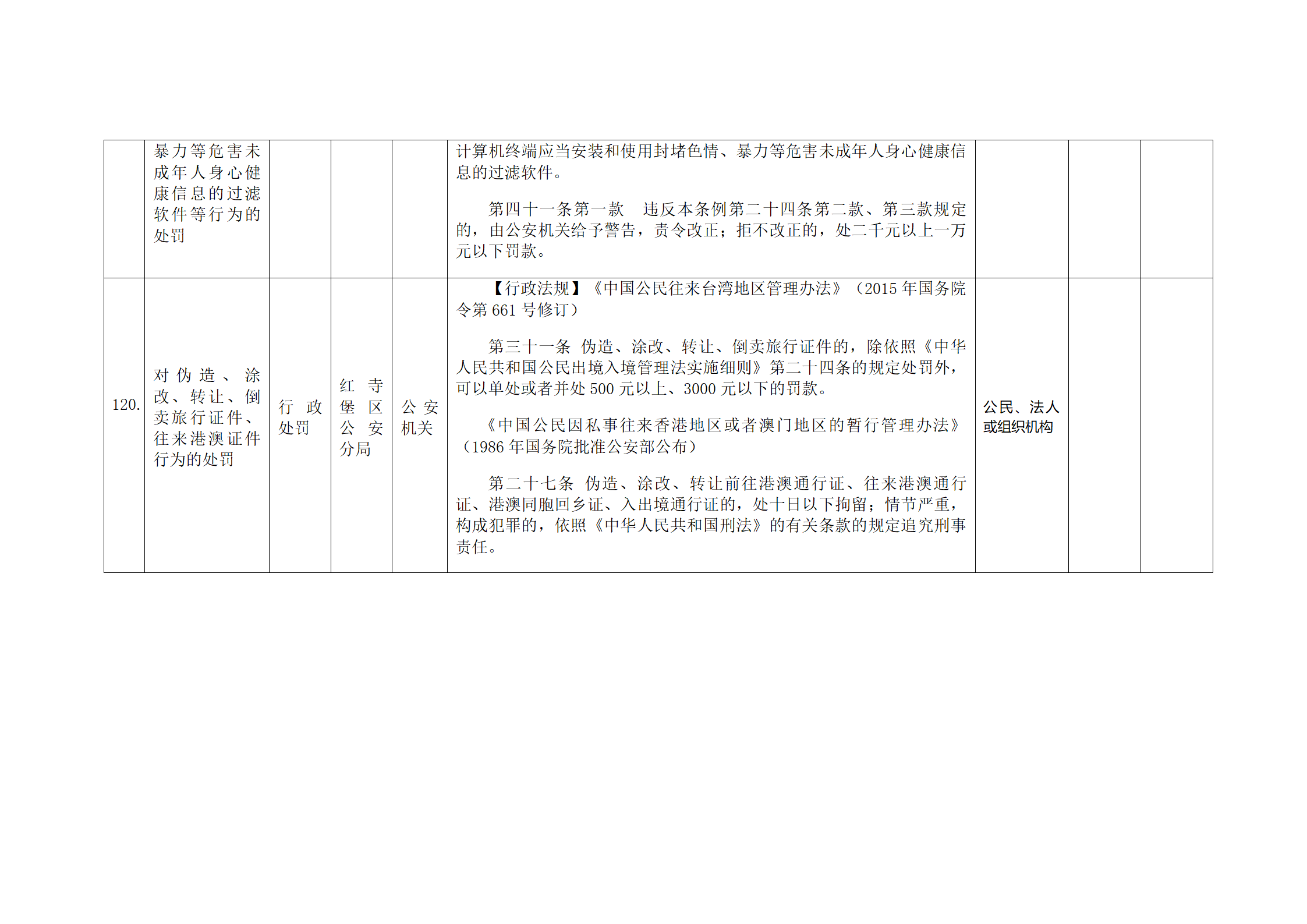 红寺堡区公安分局行政处罚事项清单