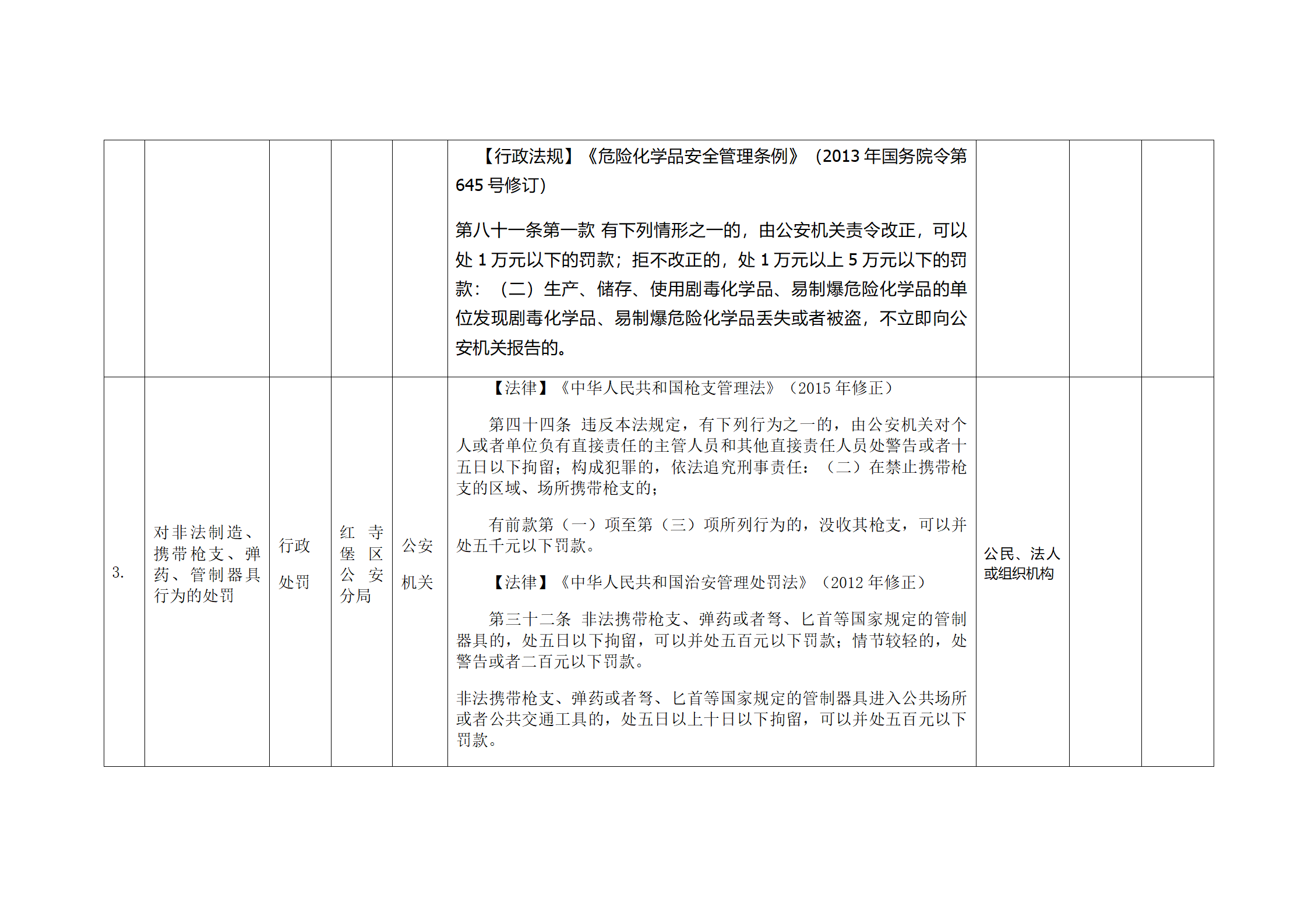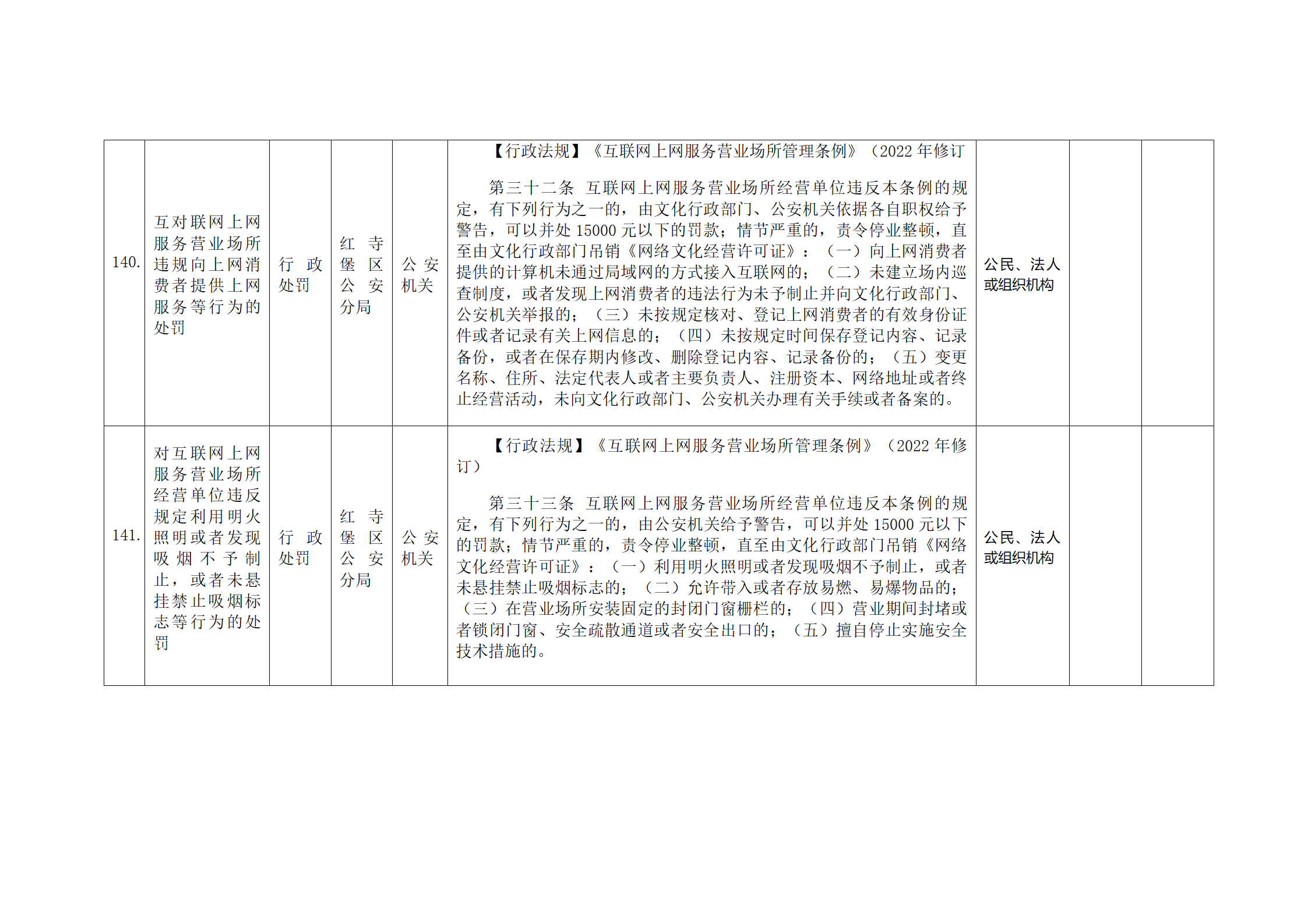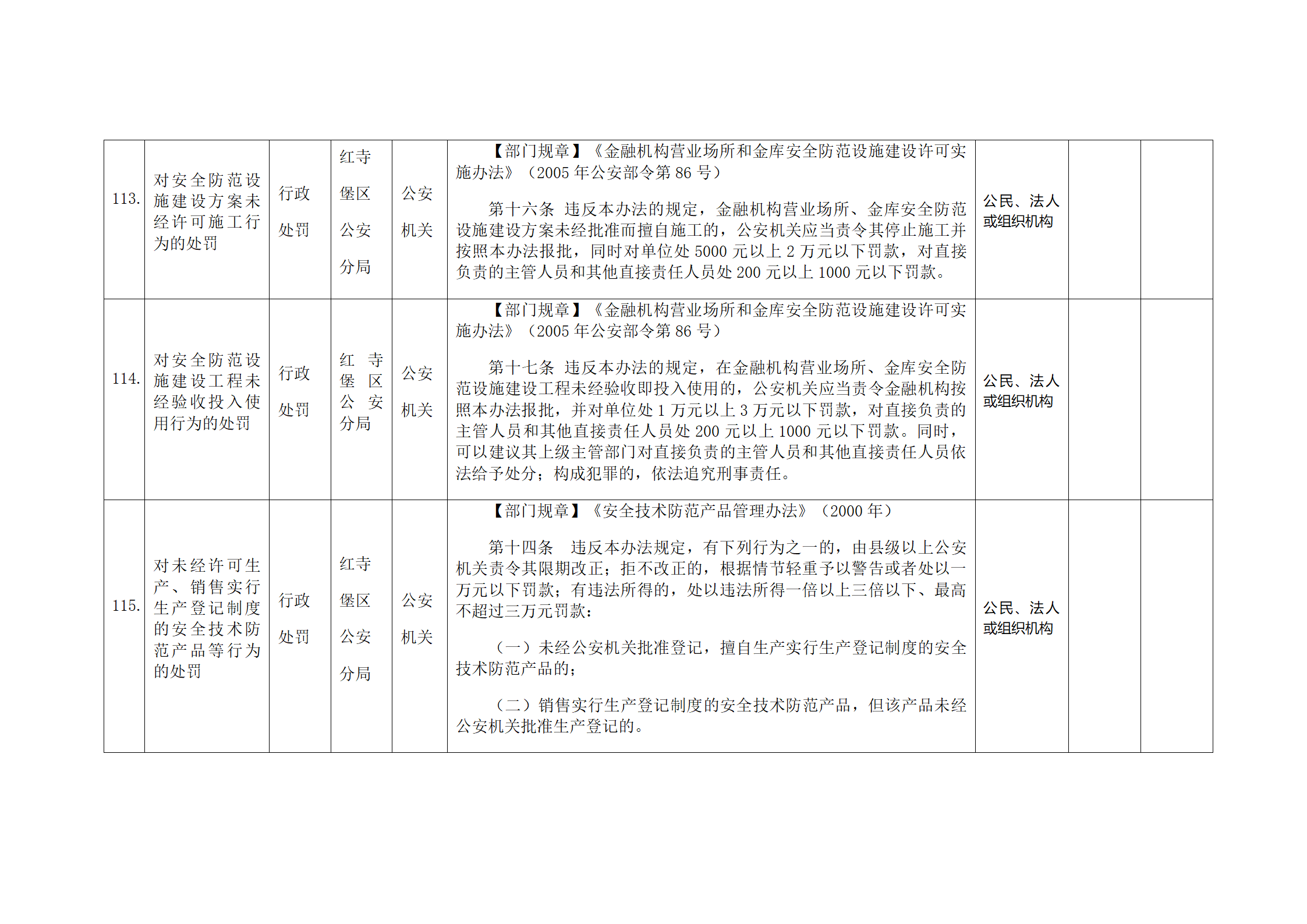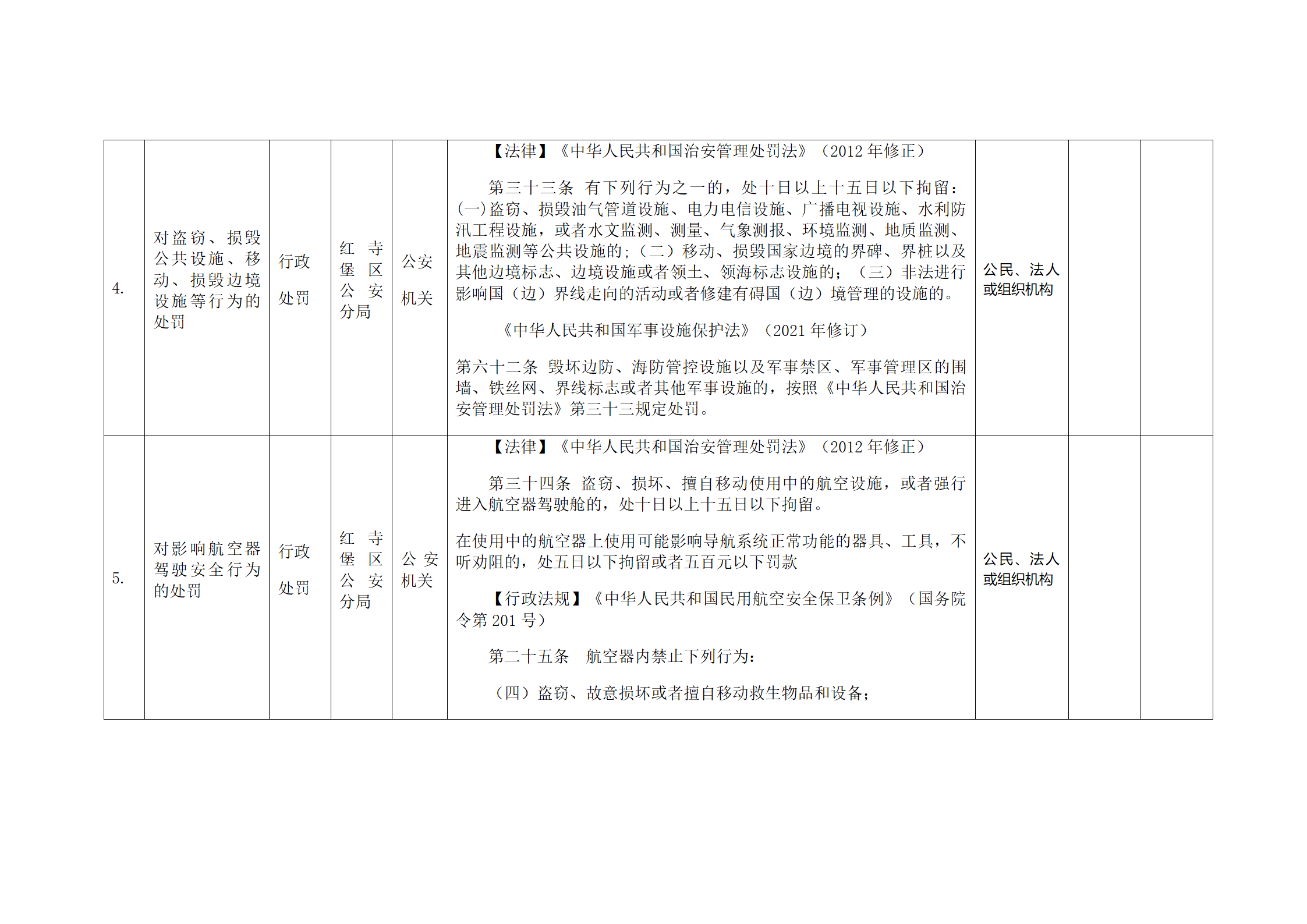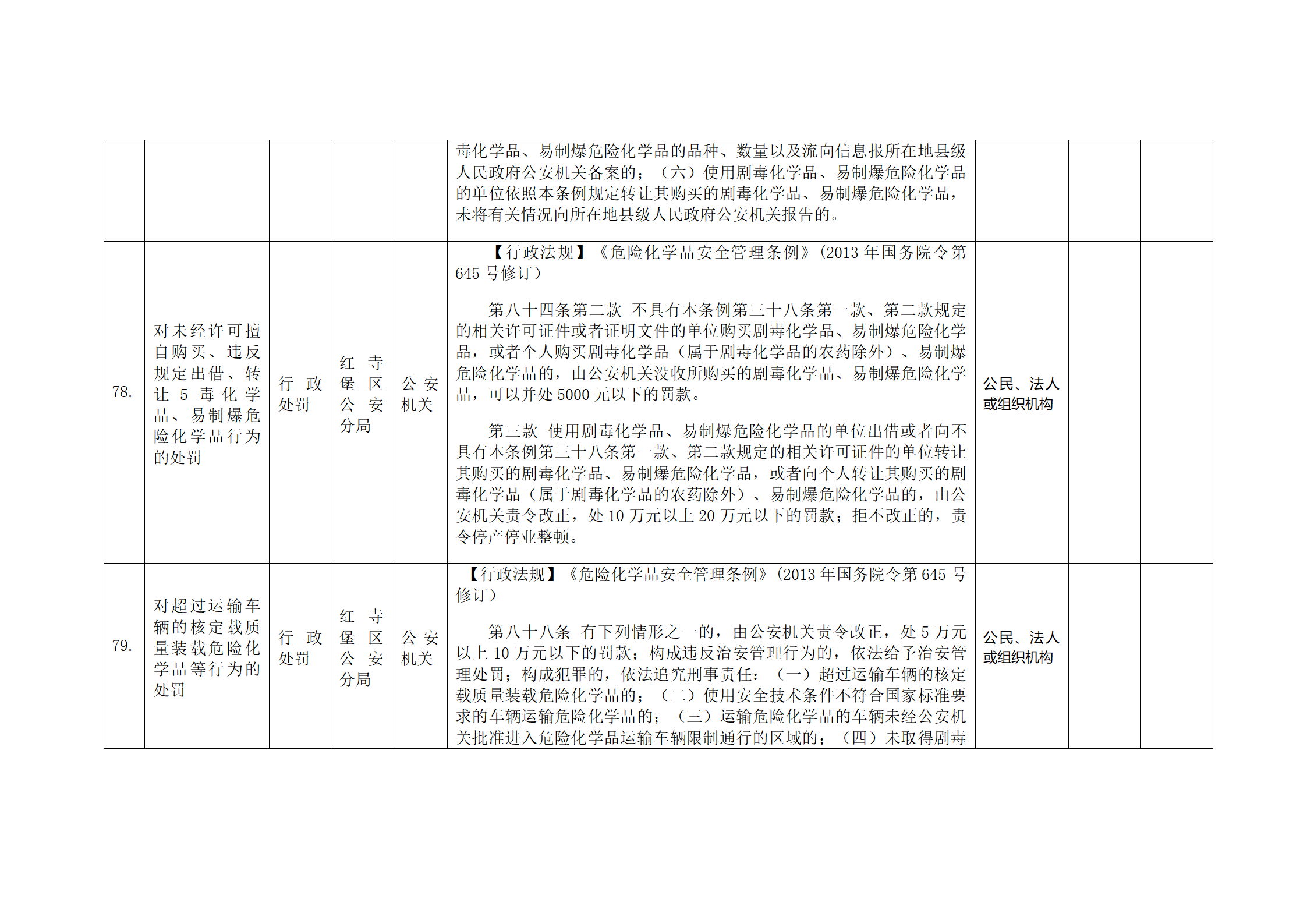 红寺堡区公安分局行政处罚事项清单