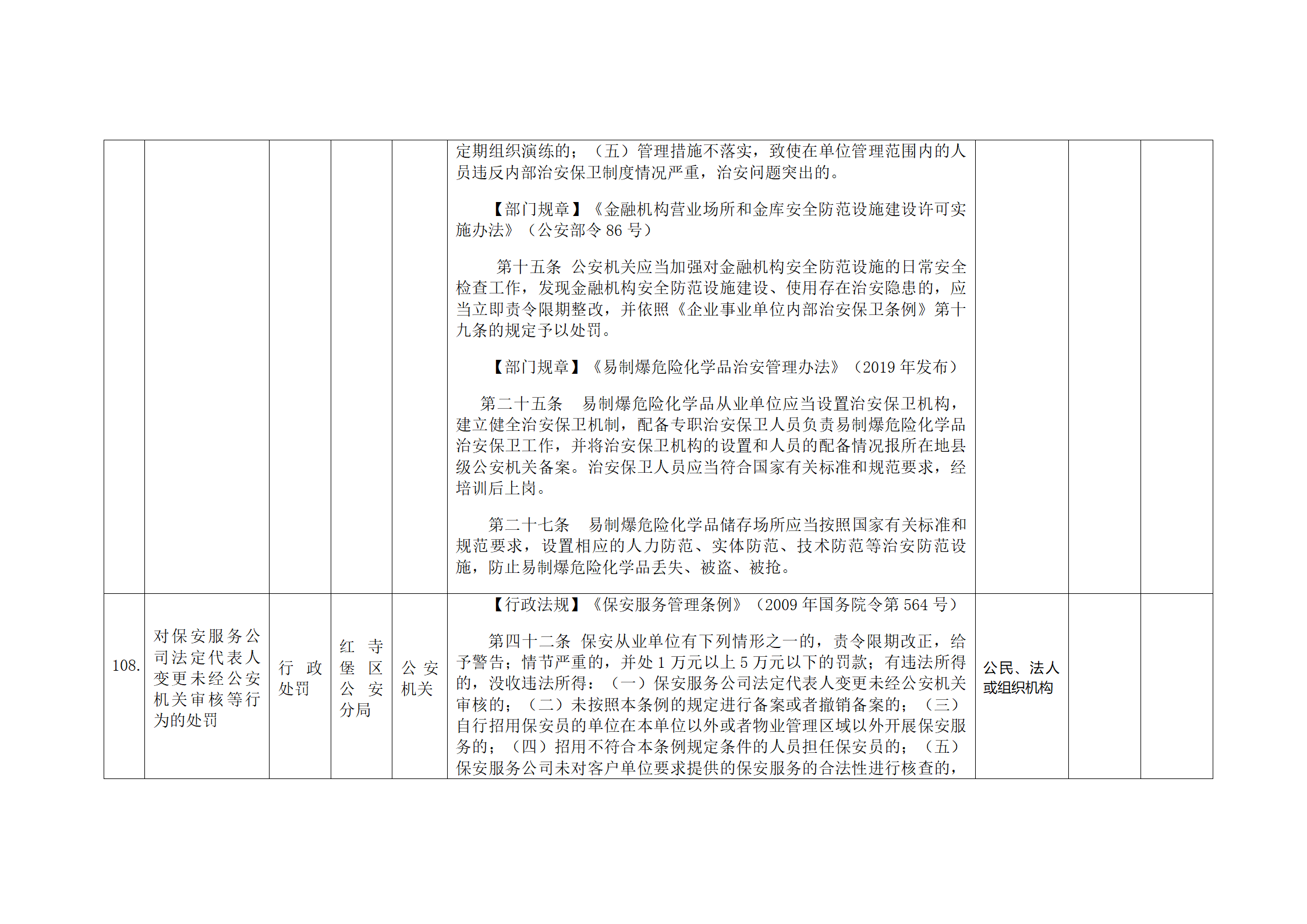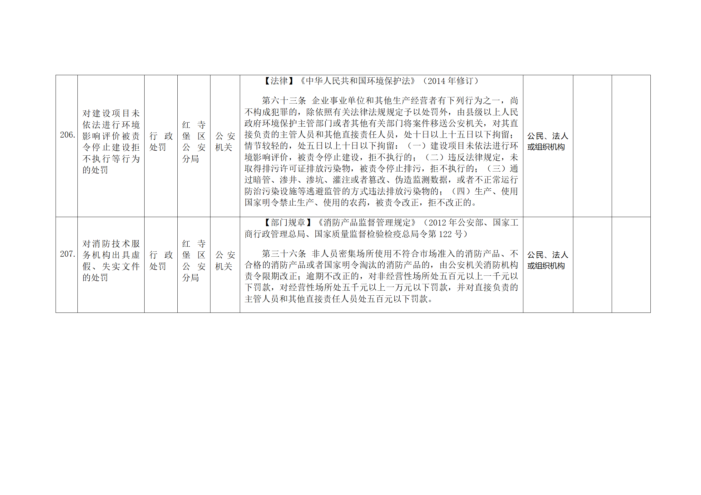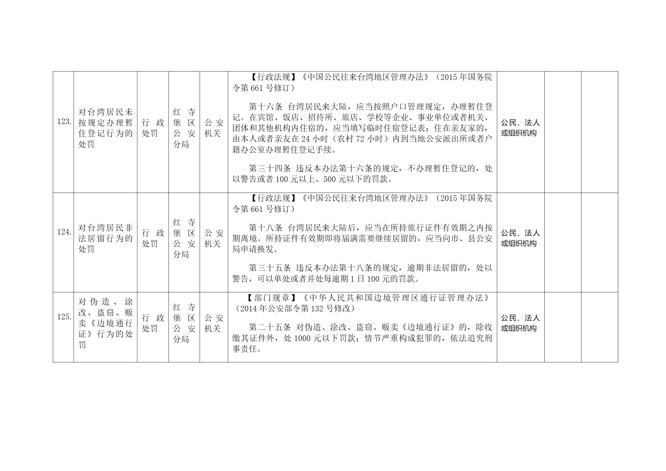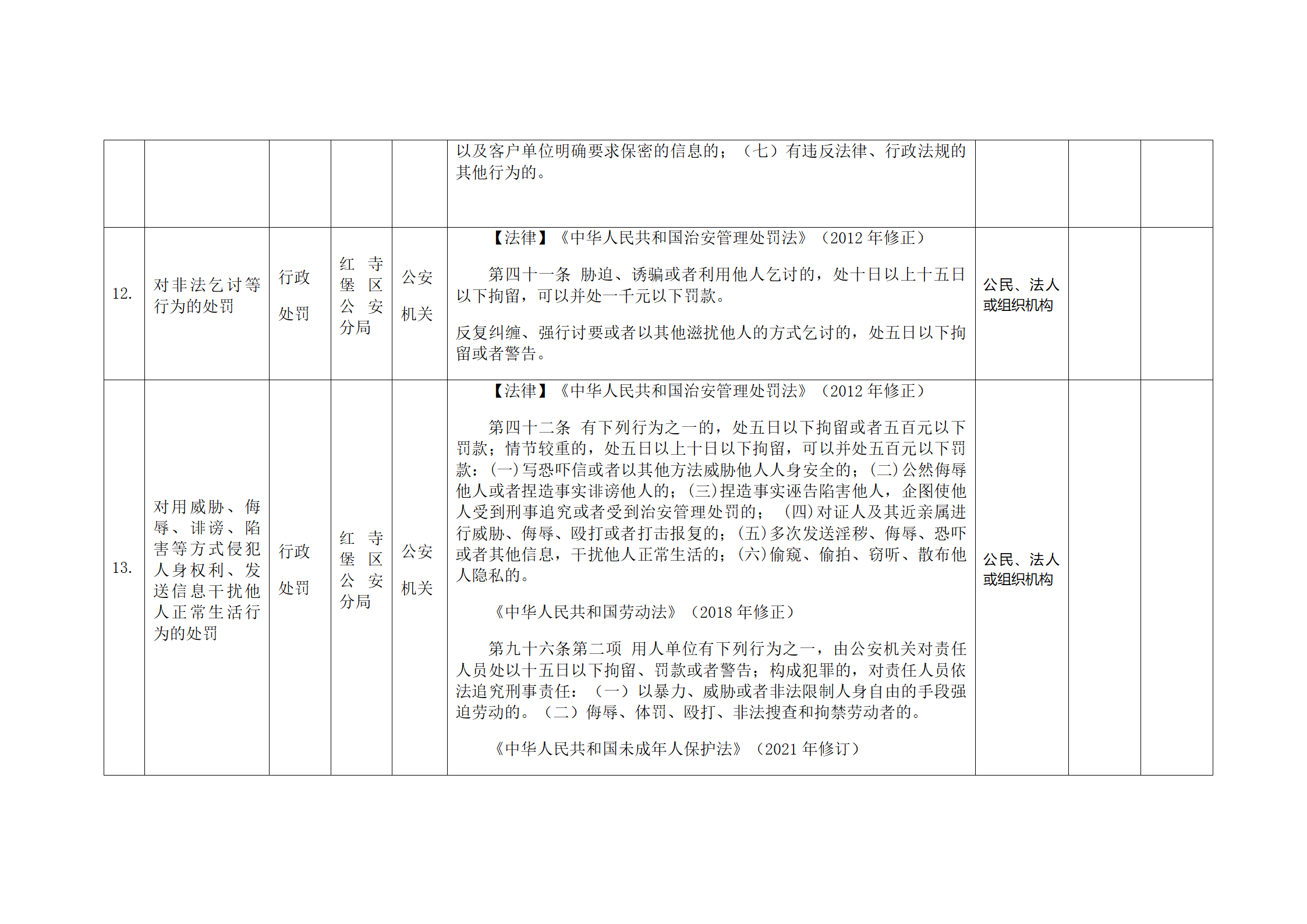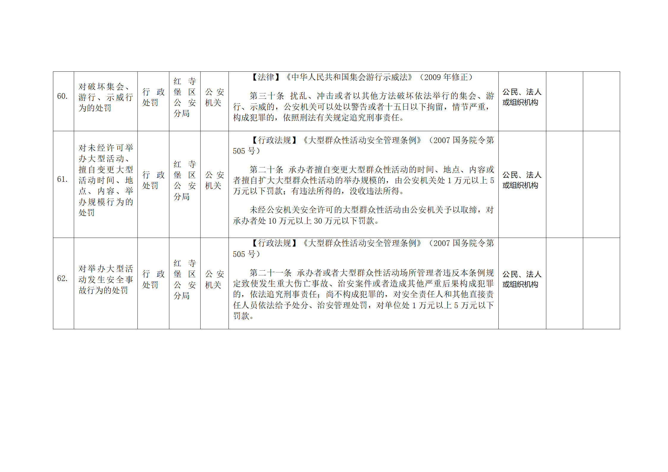 红寺堡区公安分局行政处罚事项清单