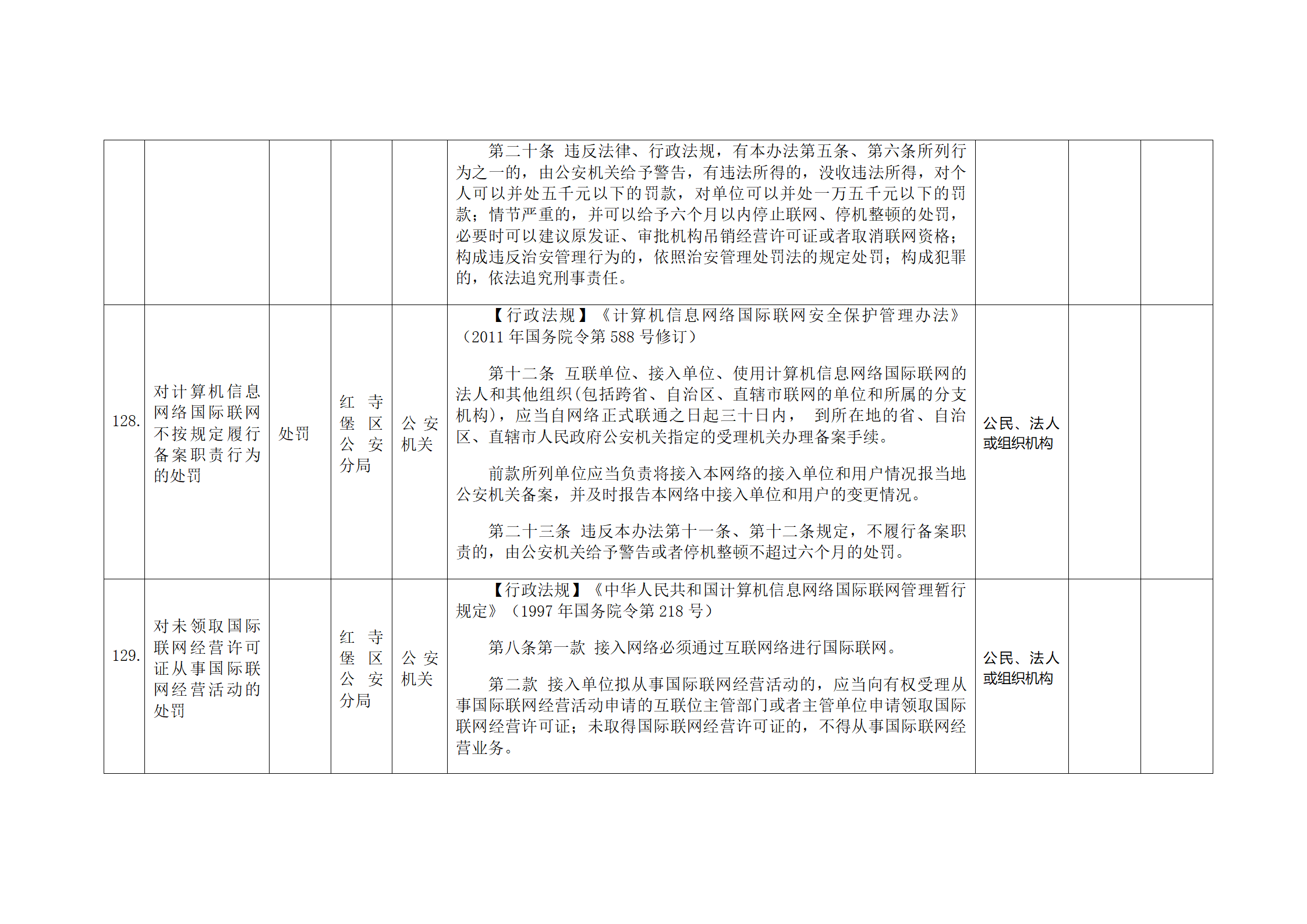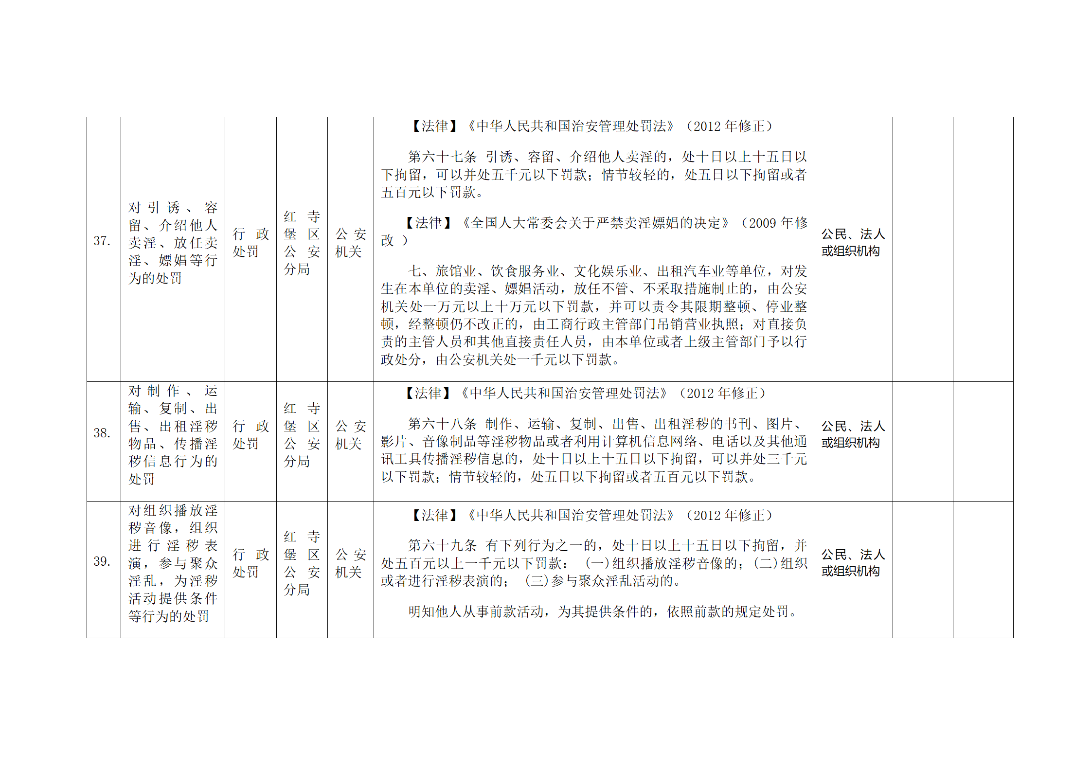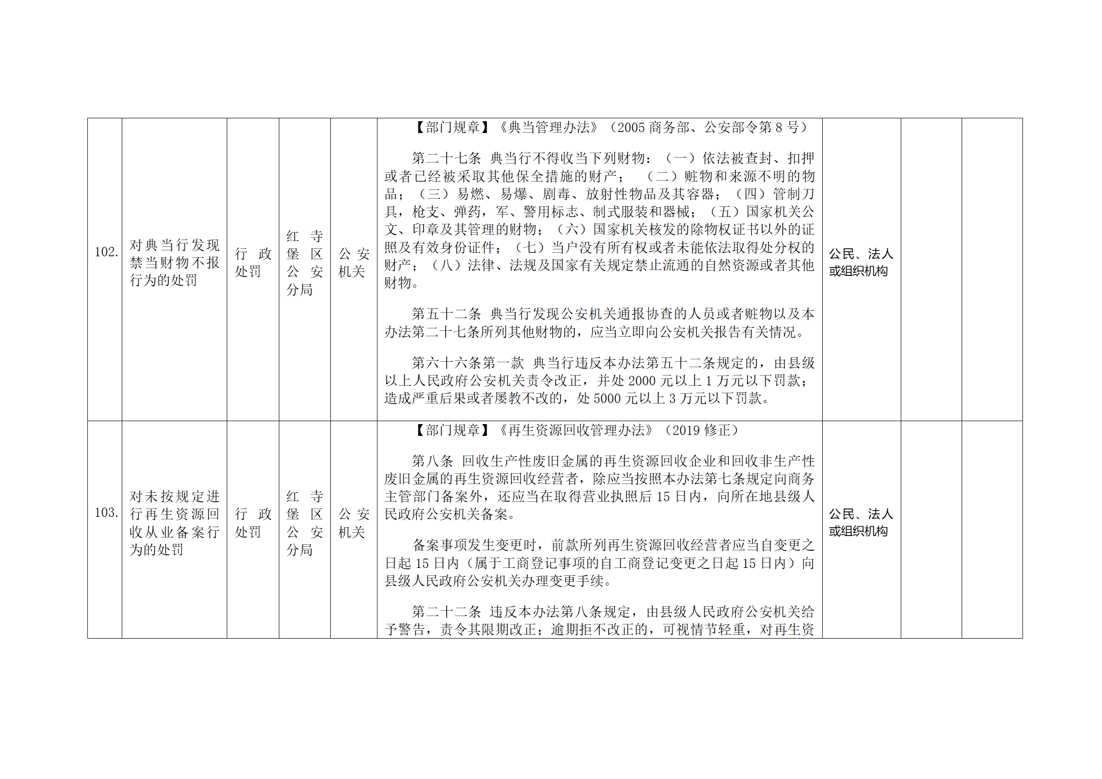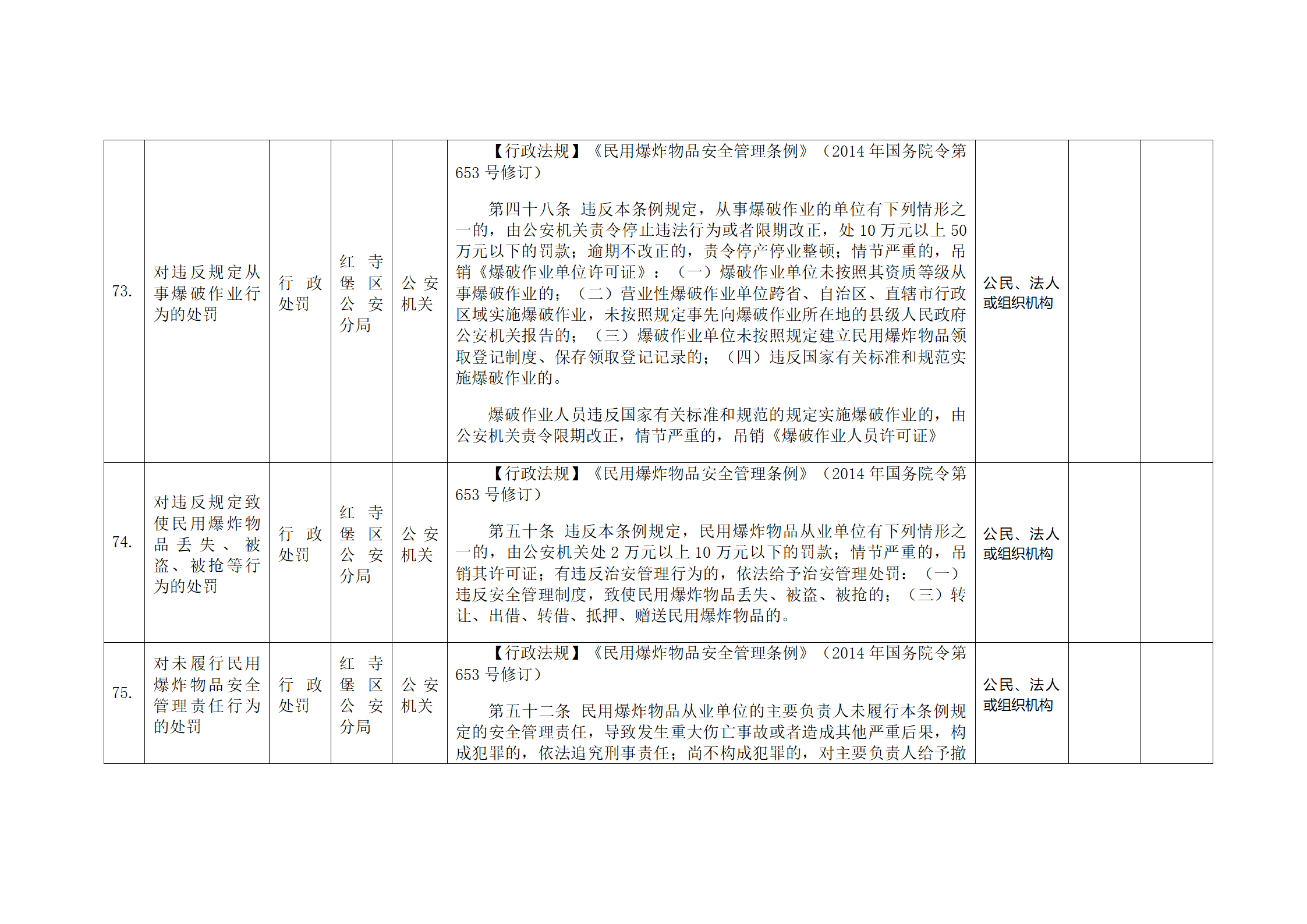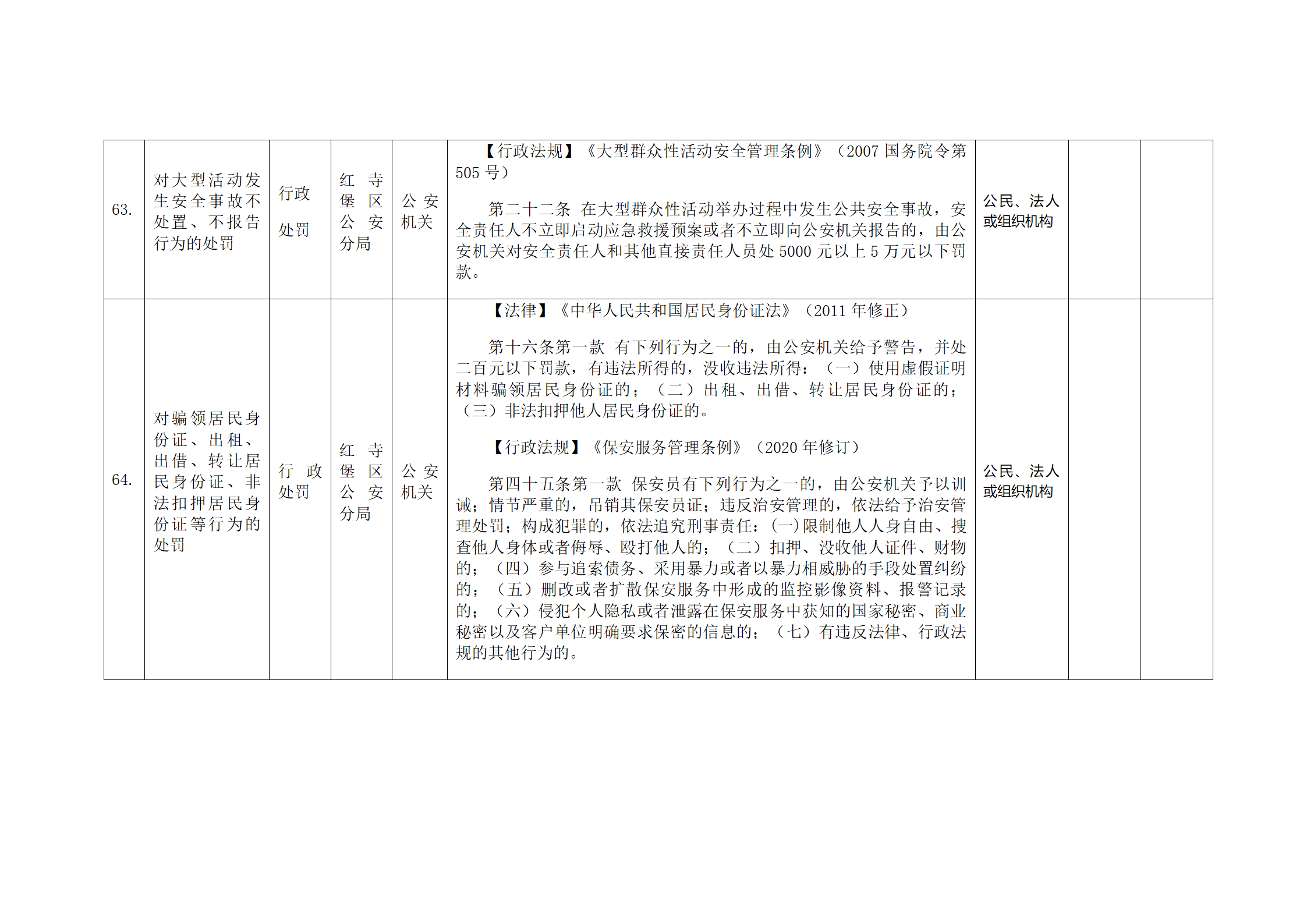 红寺堡区公安分局行政处罚事项清单