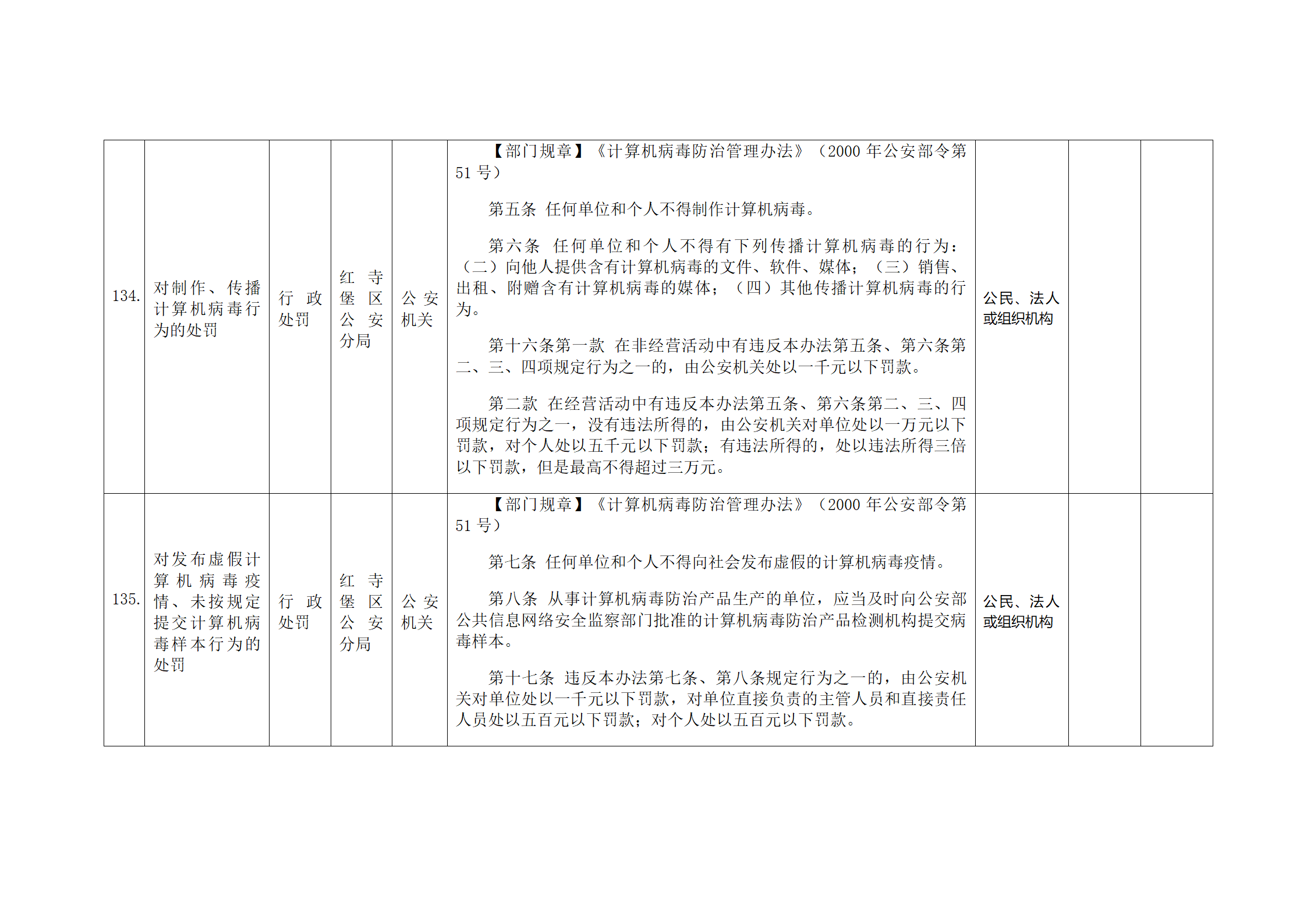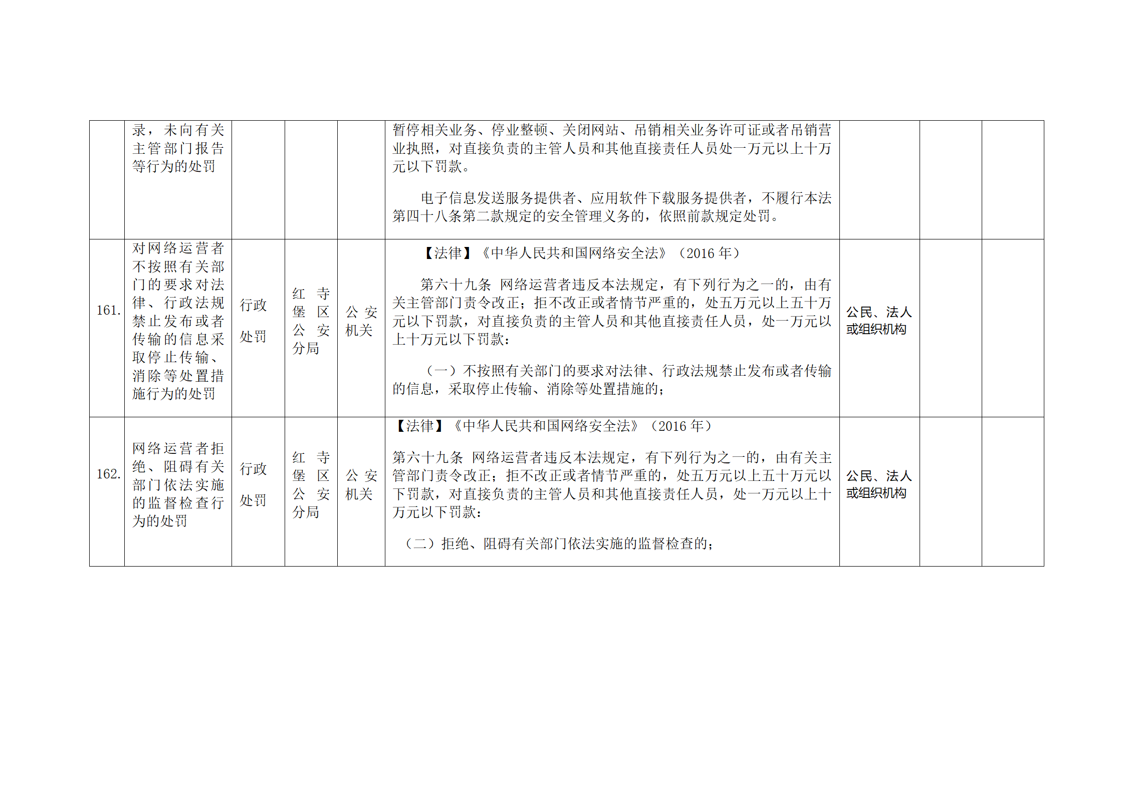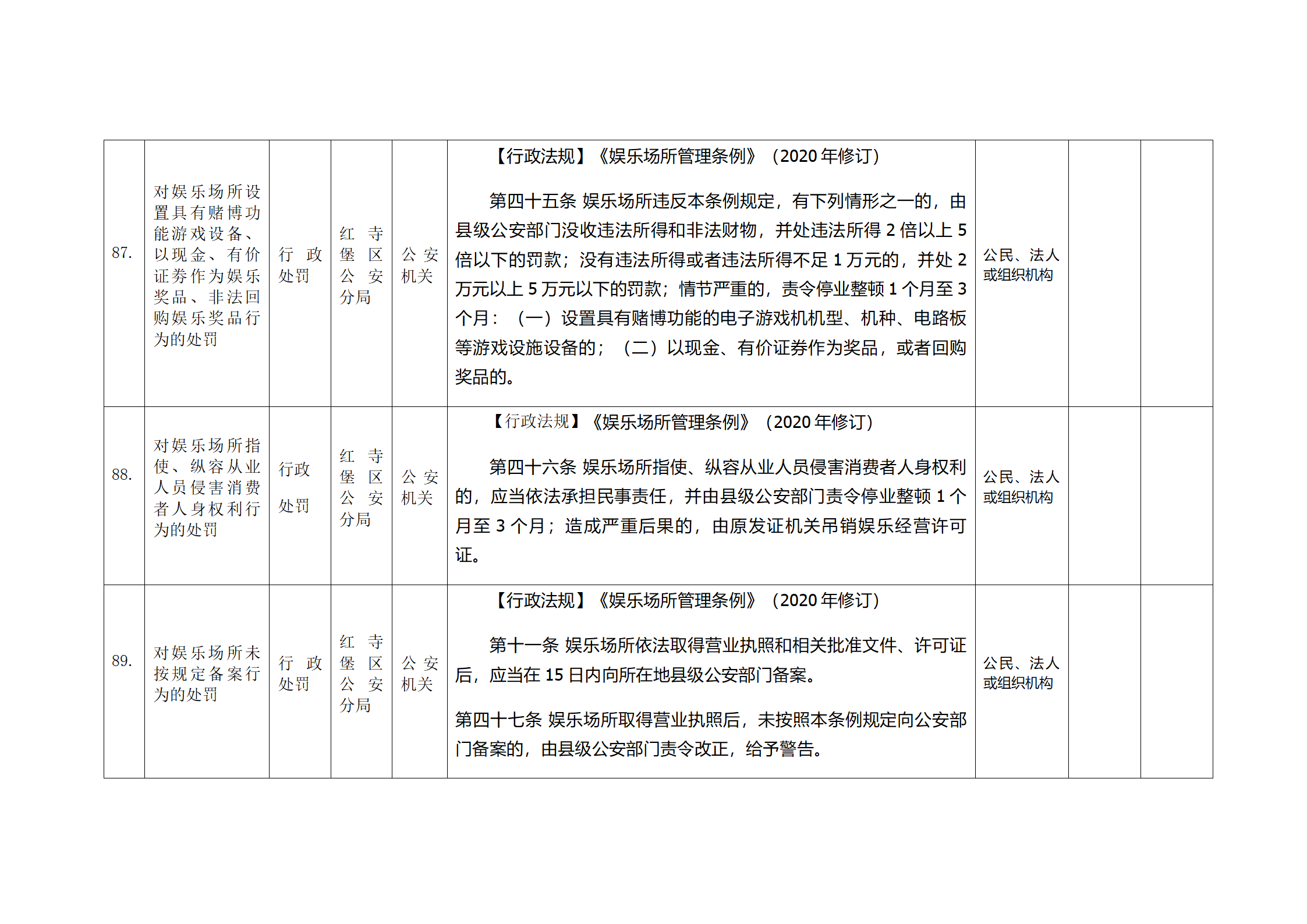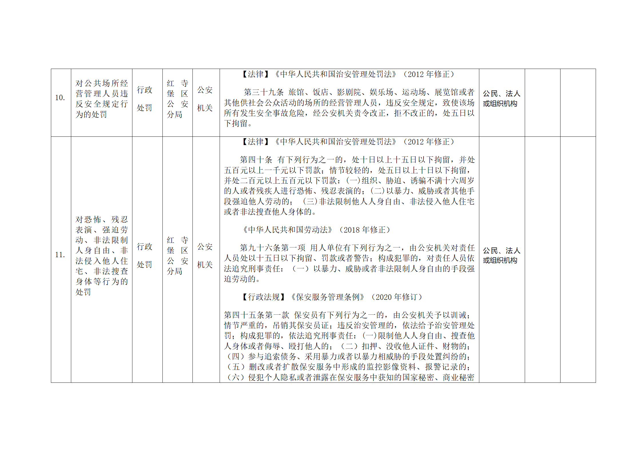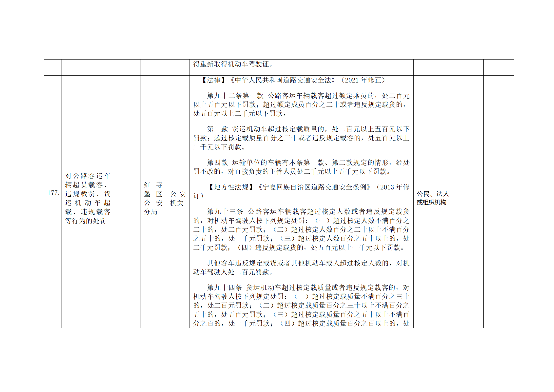 红寺堡区公安分局行政处罚事项清单