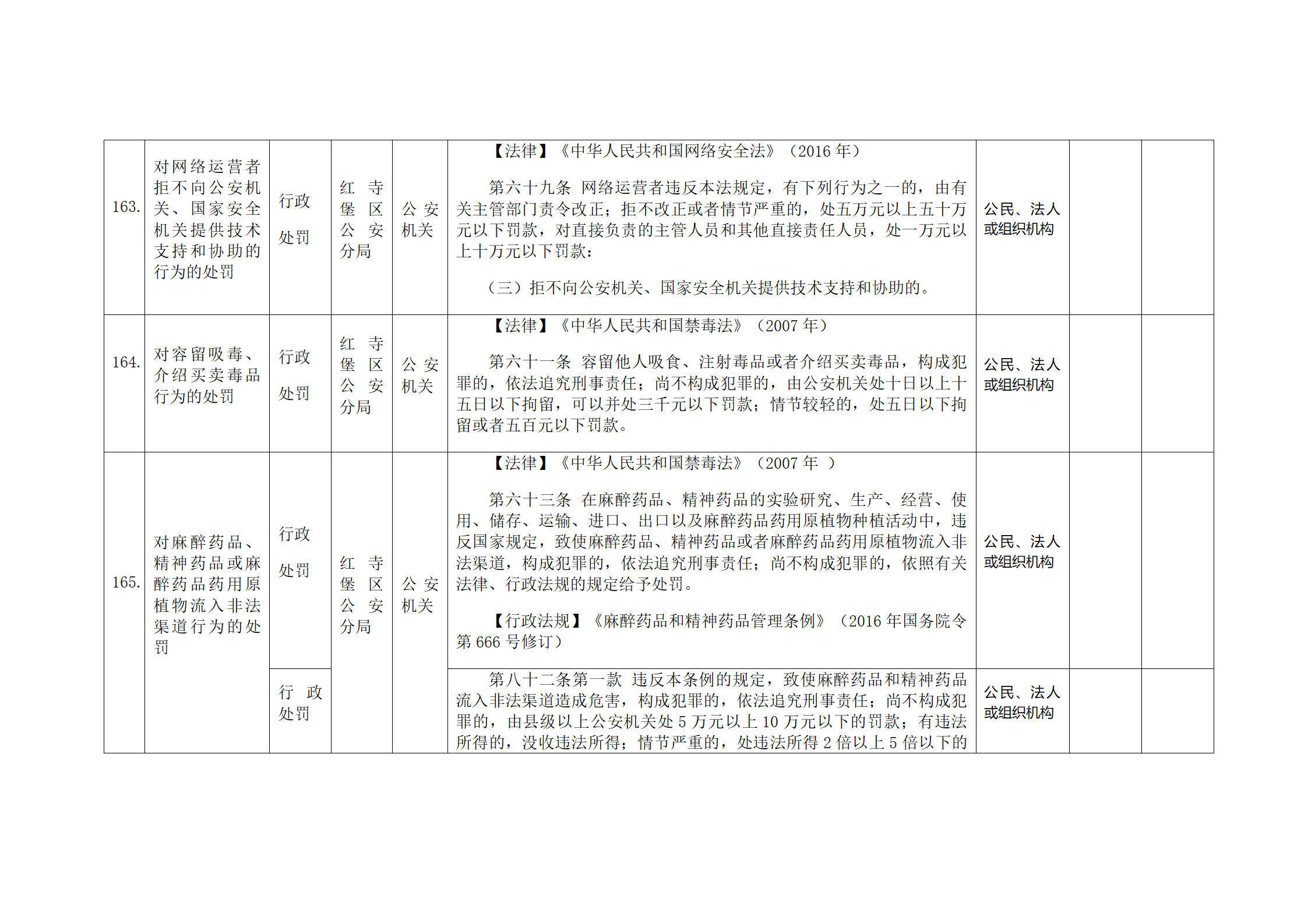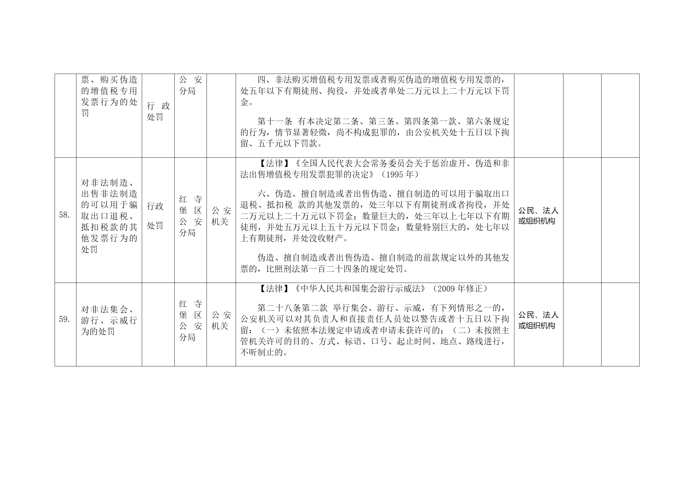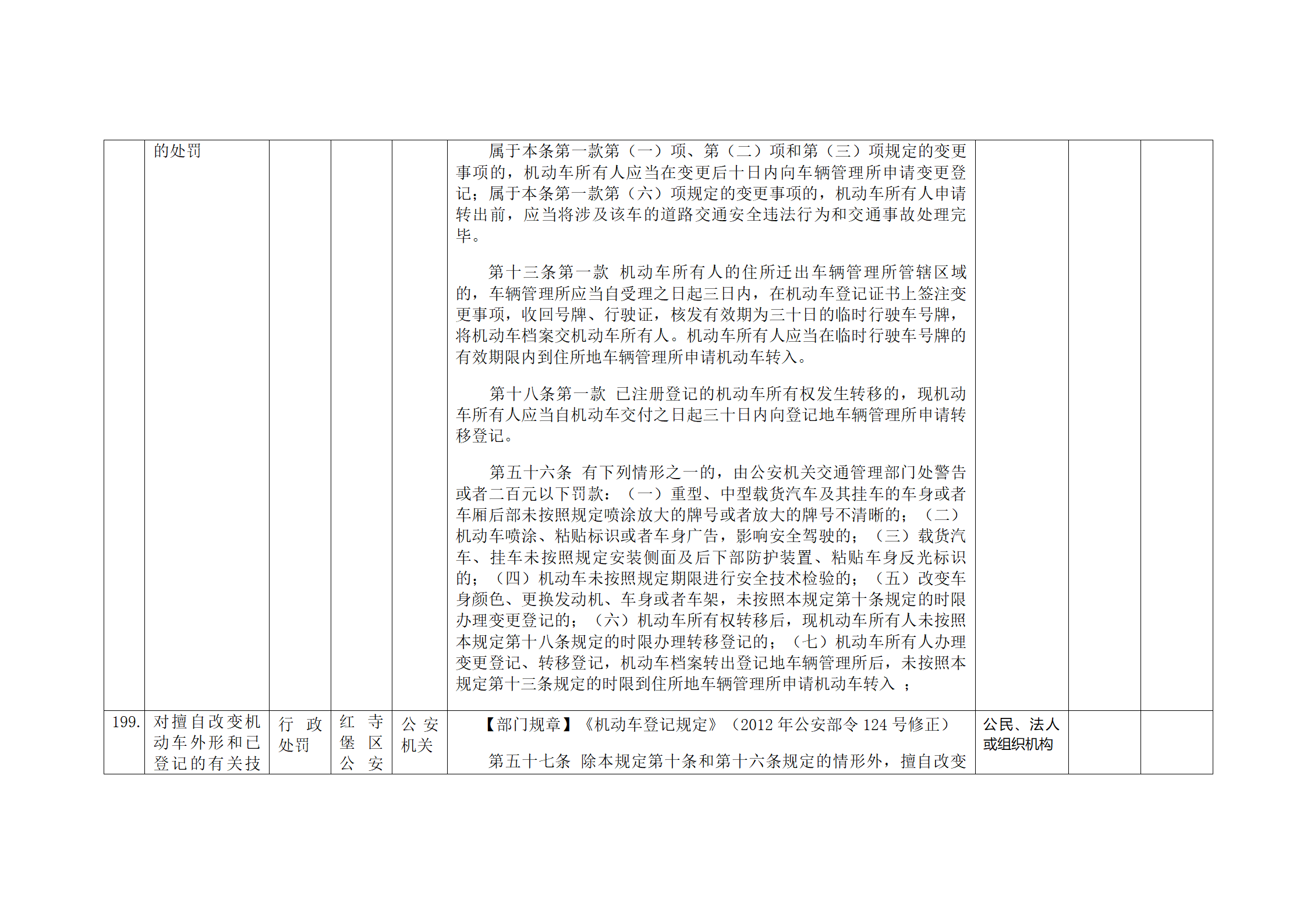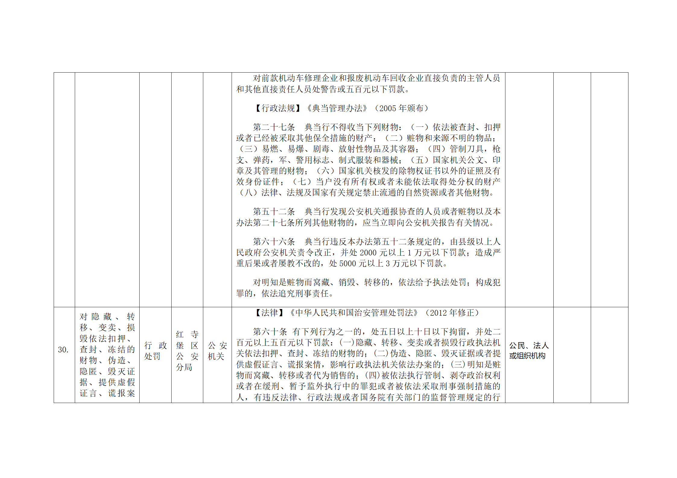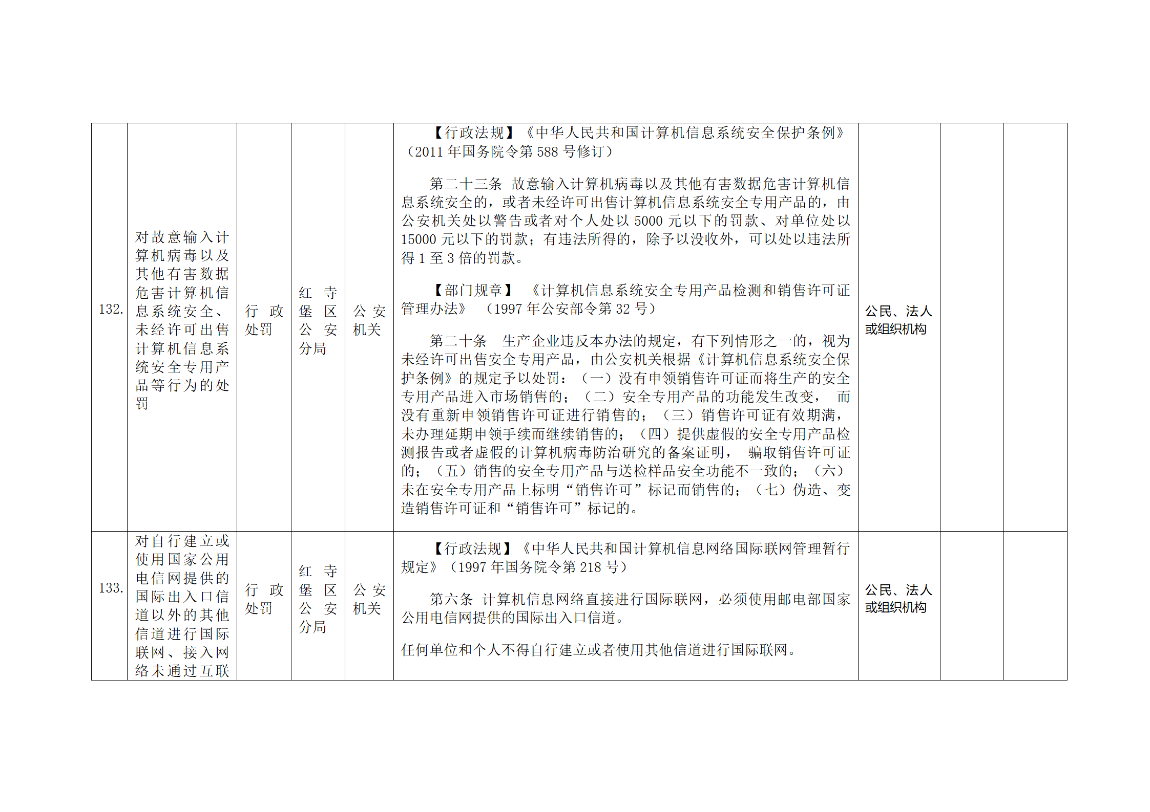 红寺堡区公安分局行政处罚事项清单