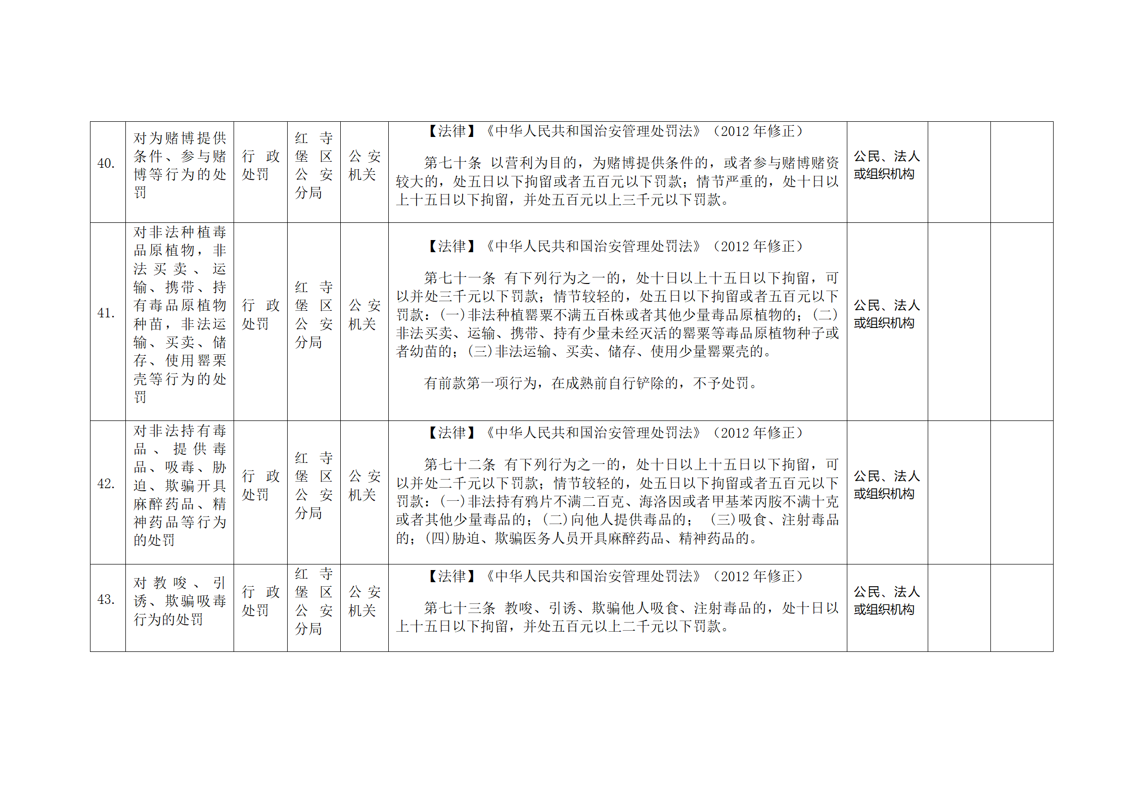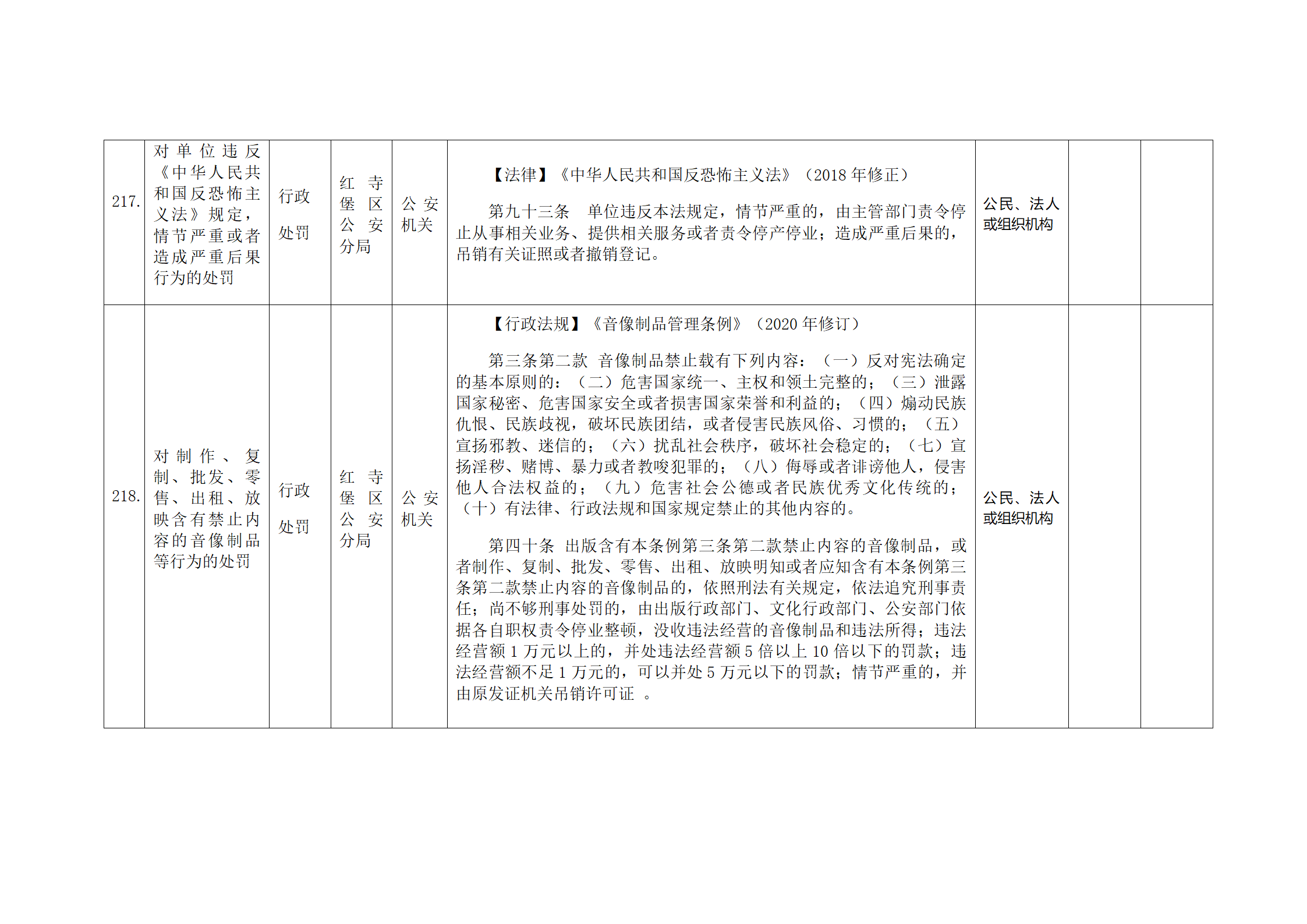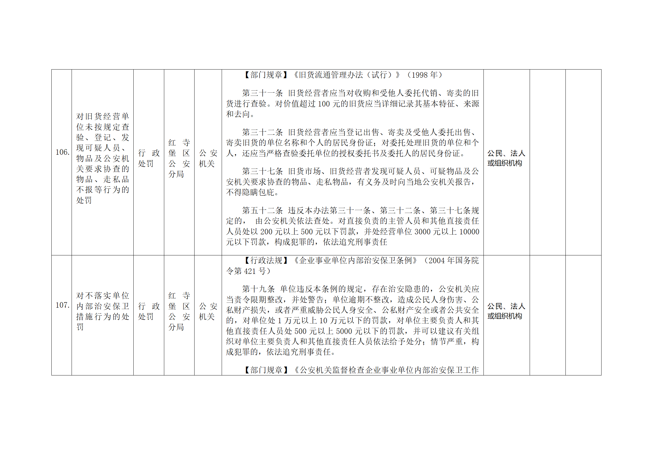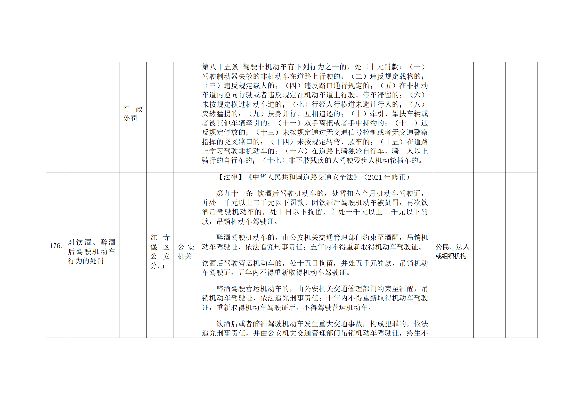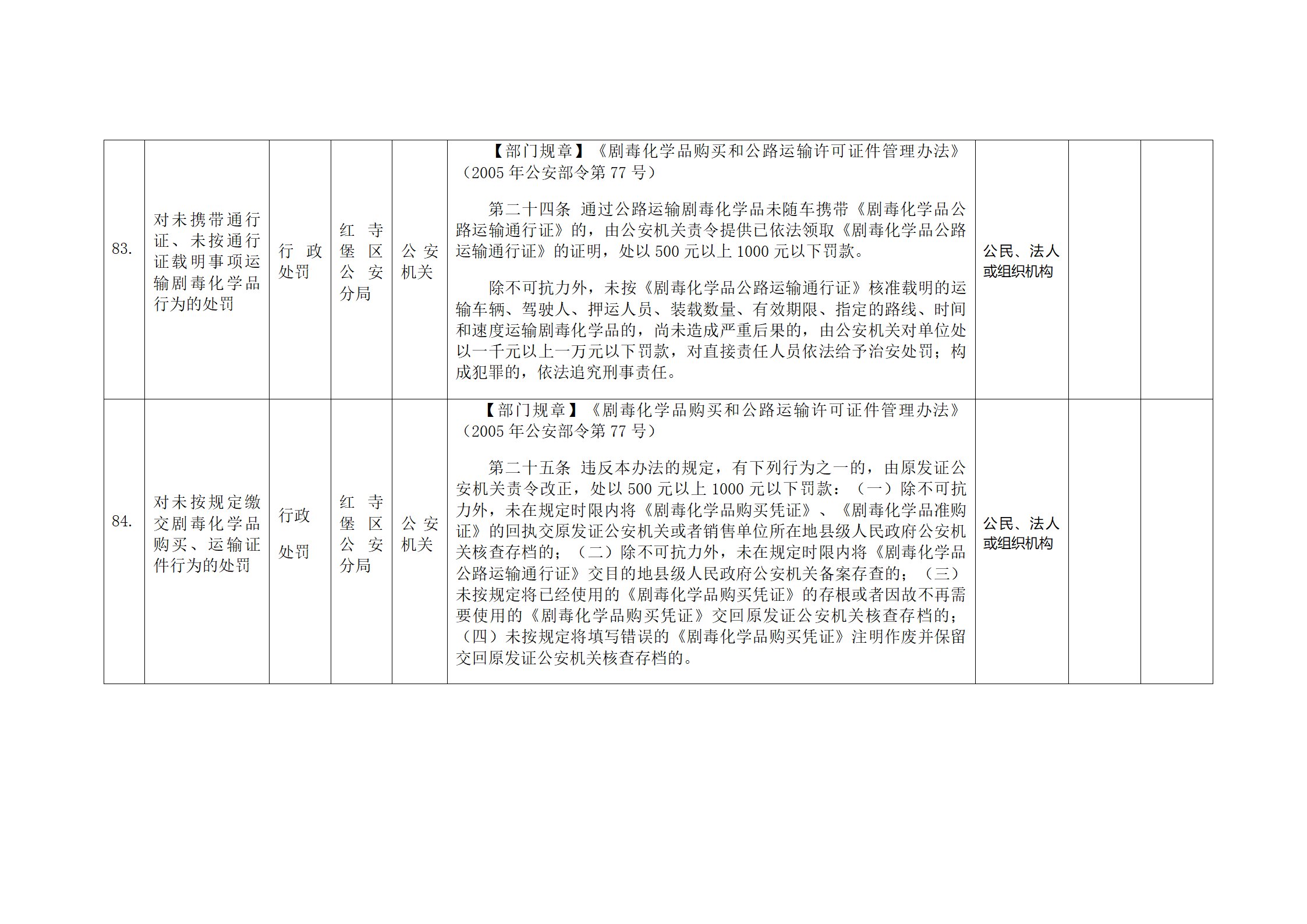 红寺堡区公安分局行政处罚事项清单