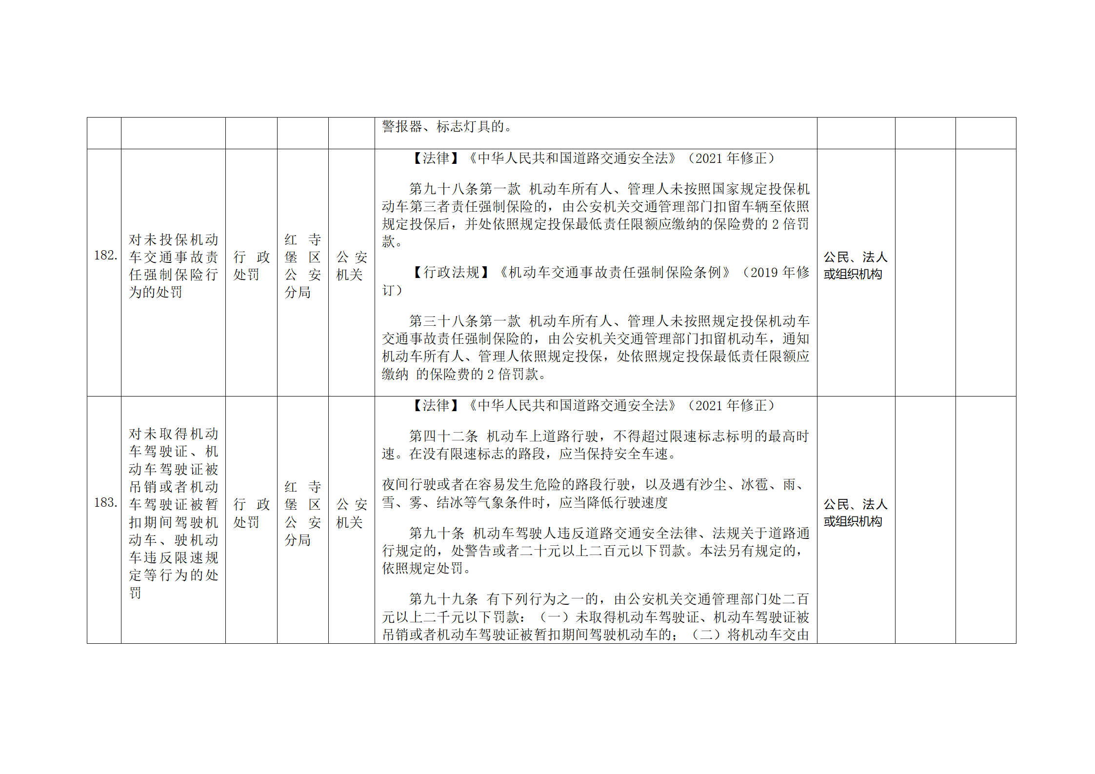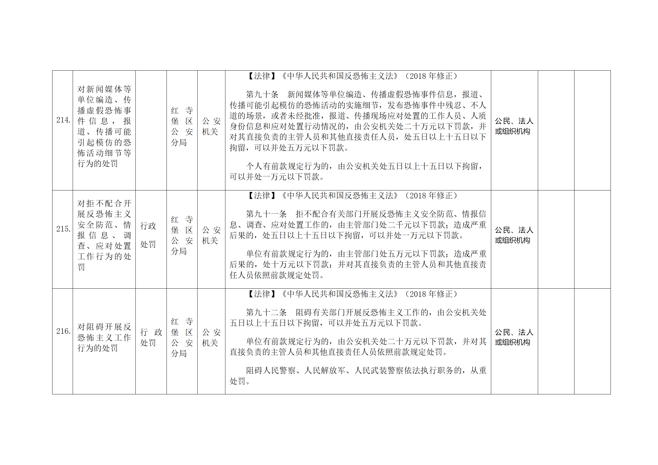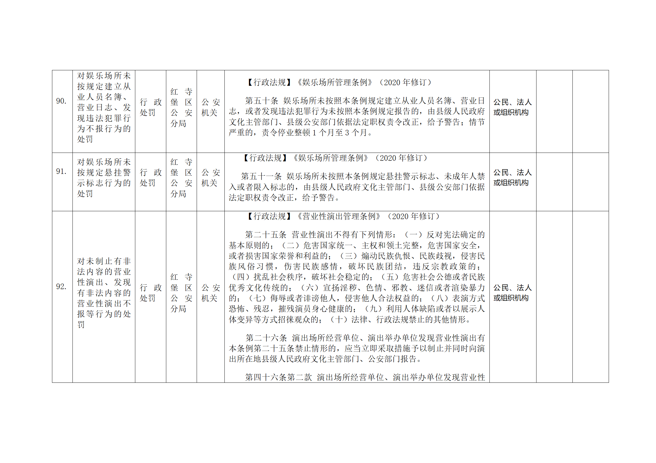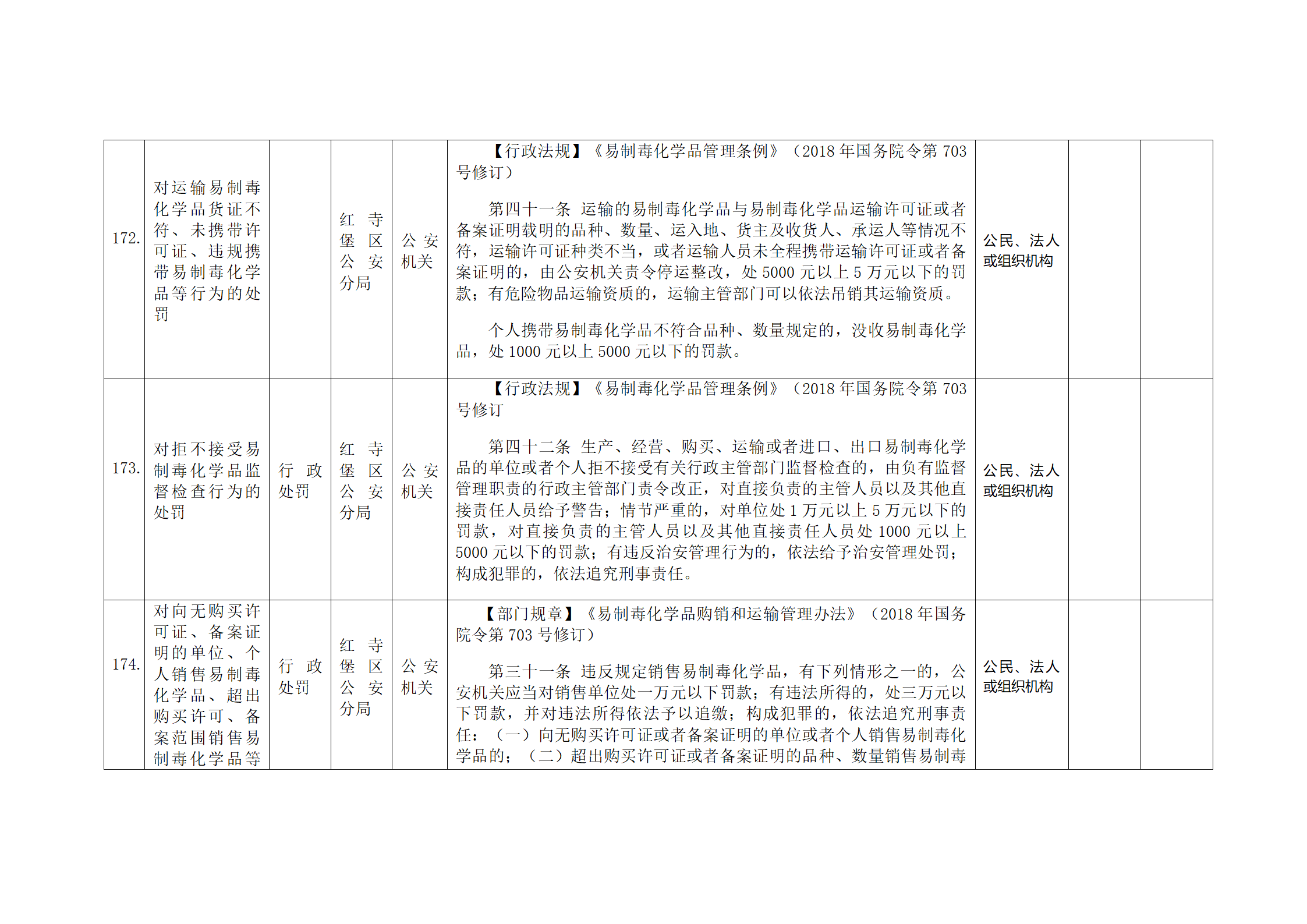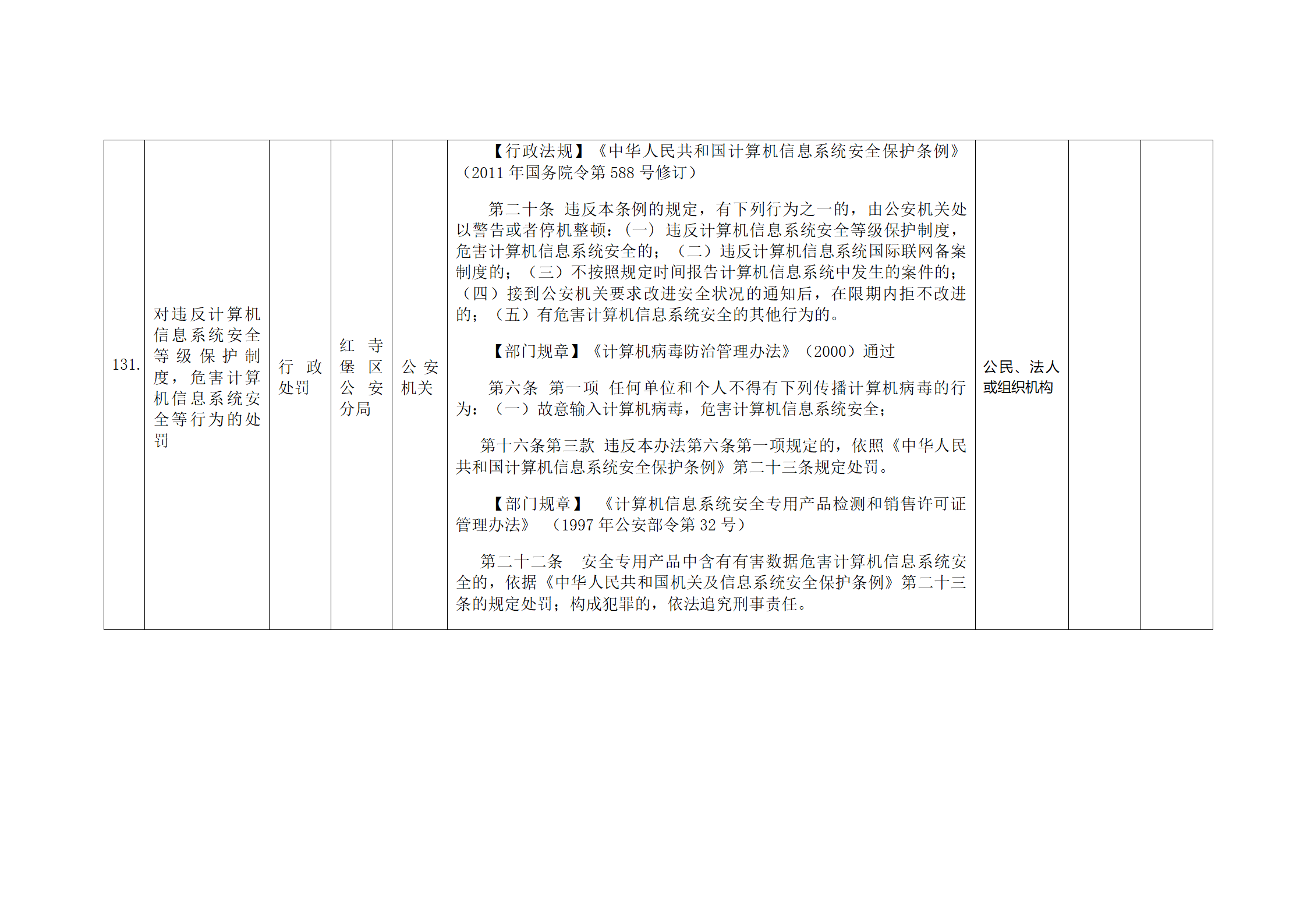 红寺堡区公安分局行政处罚事项清单