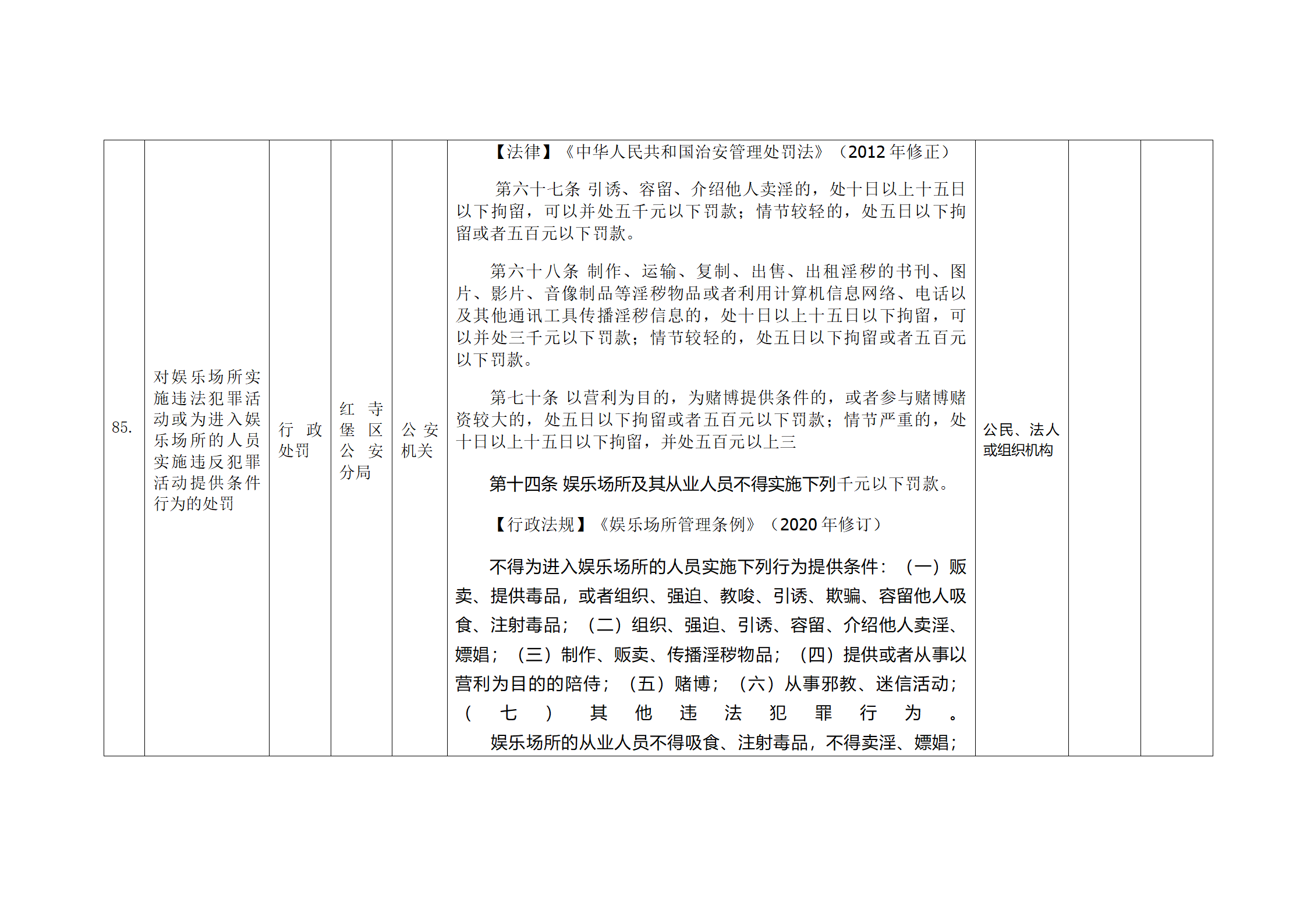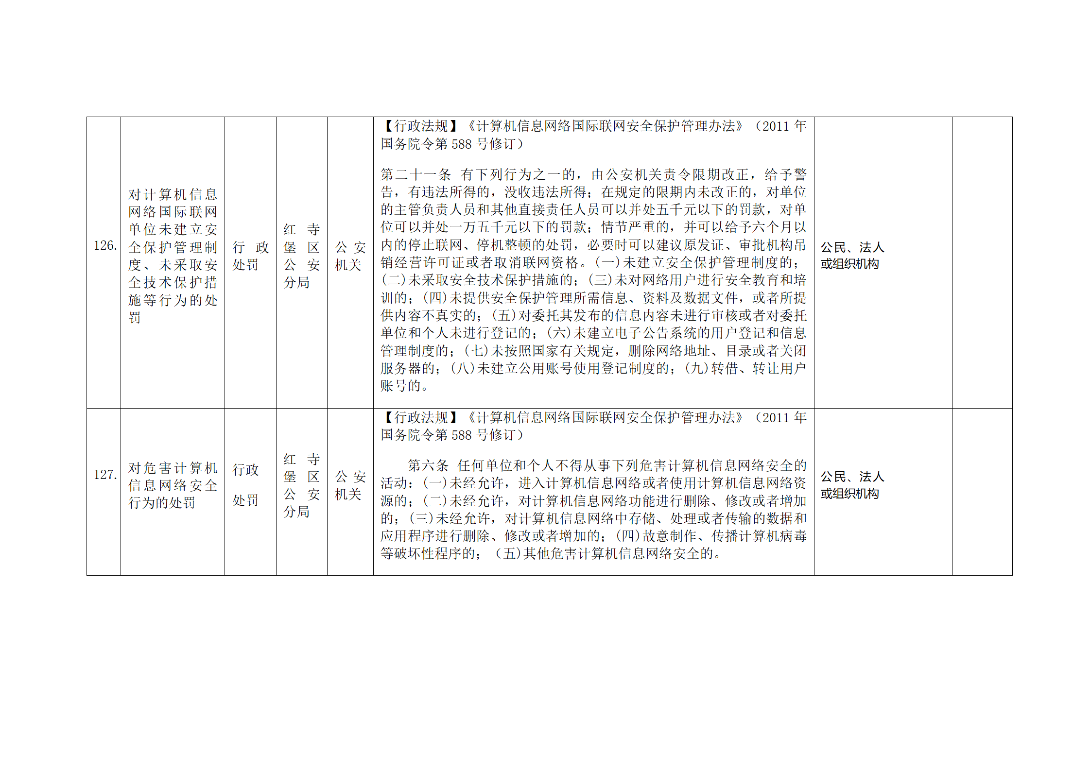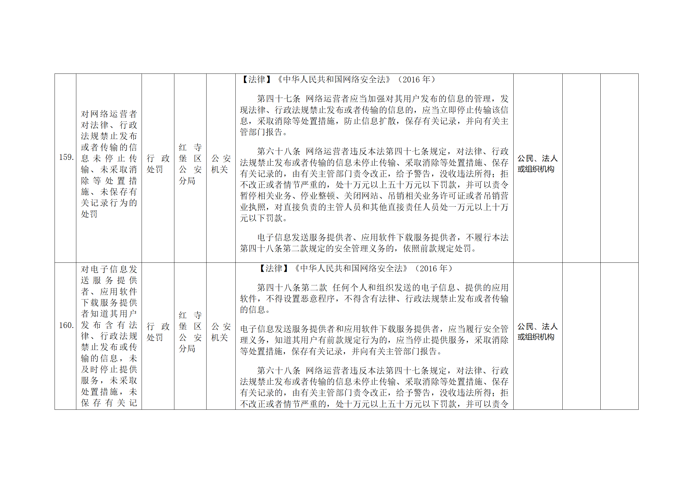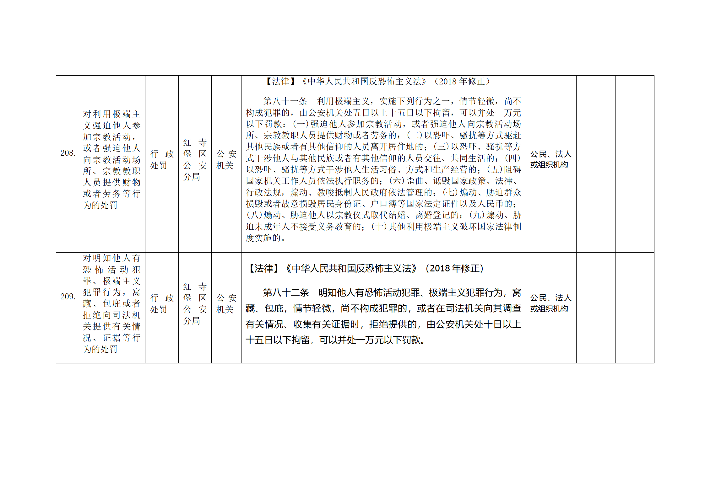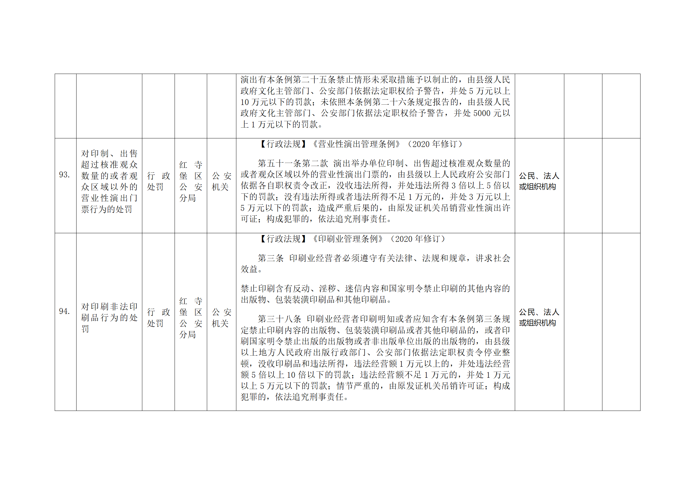 红寺堡区公安分局行政处罚事项清单
