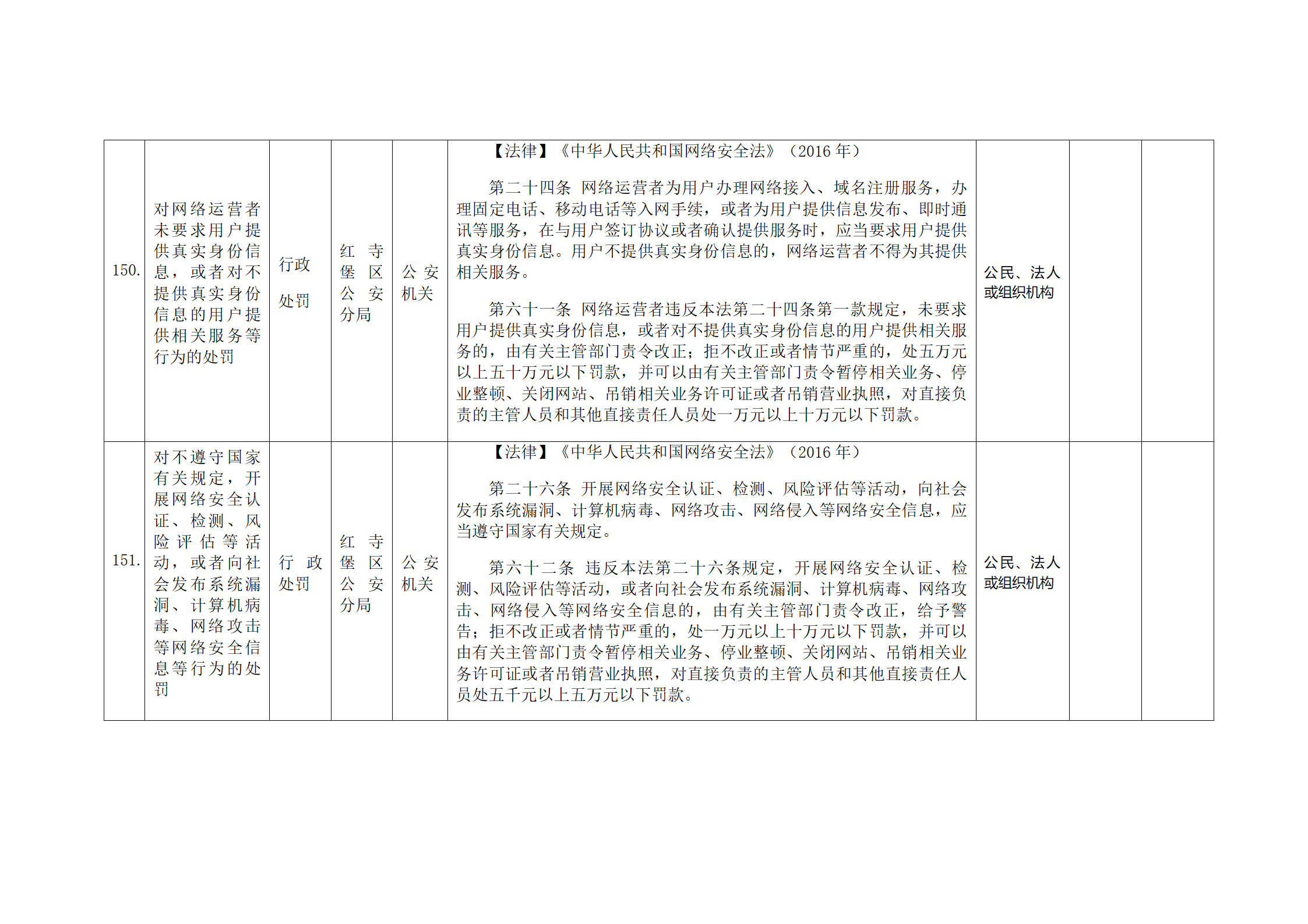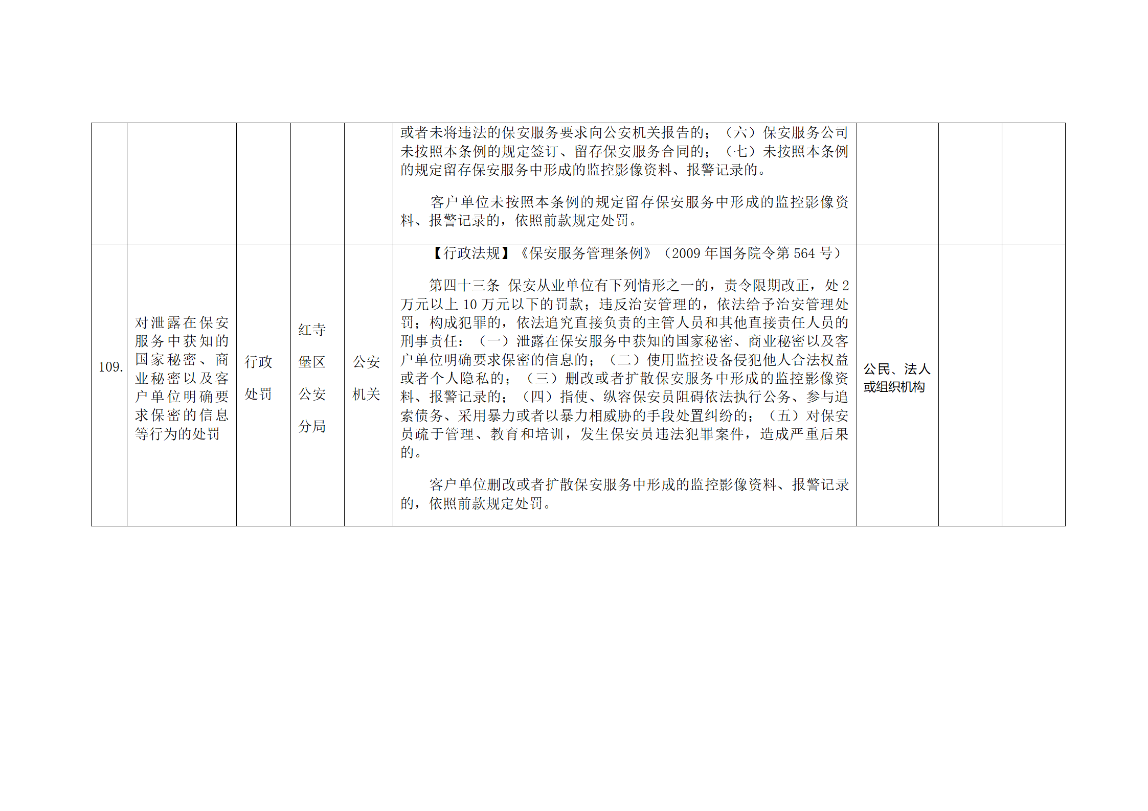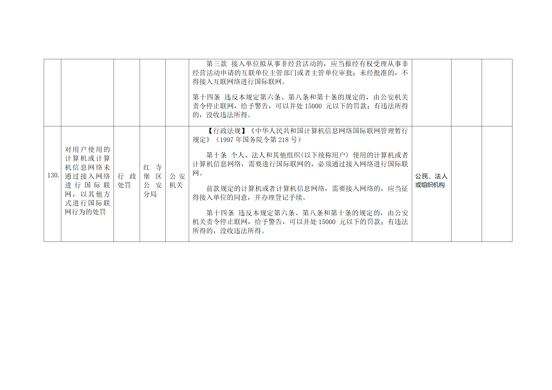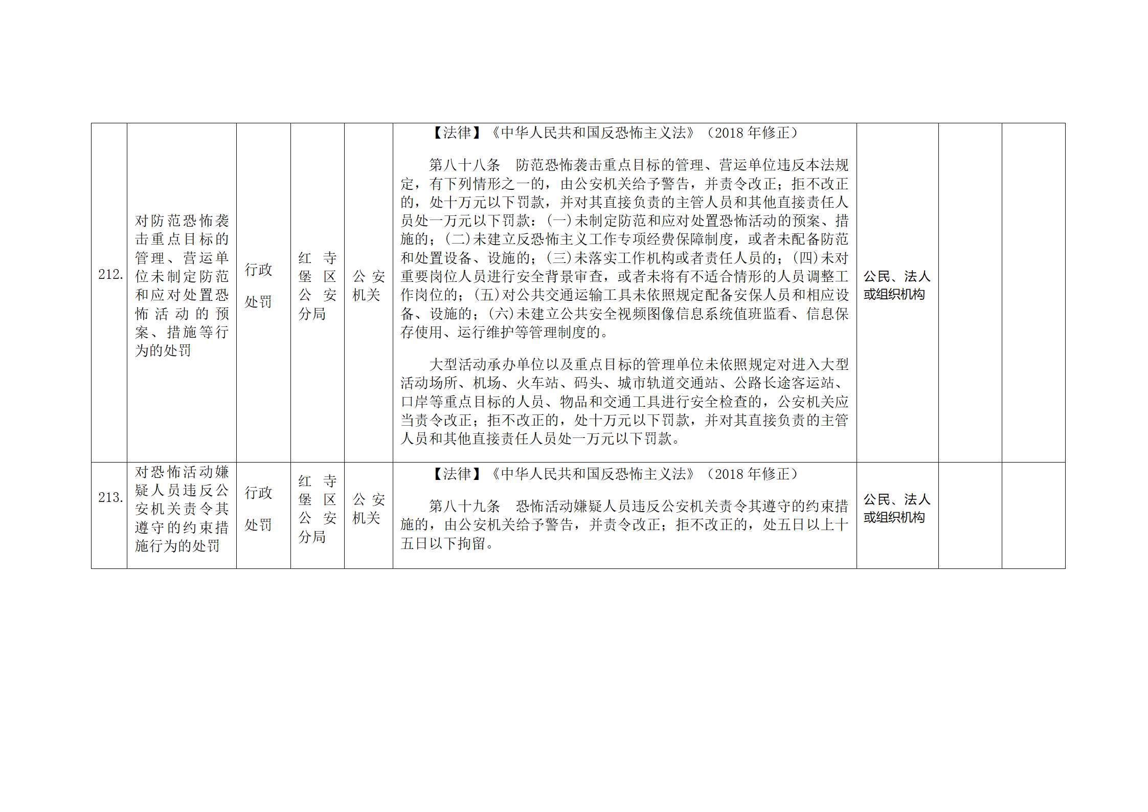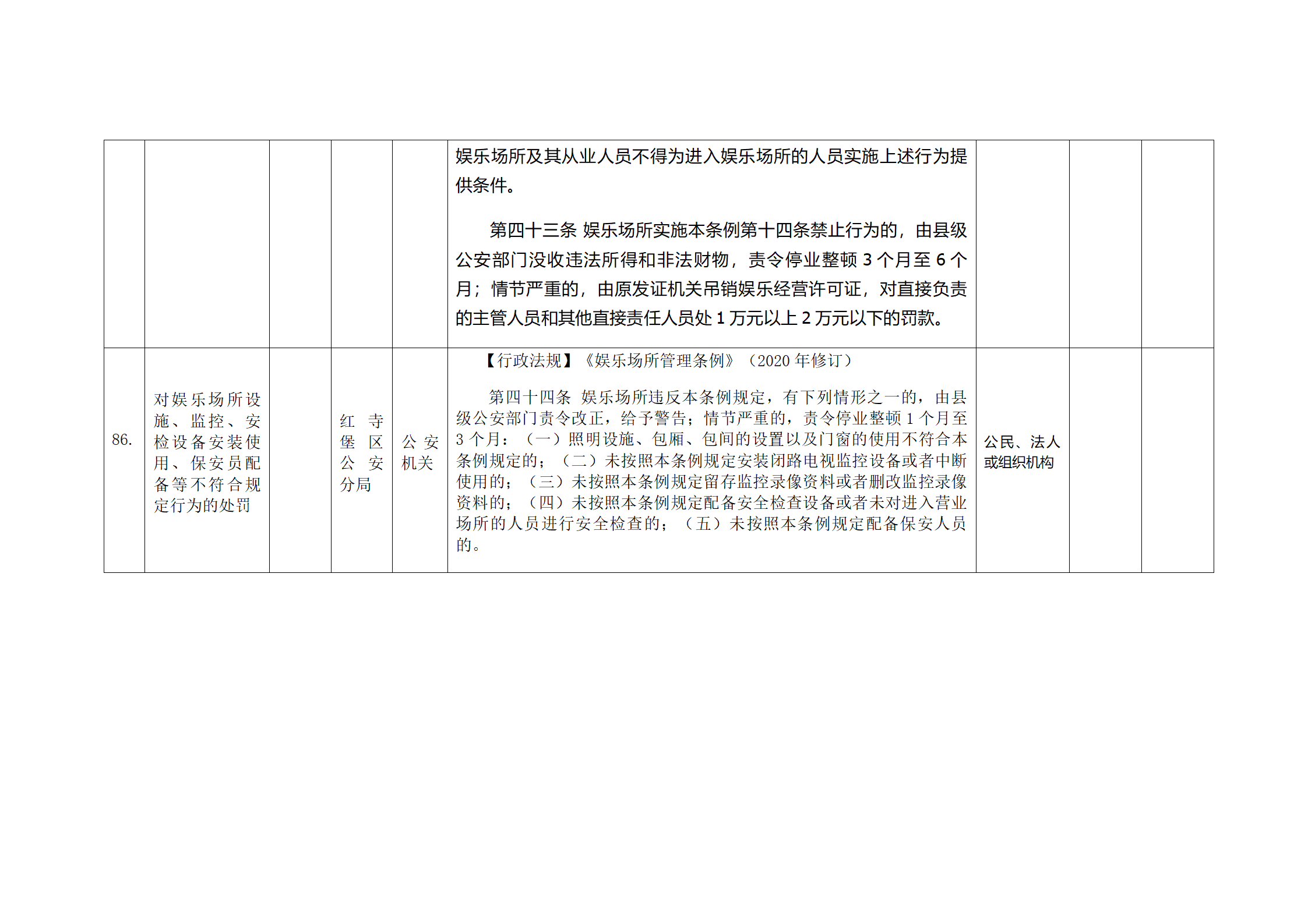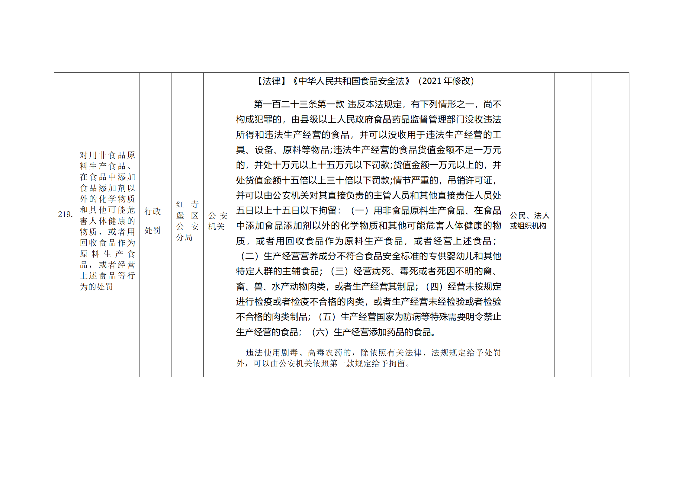 红寺堡区公安分局行政处罚事项清单