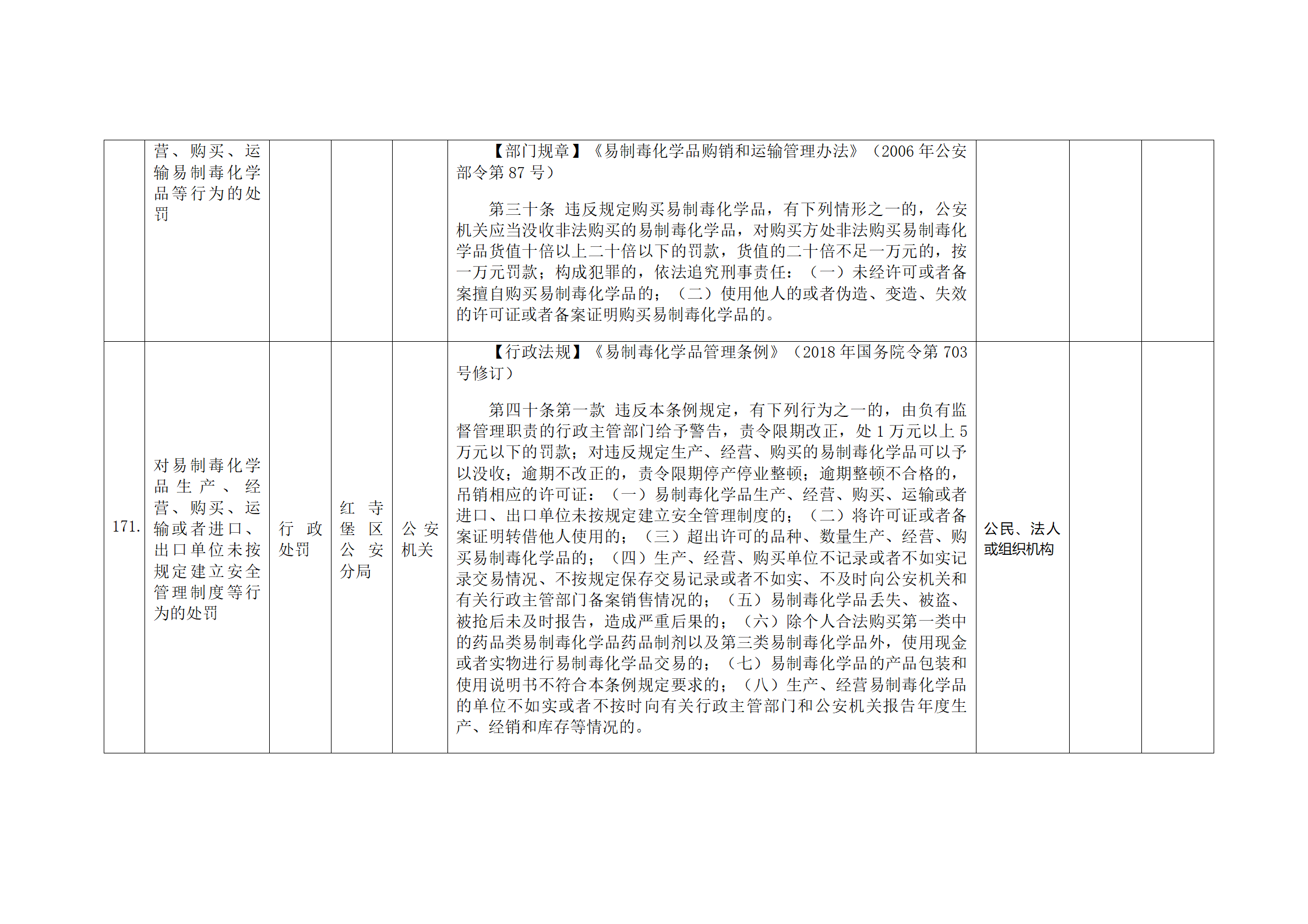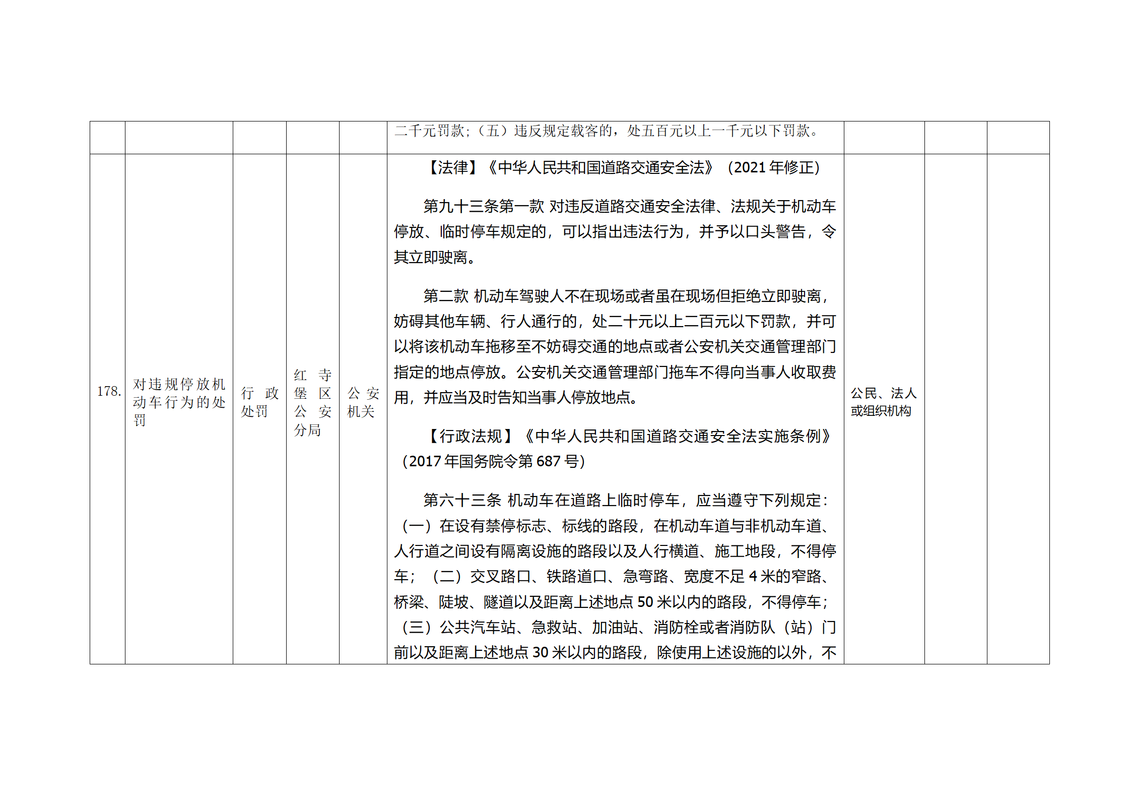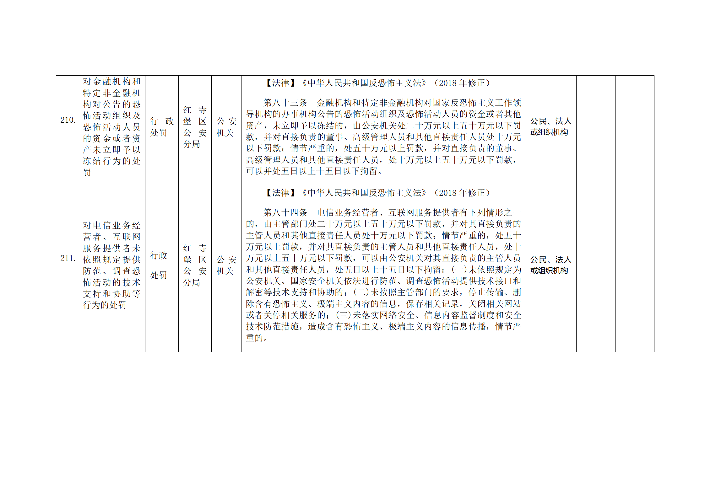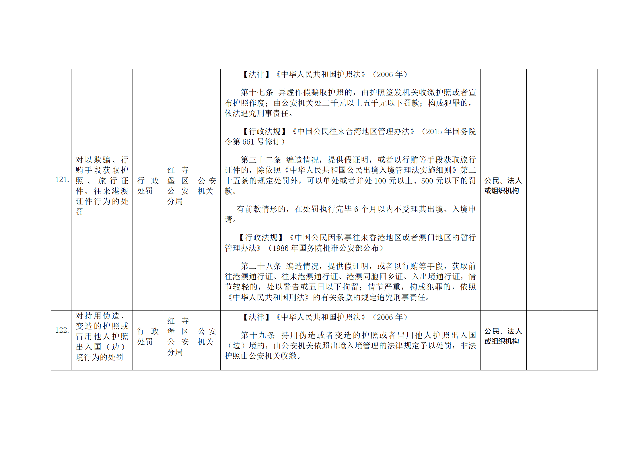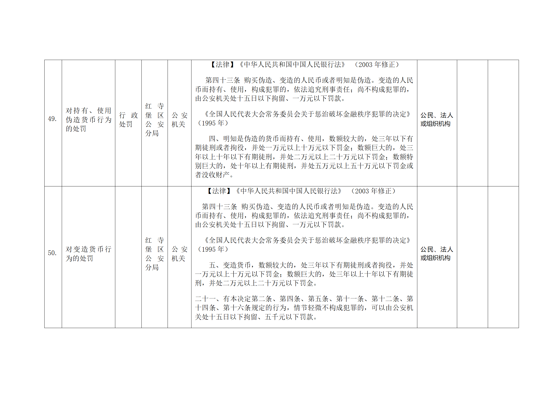 红寺堡区公安分局行政处罚事项清单