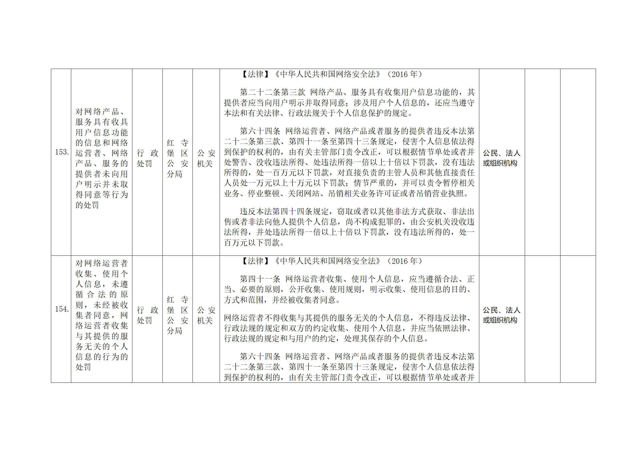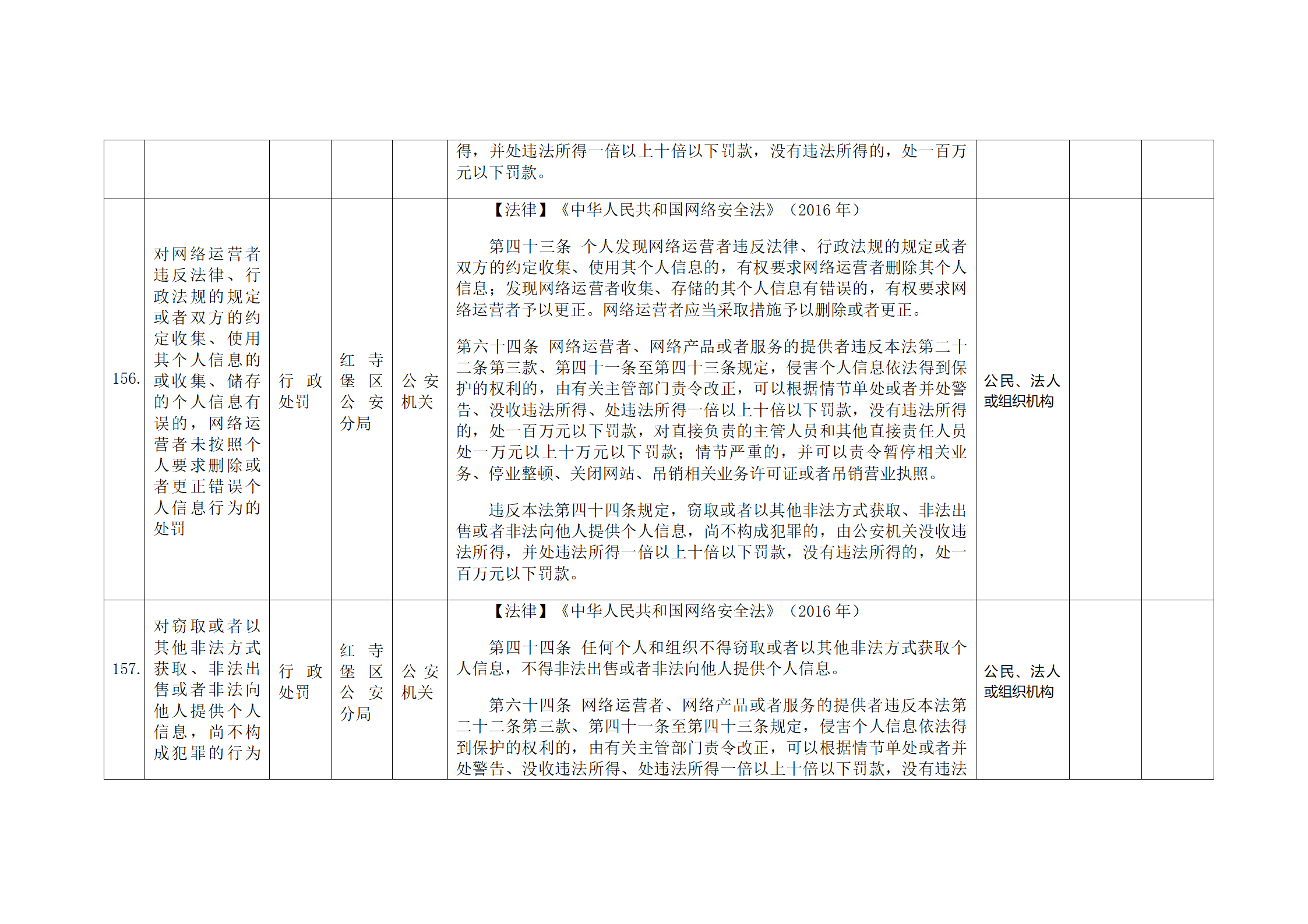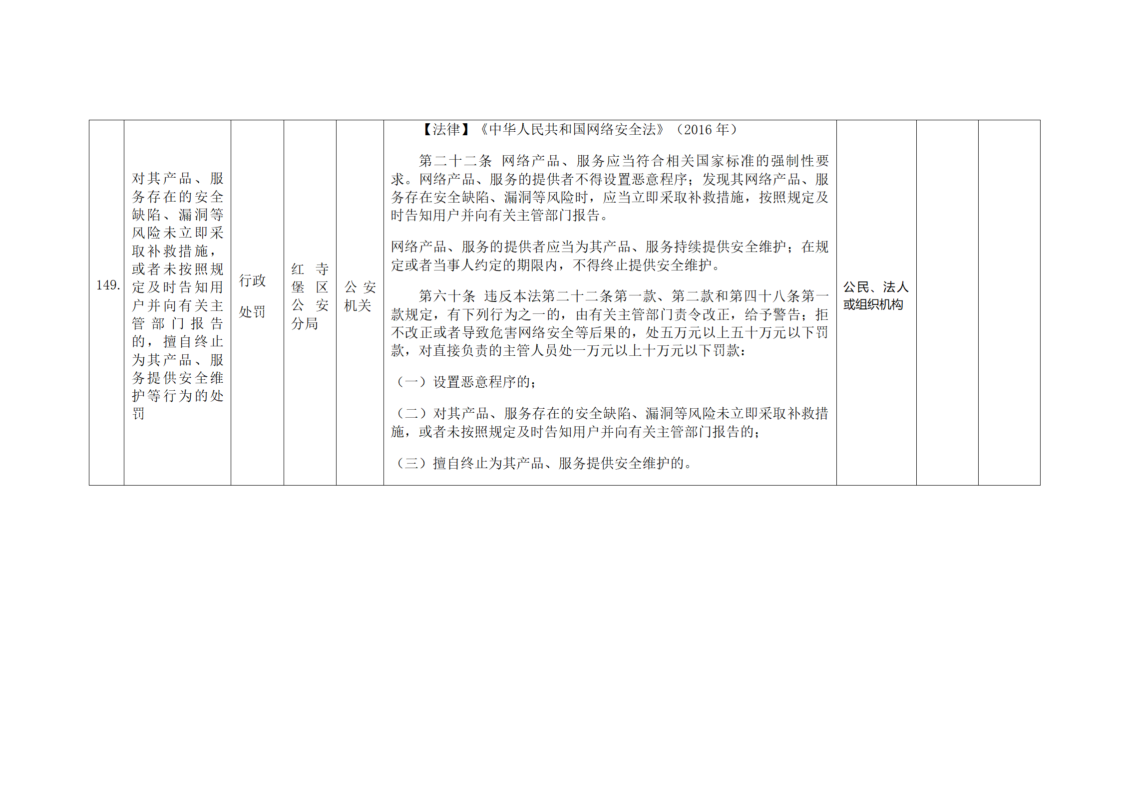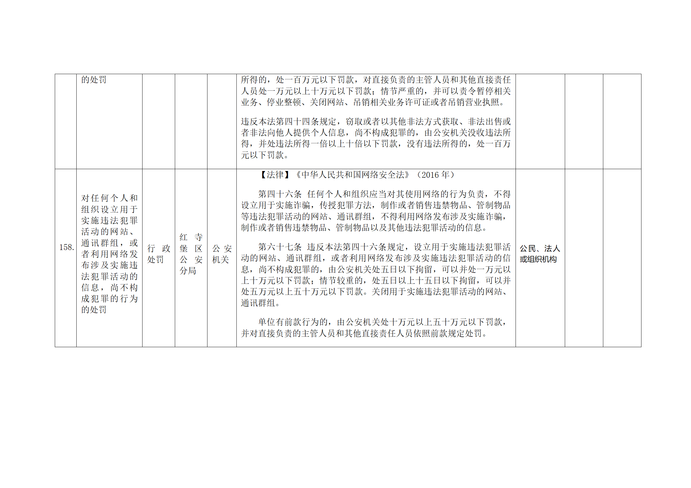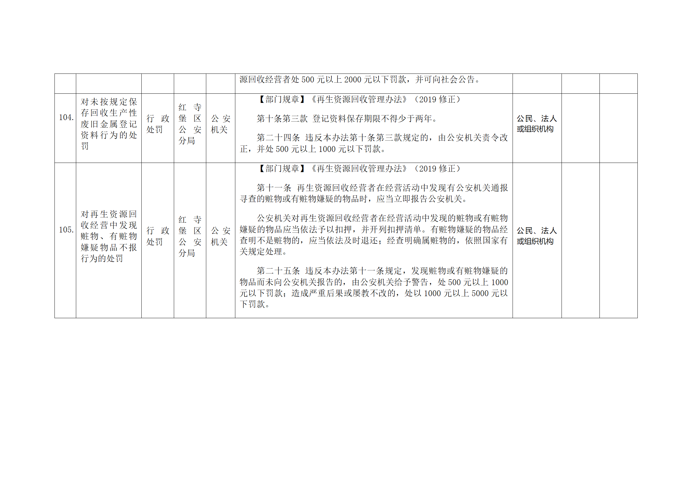 红寺堡区公安分局行政处罚事项清单