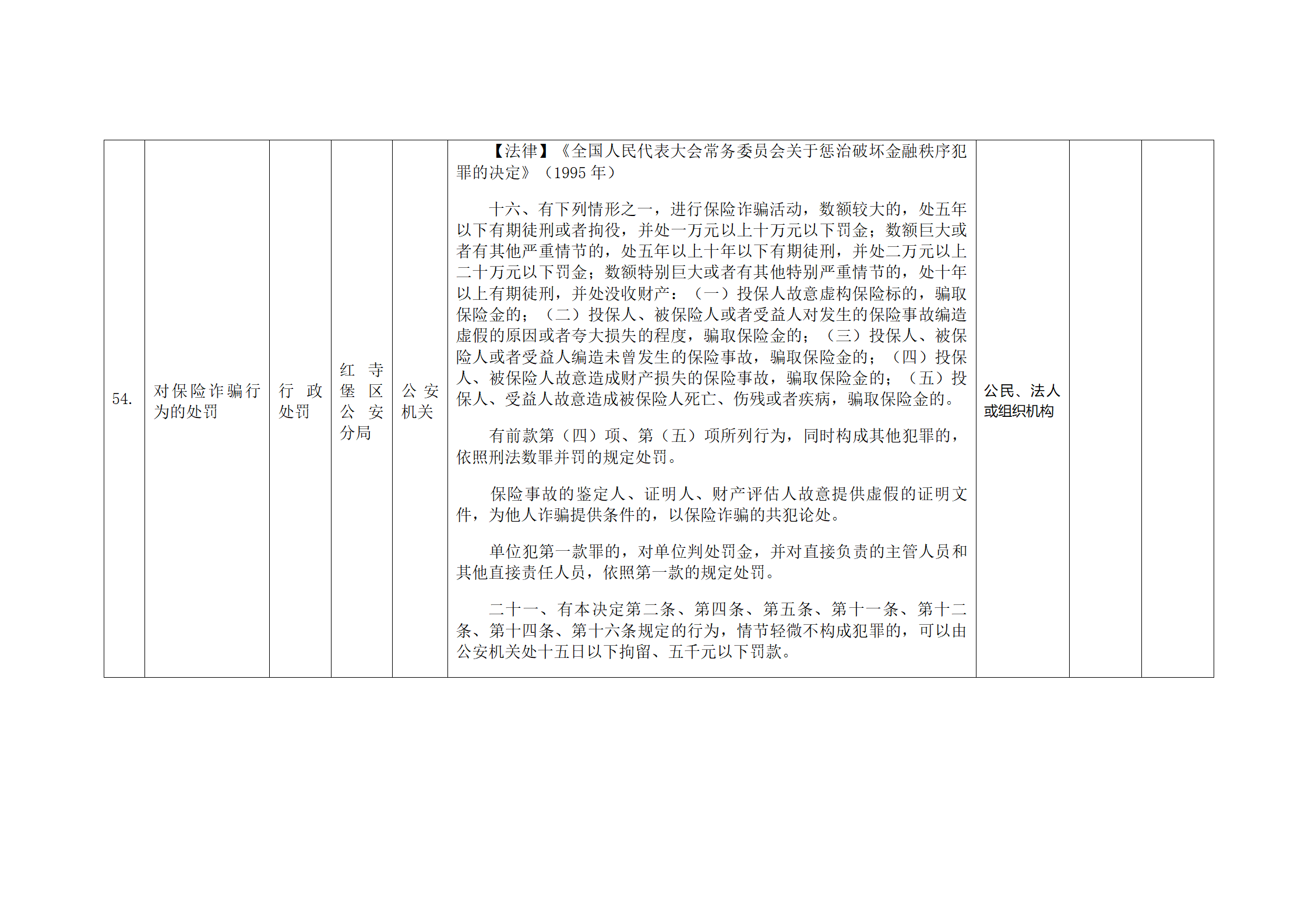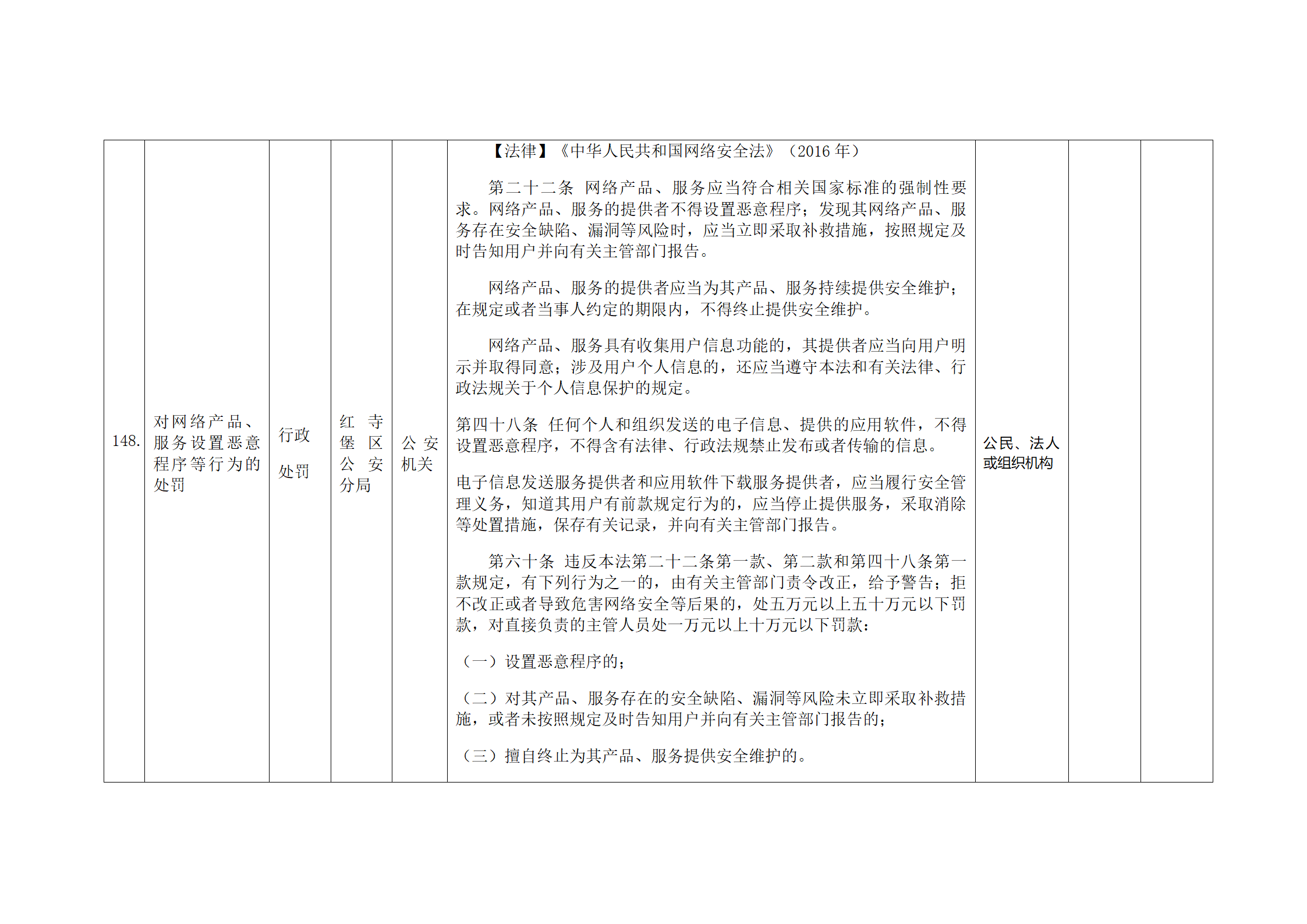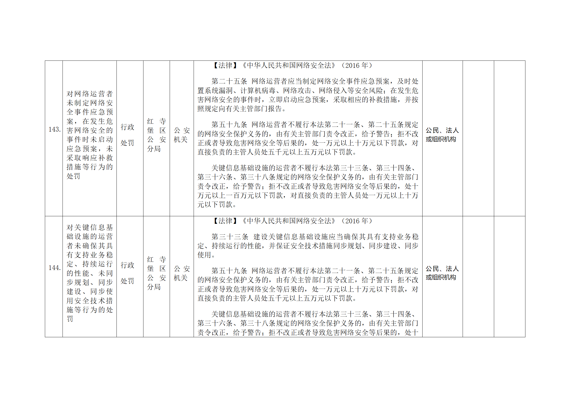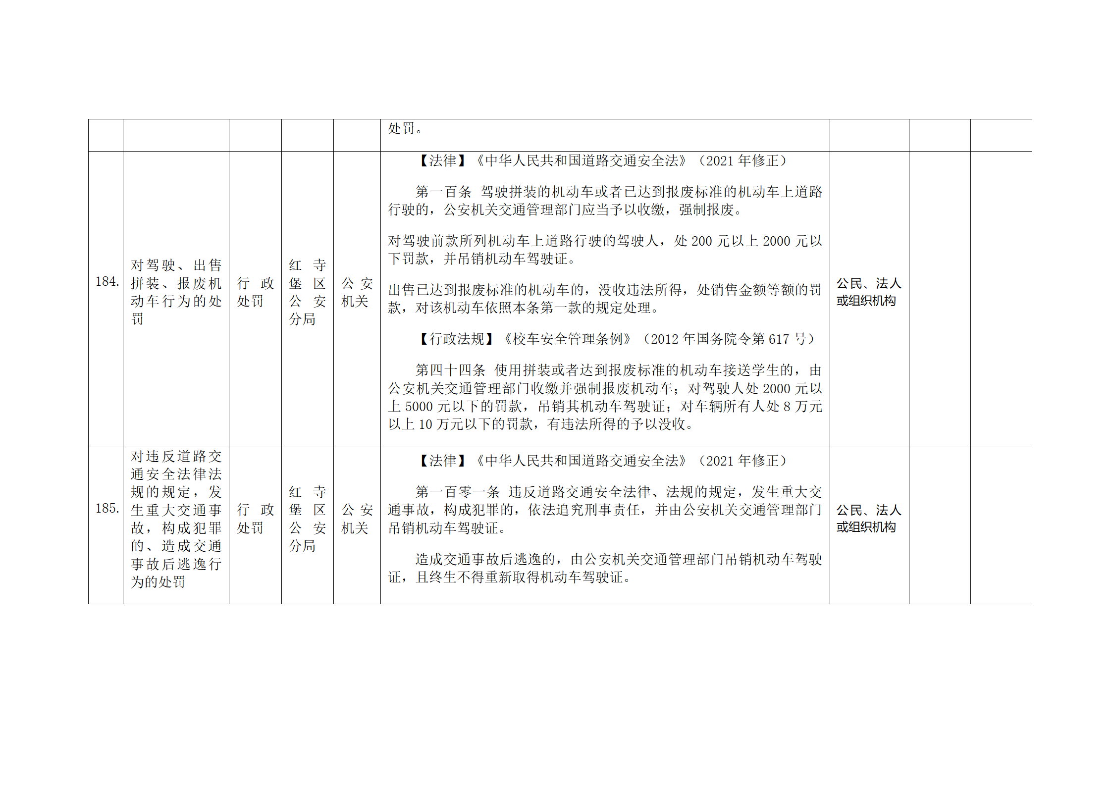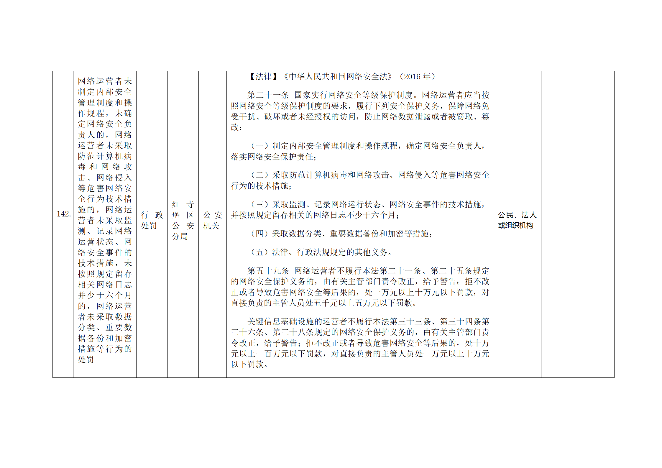 红寺堡区公安分局行政处罚事项清单