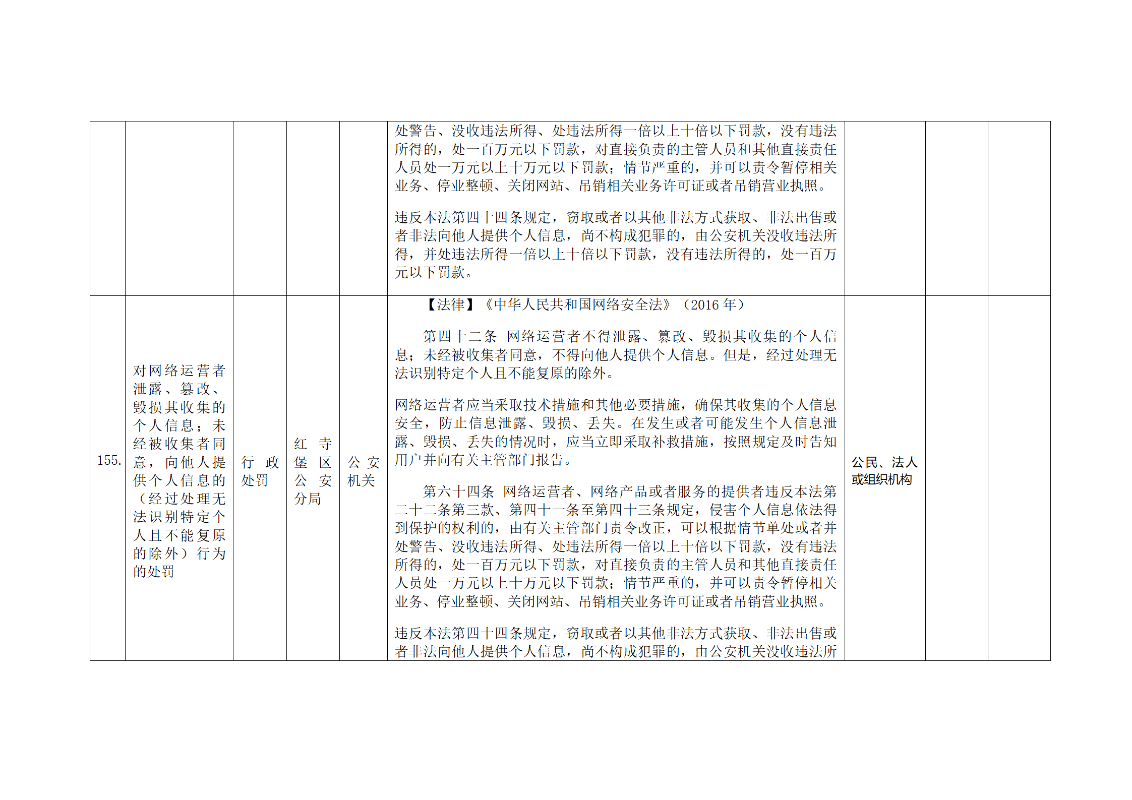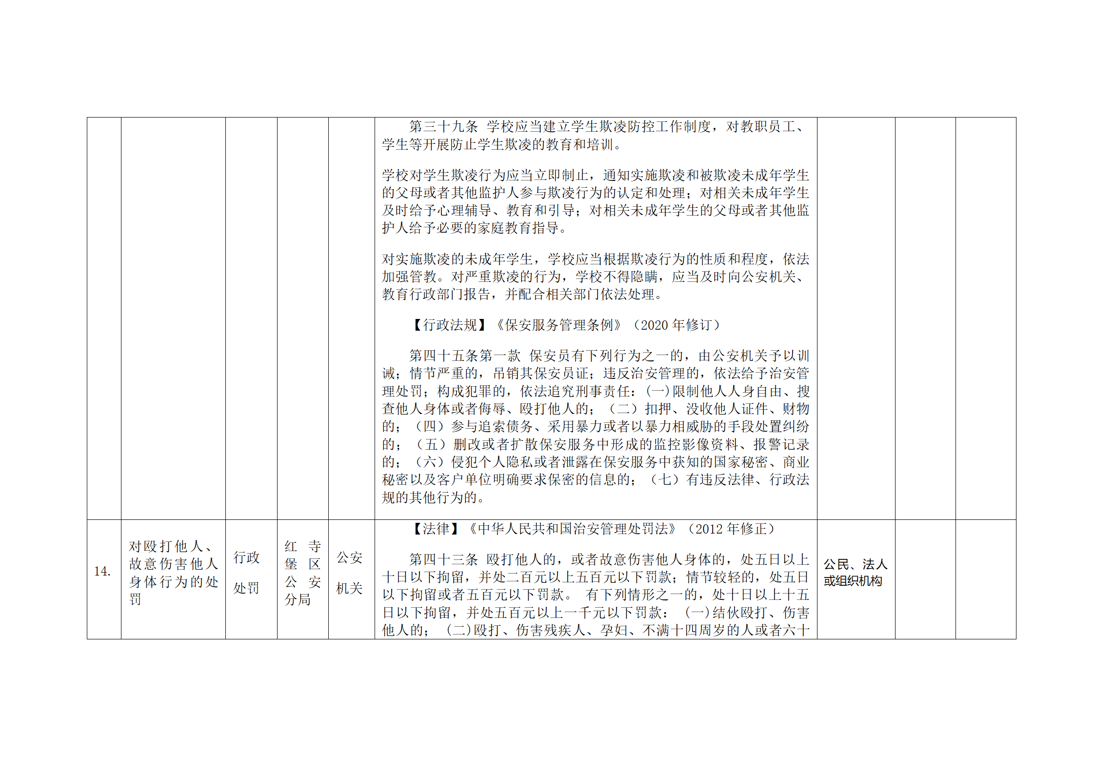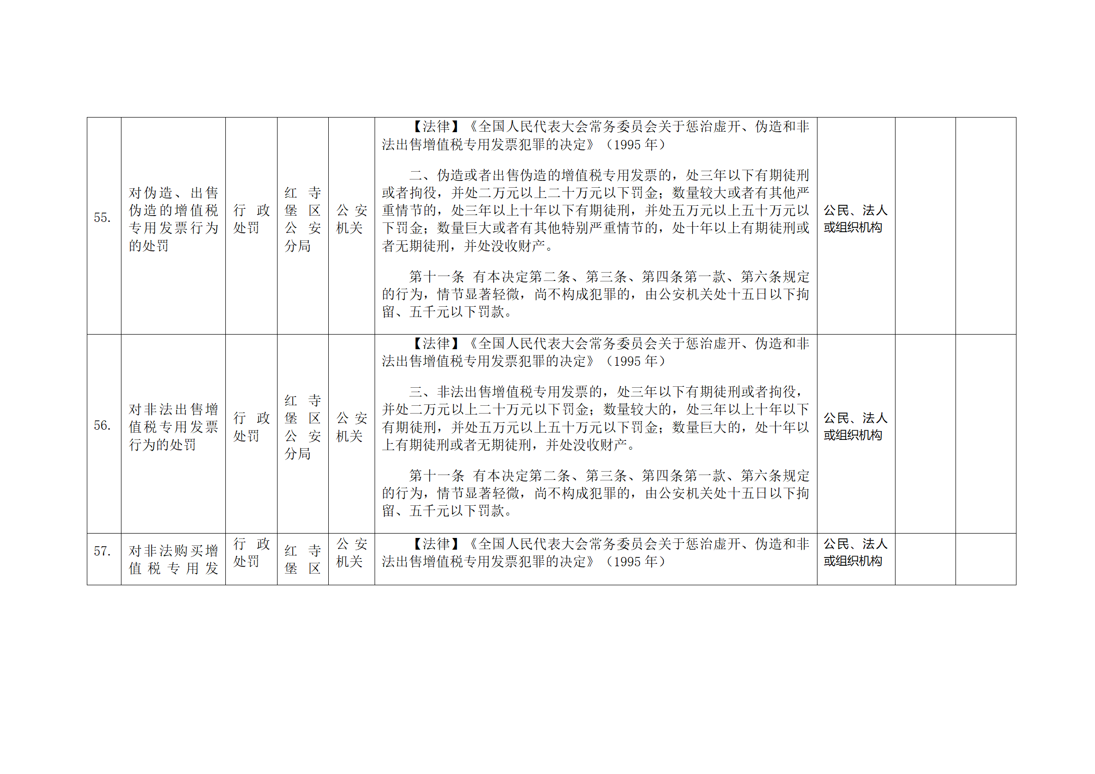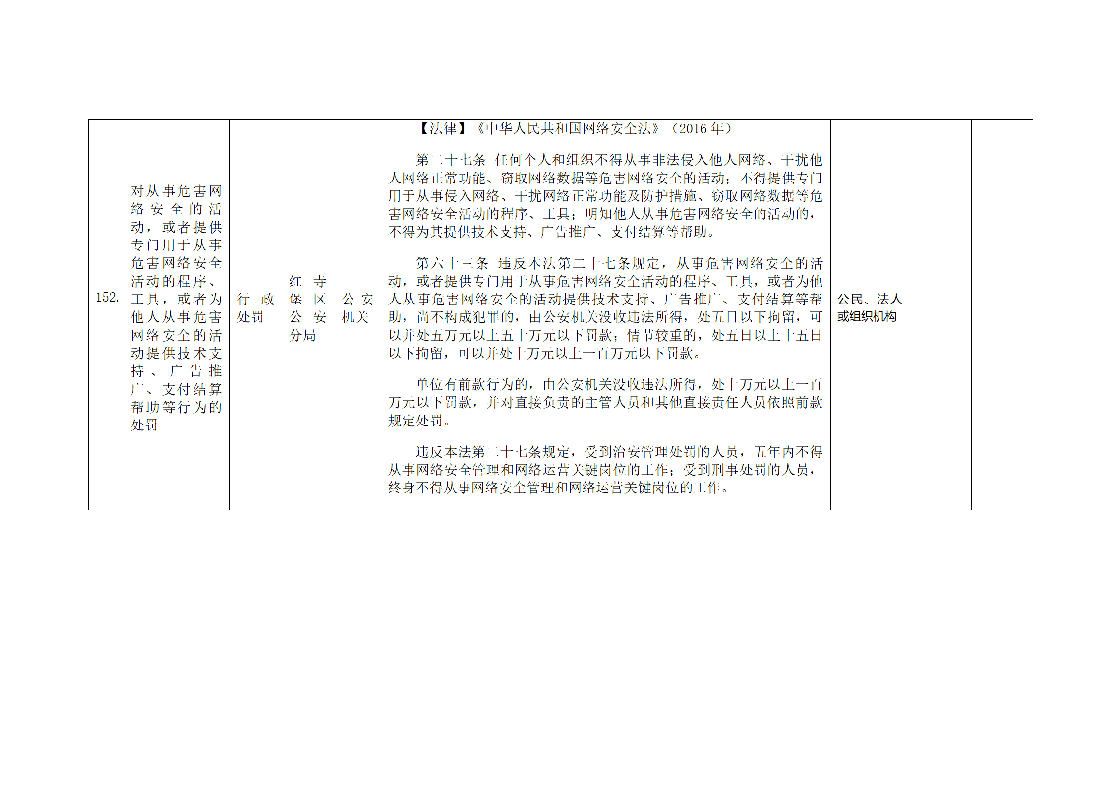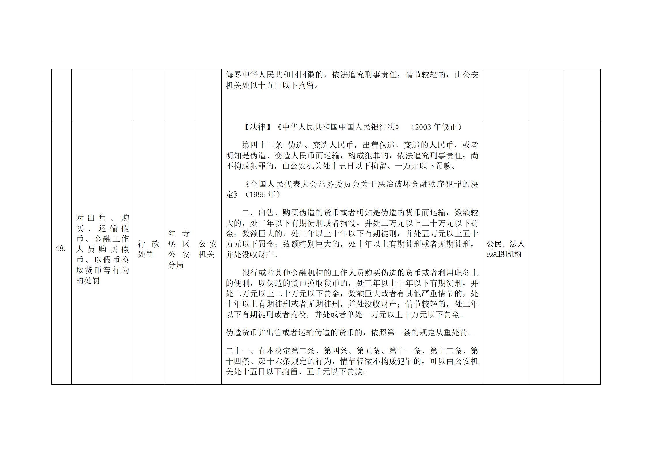 红寺堡区公安分局行政处罚事项清单