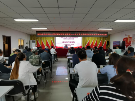 9月7日,大河乡新时代文明实践所组织开展防范电信网络诈骗知识宣传活动,大河派出所教导员马玉军向干部群众介绍贷款、养老、兼职刷单、冒充客服退款等诈骗手段,详细讲解识别、防范电信诈骗的技巧。