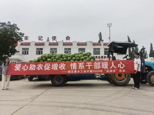盛夏送清凉,关怀在心头,新庄集乡工会给你送西瓜啦,请“趁热”查收!7月12日,新庄集乡工会开展“爱心助农促增收 情系干部暖人心”夏日送清凉活动,既为广大干部提供了夏季防暑福利,又让大家在这炎炎夏日里感受到了丝丝“清凉”,同时,爱心帮扶助力了西瓜产业发展,促进了果农增收。