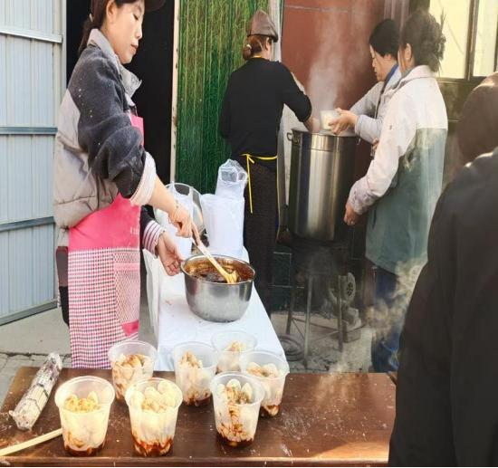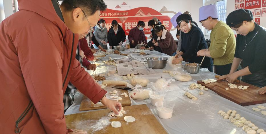 当日天刚蒙蒙亮,村委会工作人员就已全员到岗,紧锣密鼓地投入到活动筹备中。大家分工协作,有的仔细分拣香菜、萝卜等蔬菜,有的精心调制牛肉馅料,有的忙着布置活动场地,划分出不同区域,为活动顺利开展做好充分准备。