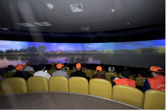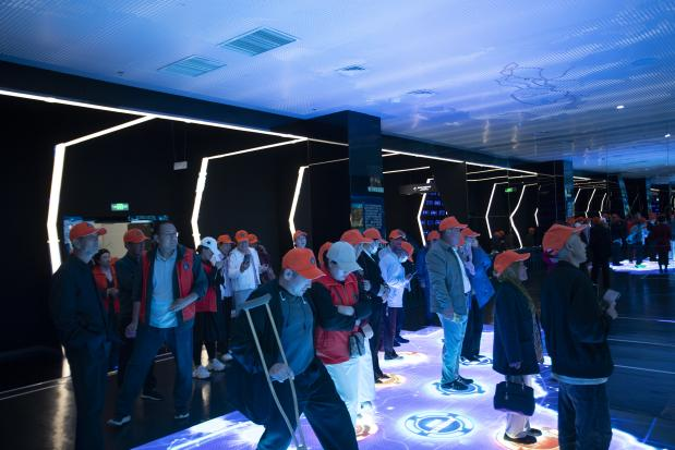 品艺术魅力,享视听盛宴。随后,队伍前往银川文化艺术博览中心。在这里,大家在充满科技感、有着蓝色灯光和几何图案地面的室内场所行走参观,积极参与了精彩纷呈的文化互动活动,感受了艺术的多元魅力。接着,集体观看了一场精心挑选的励志主题电影,沉浸式的视听体验为残疾人朋友们带来了欢笑与感动。
