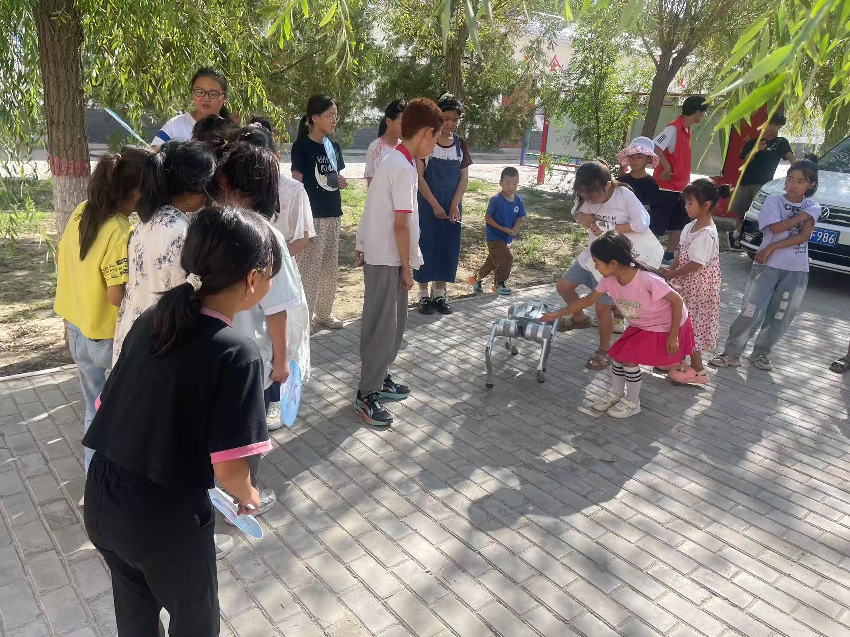 针对暑期农村学生安全问题,科协工作人员为孩子们开设“假期安全科普小课堂”,围绕防溺水、交通安全、用电安全等重点内容,通过情景模拟、安全知识抢答等方式,讲解“溺水自救技巧”“过马路三步骤”“安全用电须知”等实用知识,引导孩子们养成安全习惯。活动中最受欢迎的当数机器狗表演环节,憨态可掬的机器狗在志愿者操控下完成行走、转圈、握手等动作,孩子们争相上前互动体验,在欢声笑语中感受科技魅力,激发科学兴趣。