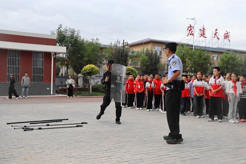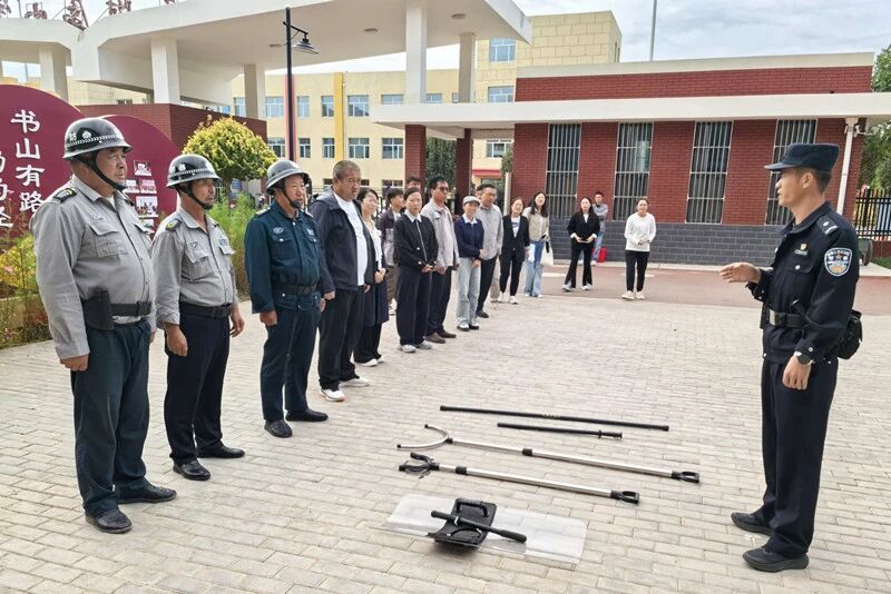 演练结束后,社区民警结合实战场景,为校园安保人员和师生开展“手把手”安全培训。现场演示防暴盾牌、钢叉的正确使用方法,讲解“如何与持械人员保持安全距离”“怎样利用身边物品(如书包、拖把)临时抵御攻击”等实用技巧;针对低龄幼儿,通过动画短片、情景互动等方式,教孩子们识别“危险行为”、牢记“不靠近、快报告、躲起来”的自救口诀。对校园监控盲区、应急通道畅通情况进行同步排查,督促校园限期落实。